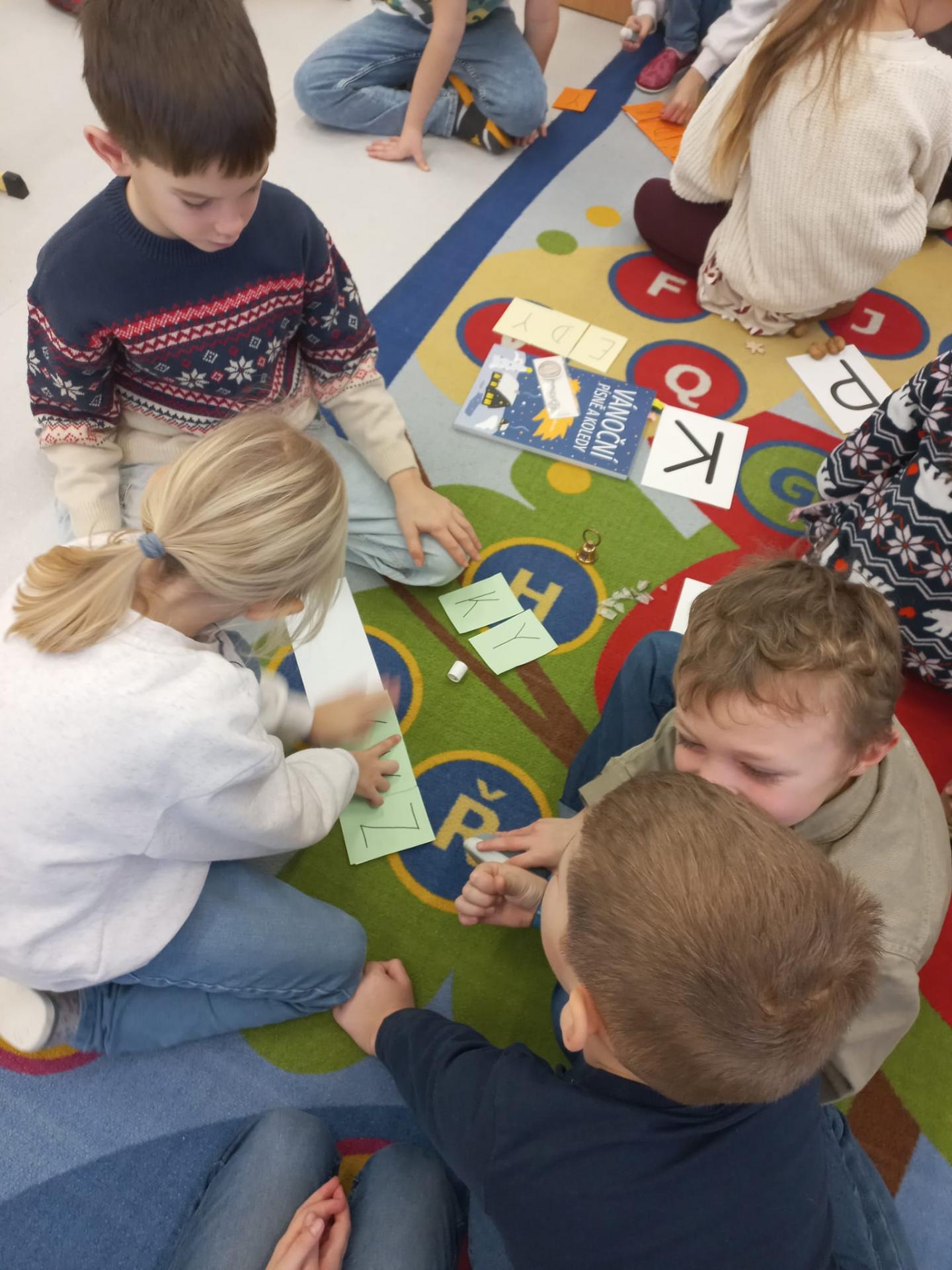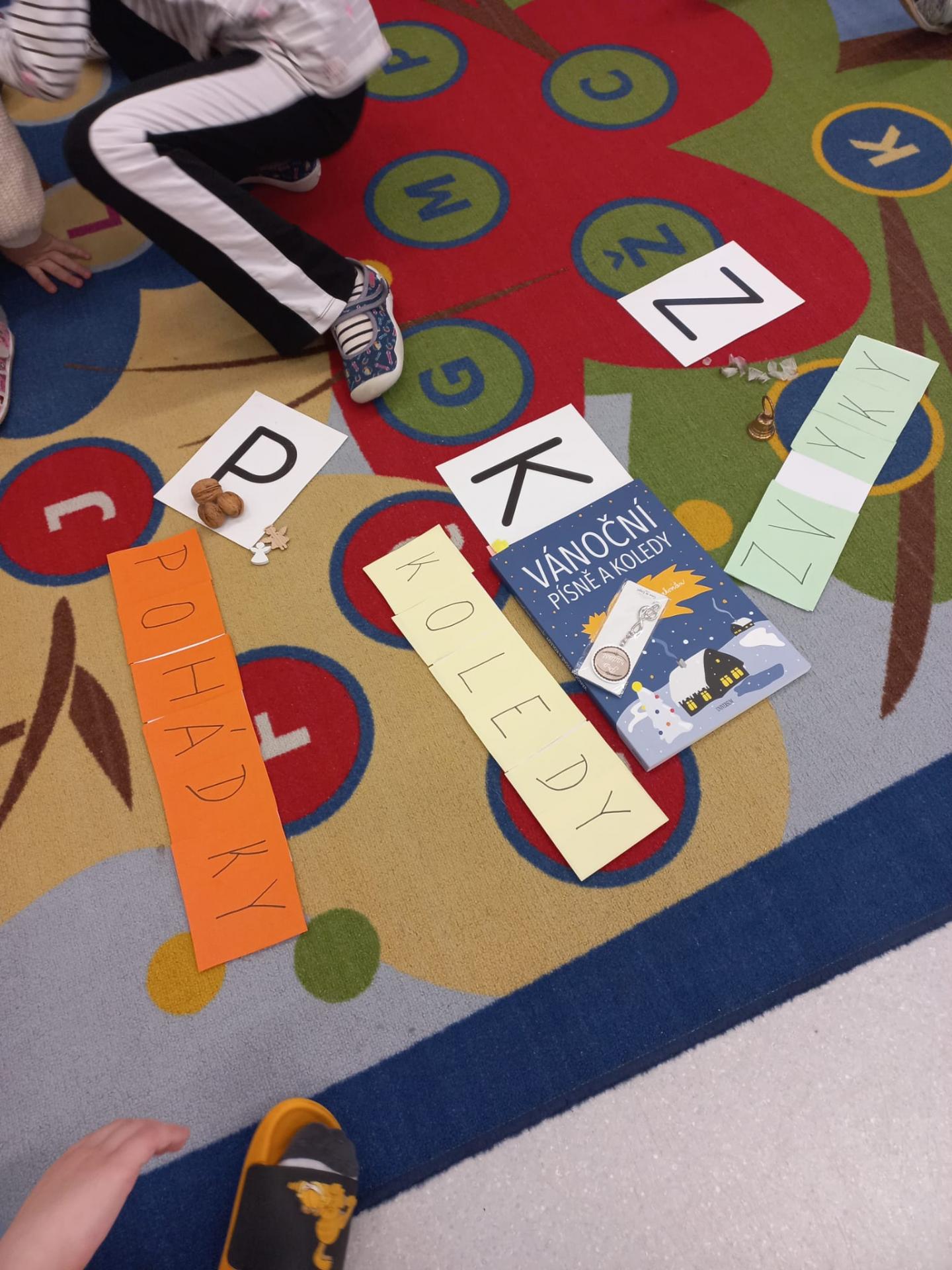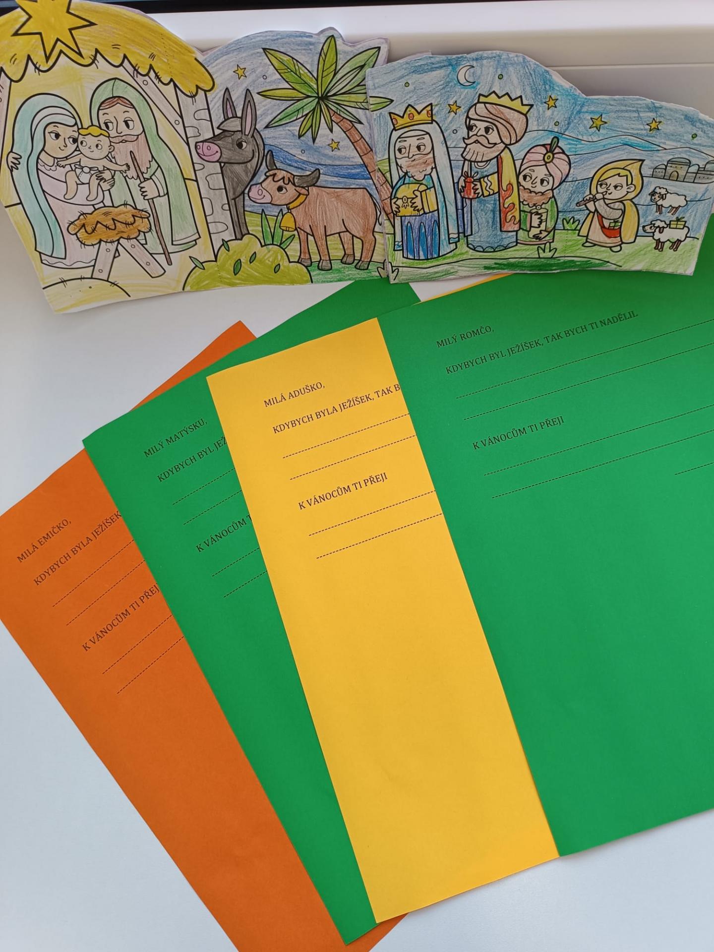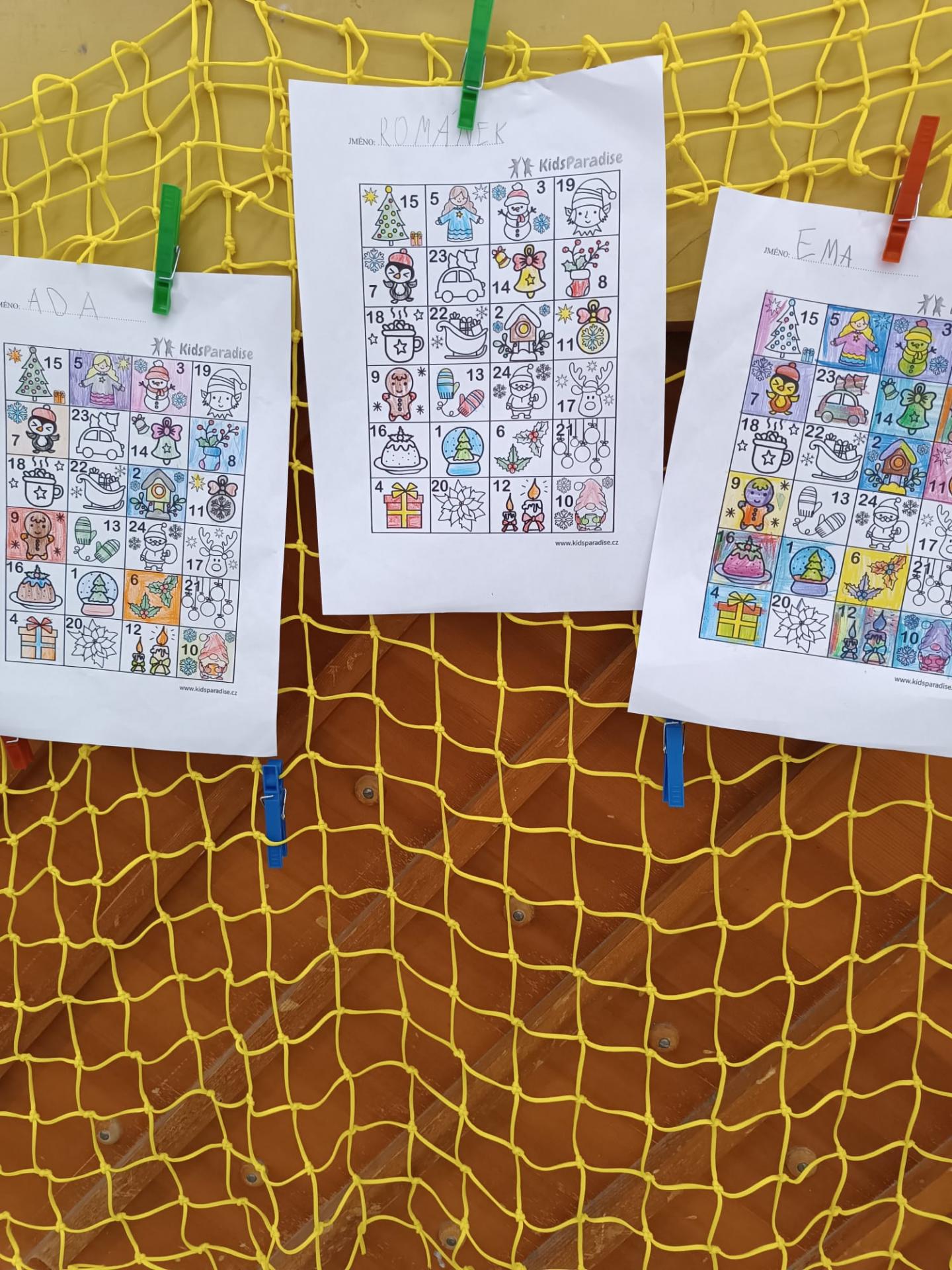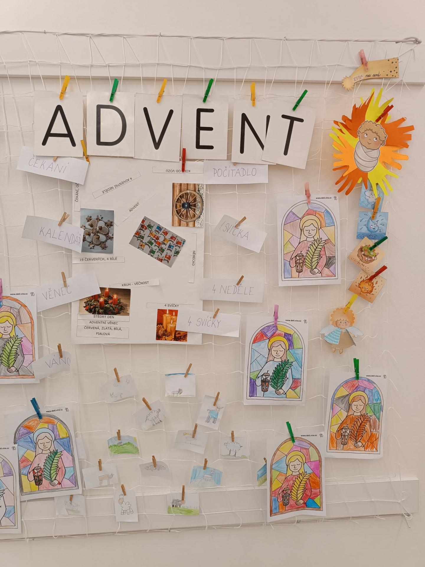 Aktivity jsme propojili s tradičními předvánočními i vánočními zvyky – adventním kalendářem i věncem a jeho historií, povídání o barborkách, které jsme pozorovali, jestli nám rozkvetou, vymalováním vitráže sv. Lucie, posloucháním příběhu o narození Ježíška i přáním pro kamaráda.