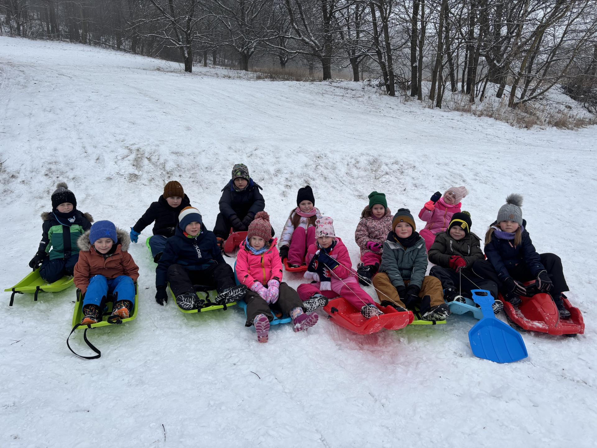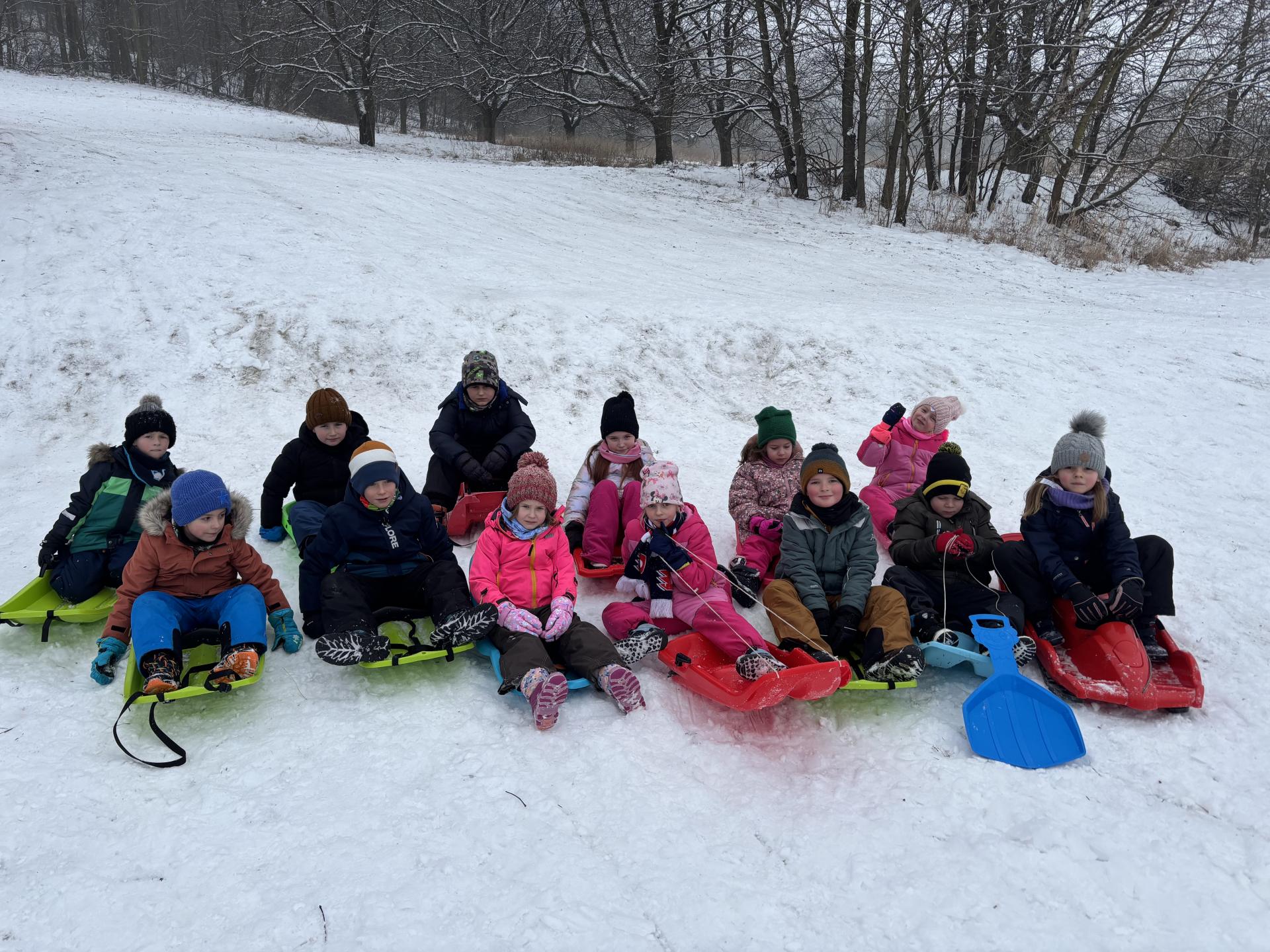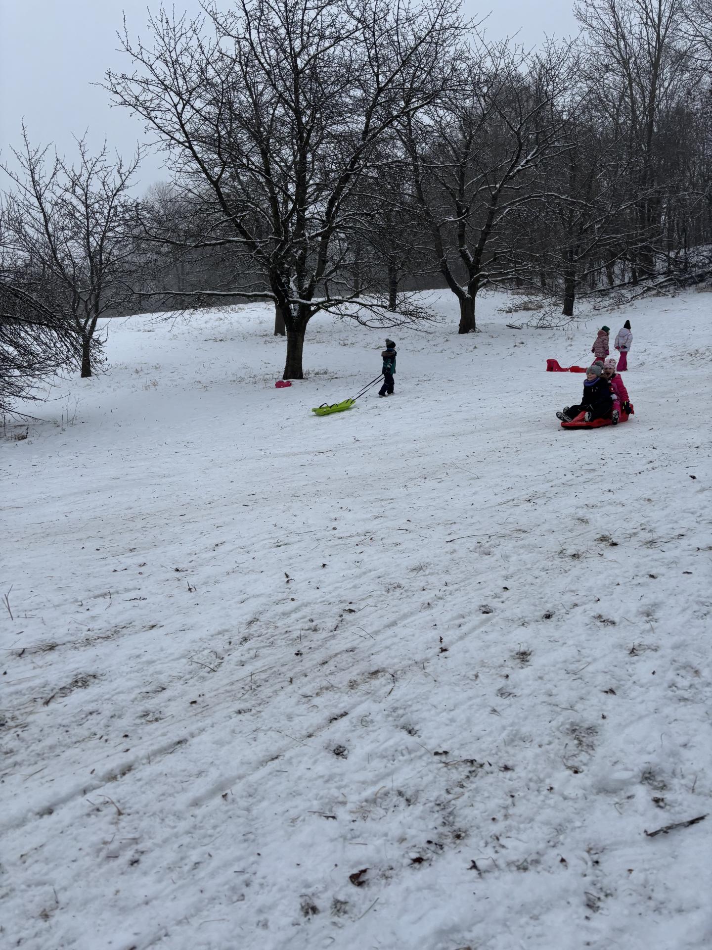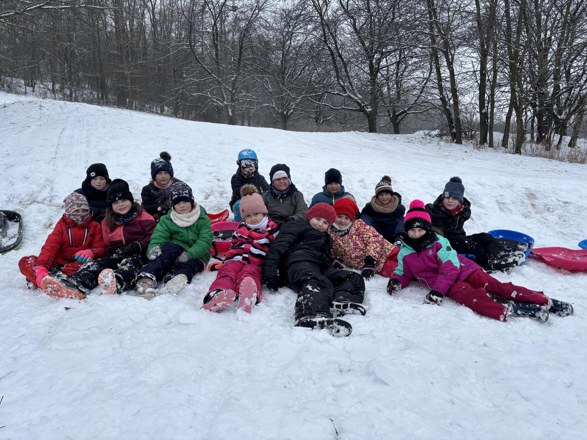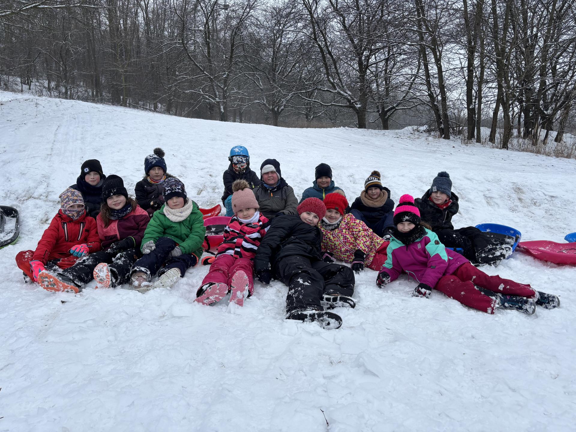 Využili jsme sněhu a strávili výuku tělesné výchovy v úterý a ve středu bobováním na svahu u fotbalového hřiště.