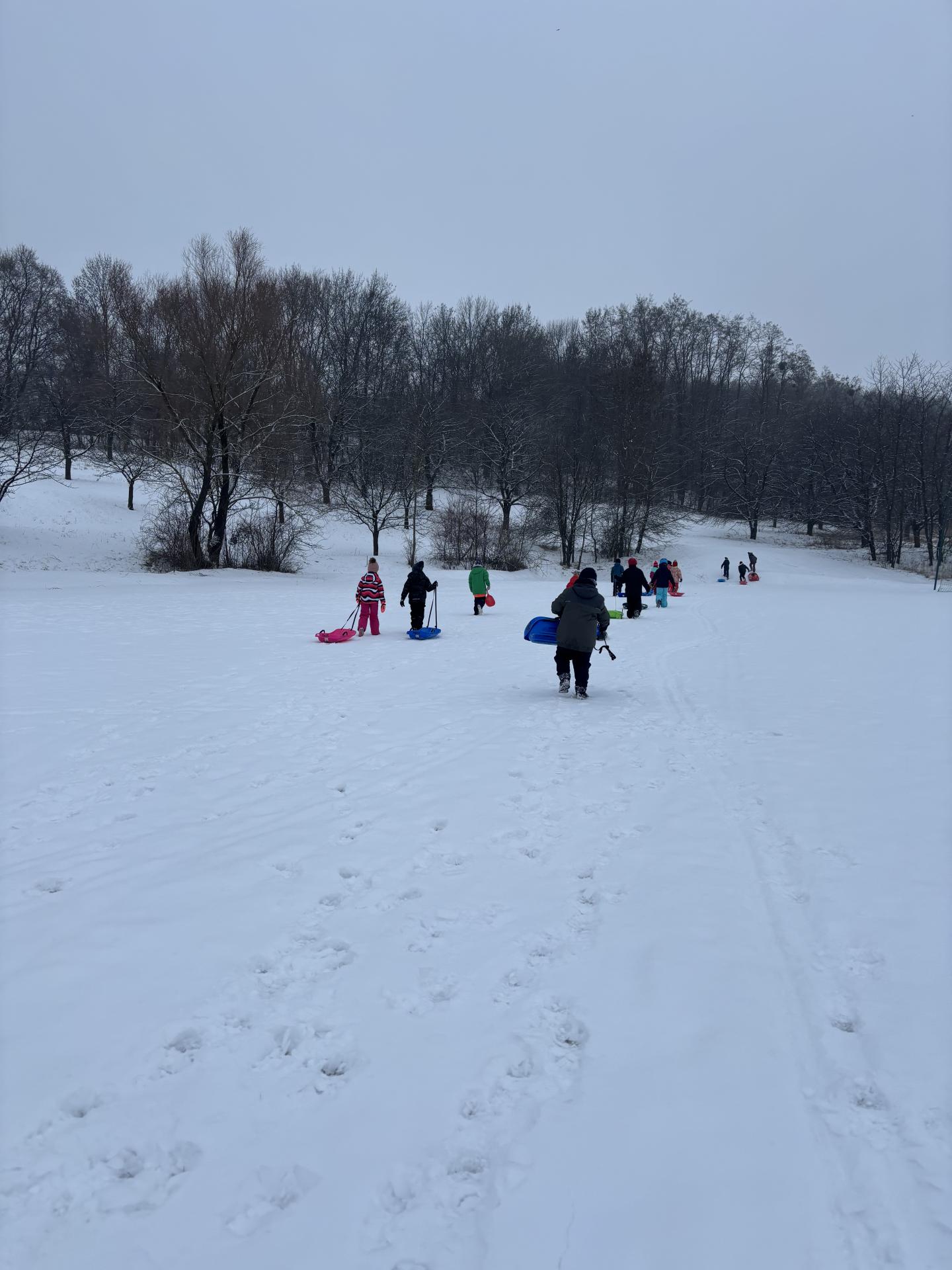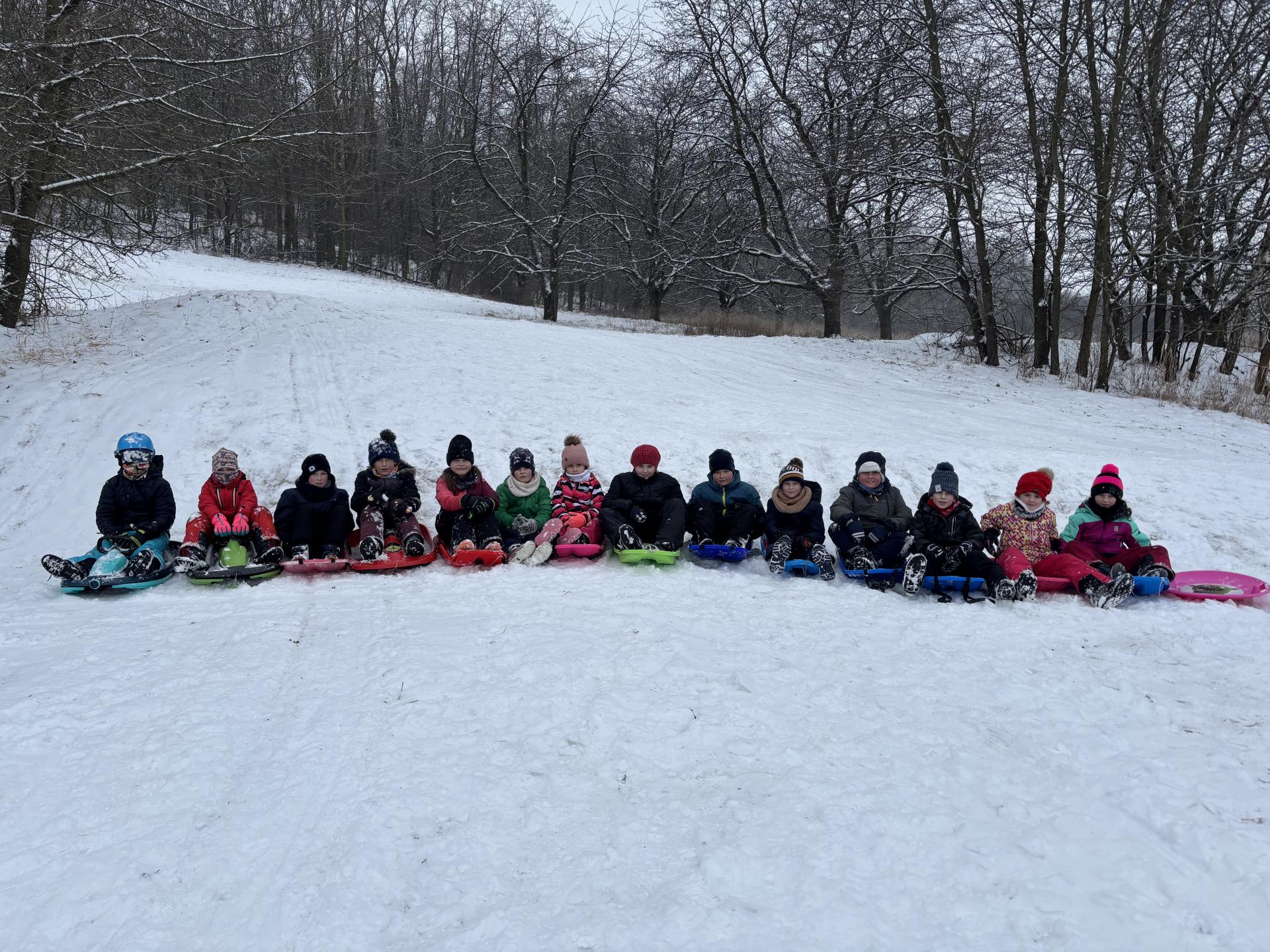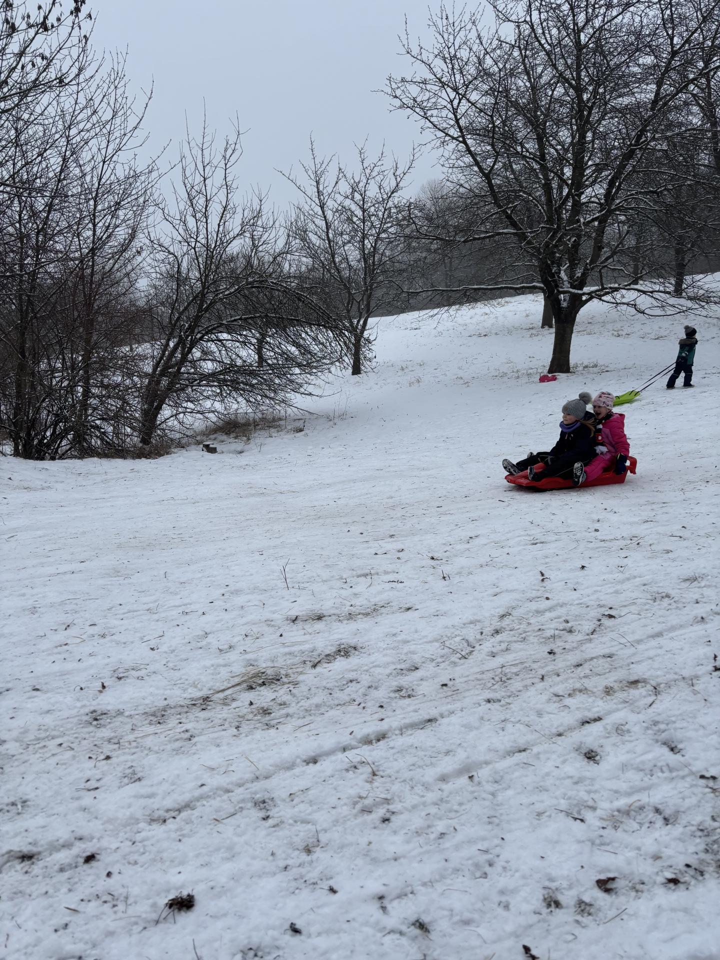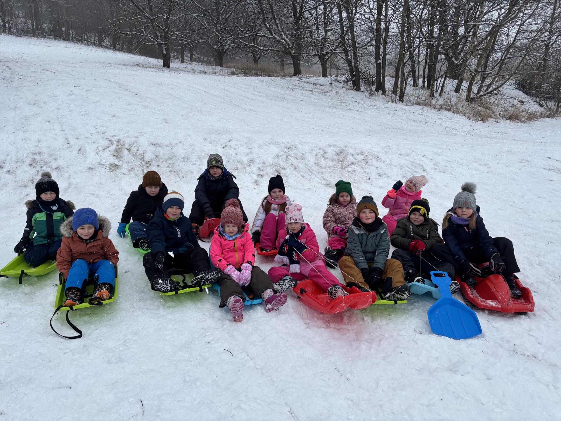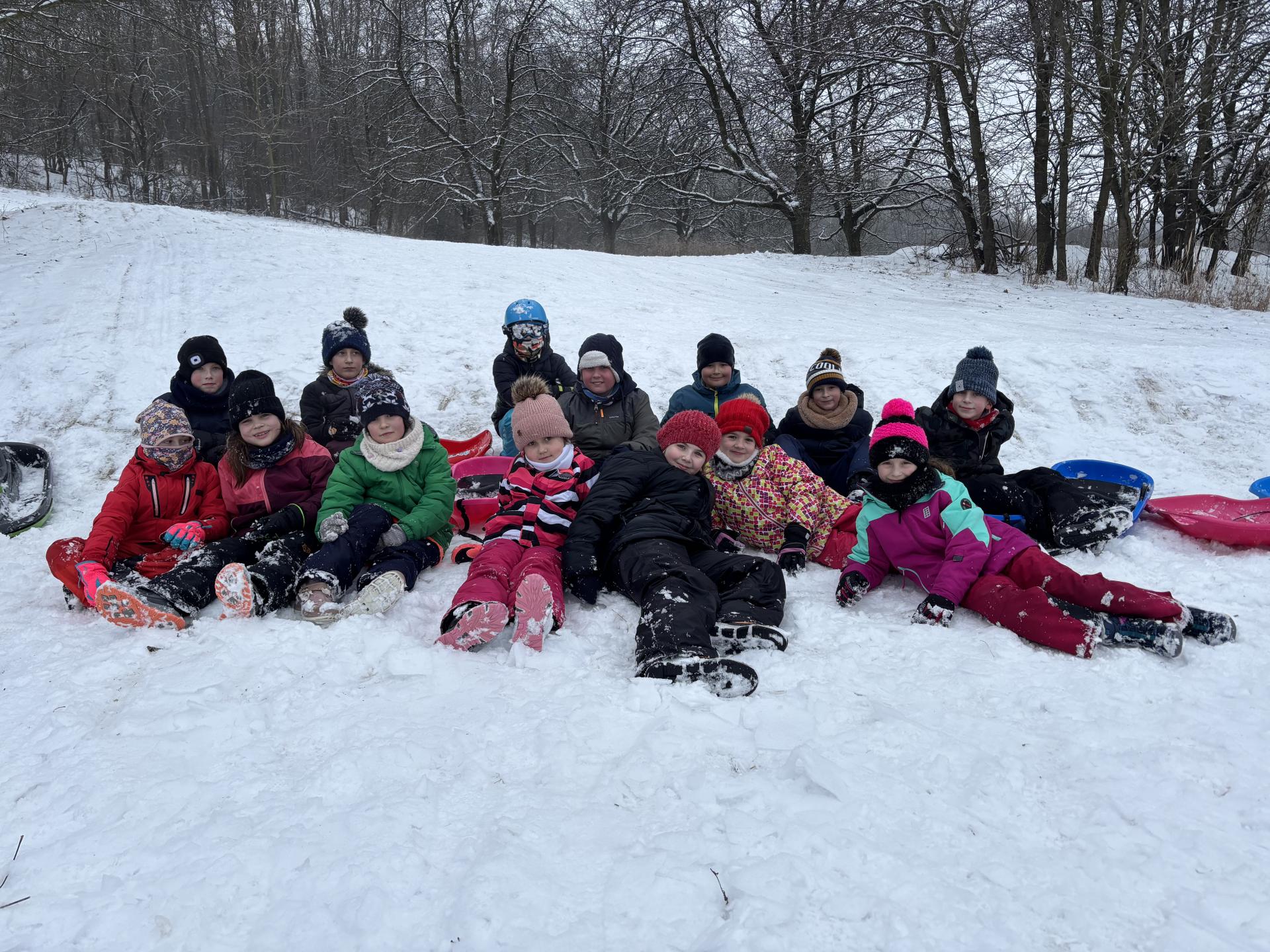 Využili jsme sněhu a strávili výuku tělesné výchovy v úterý a ve středu bobováním na svahu u fotbalového hřiště.