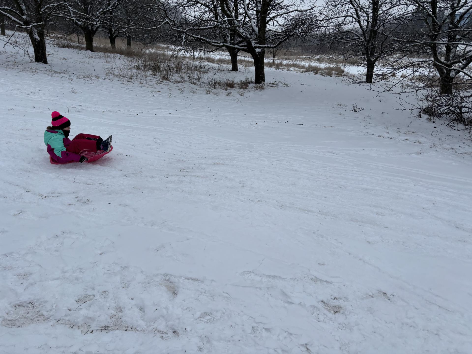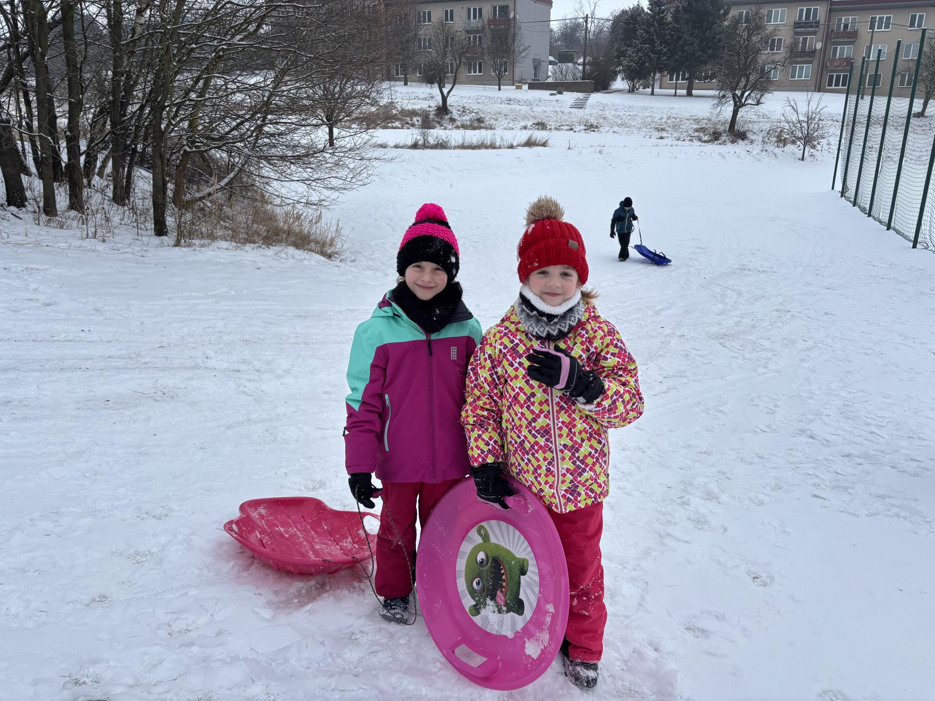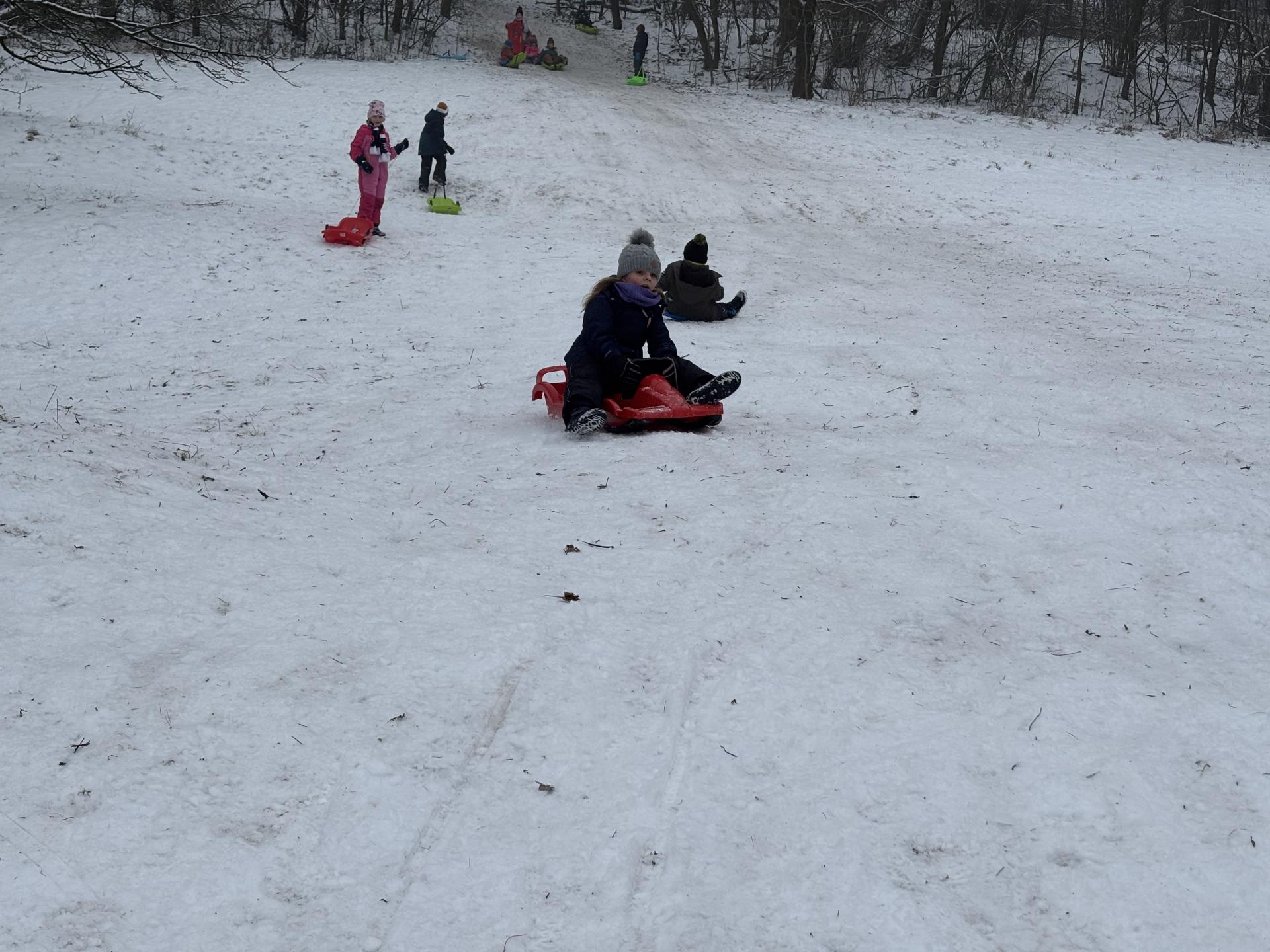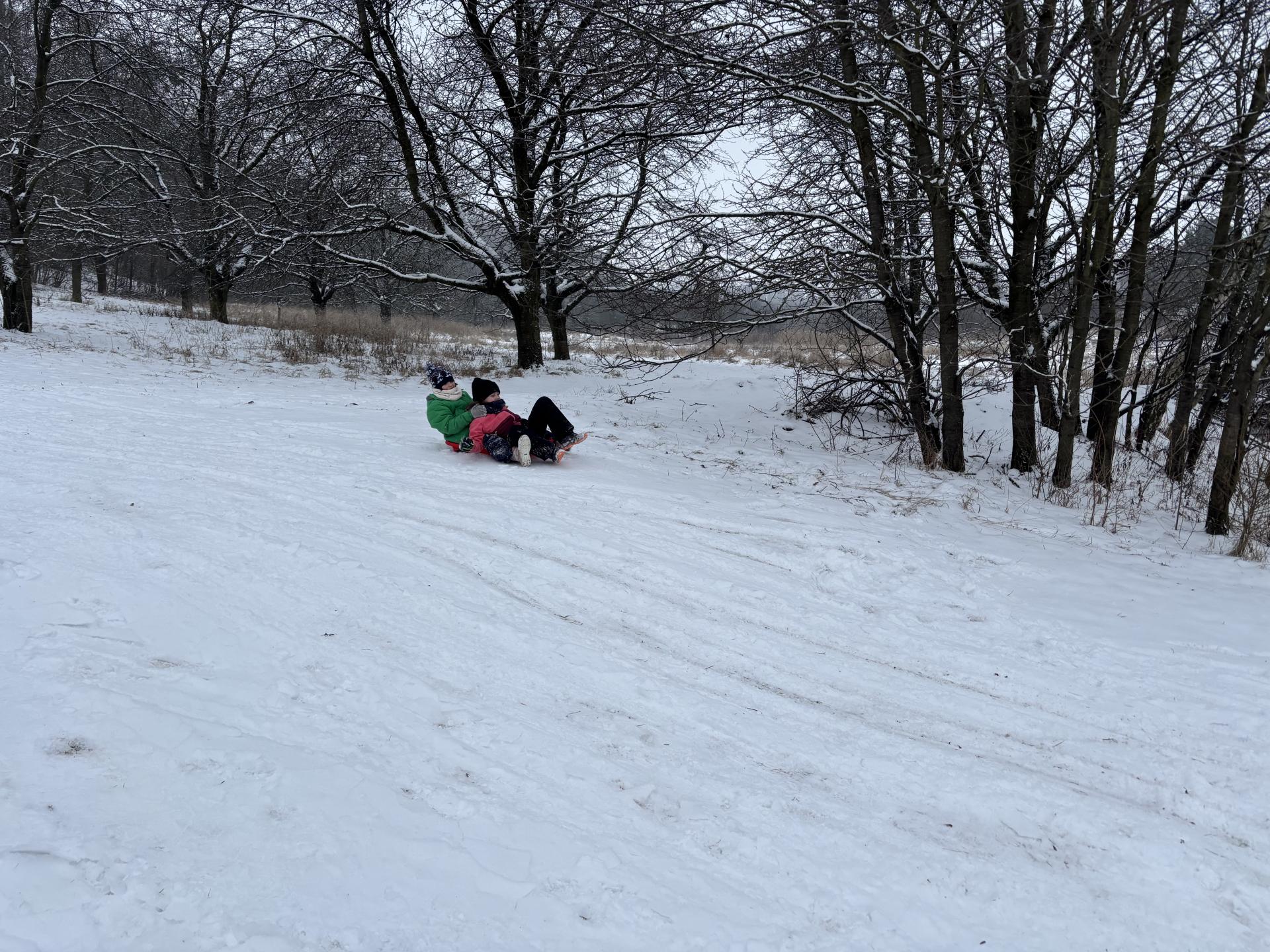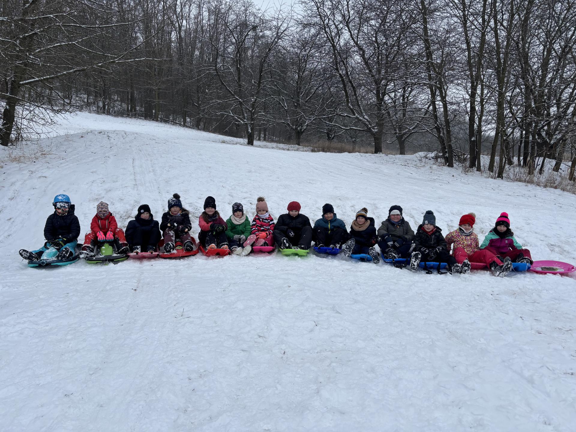 Využili jsme sněhu a strávili výuku tělesné výchovy v úterý a ve středu bobováním na svahu u fotbalového hřiště.