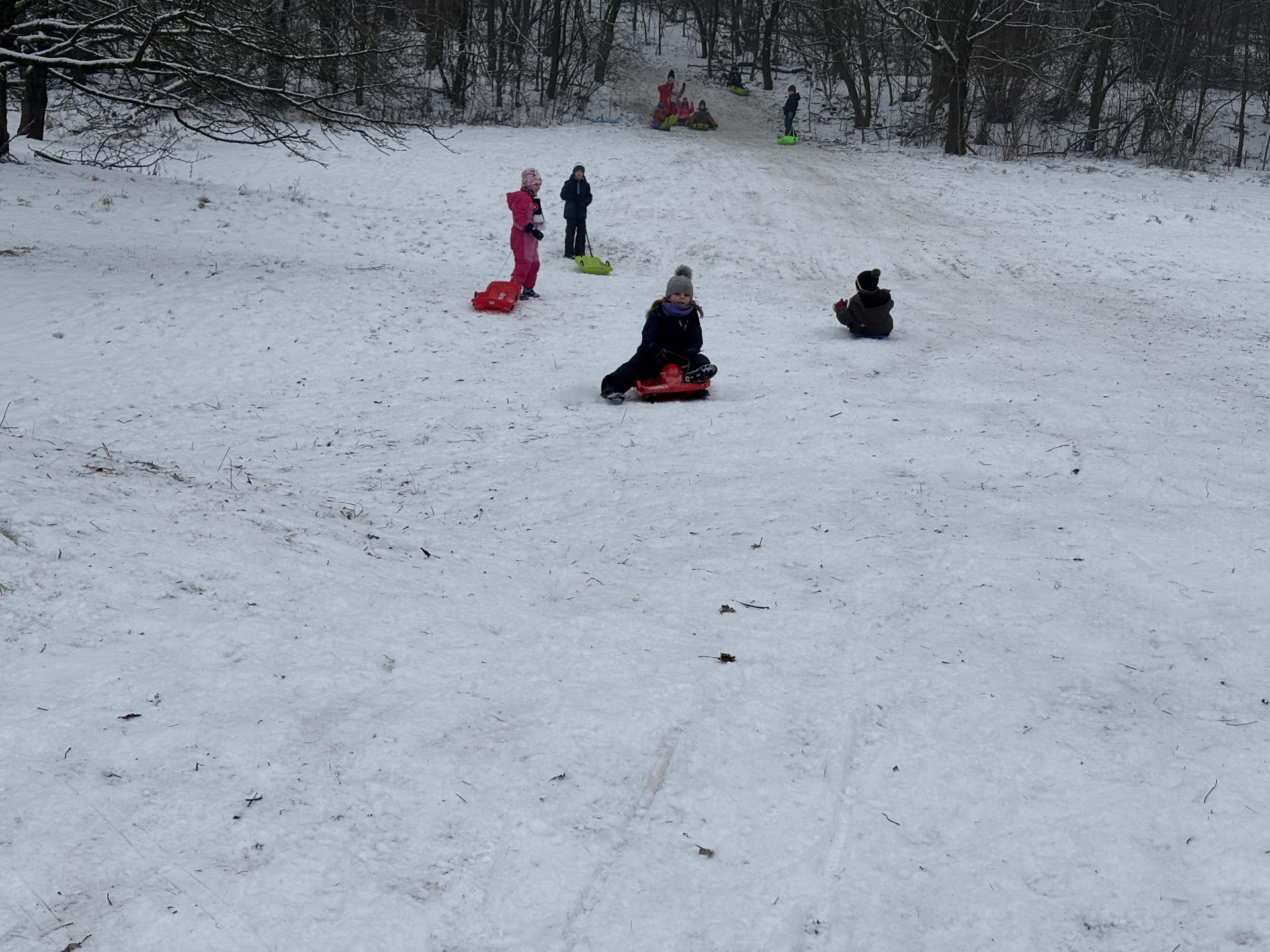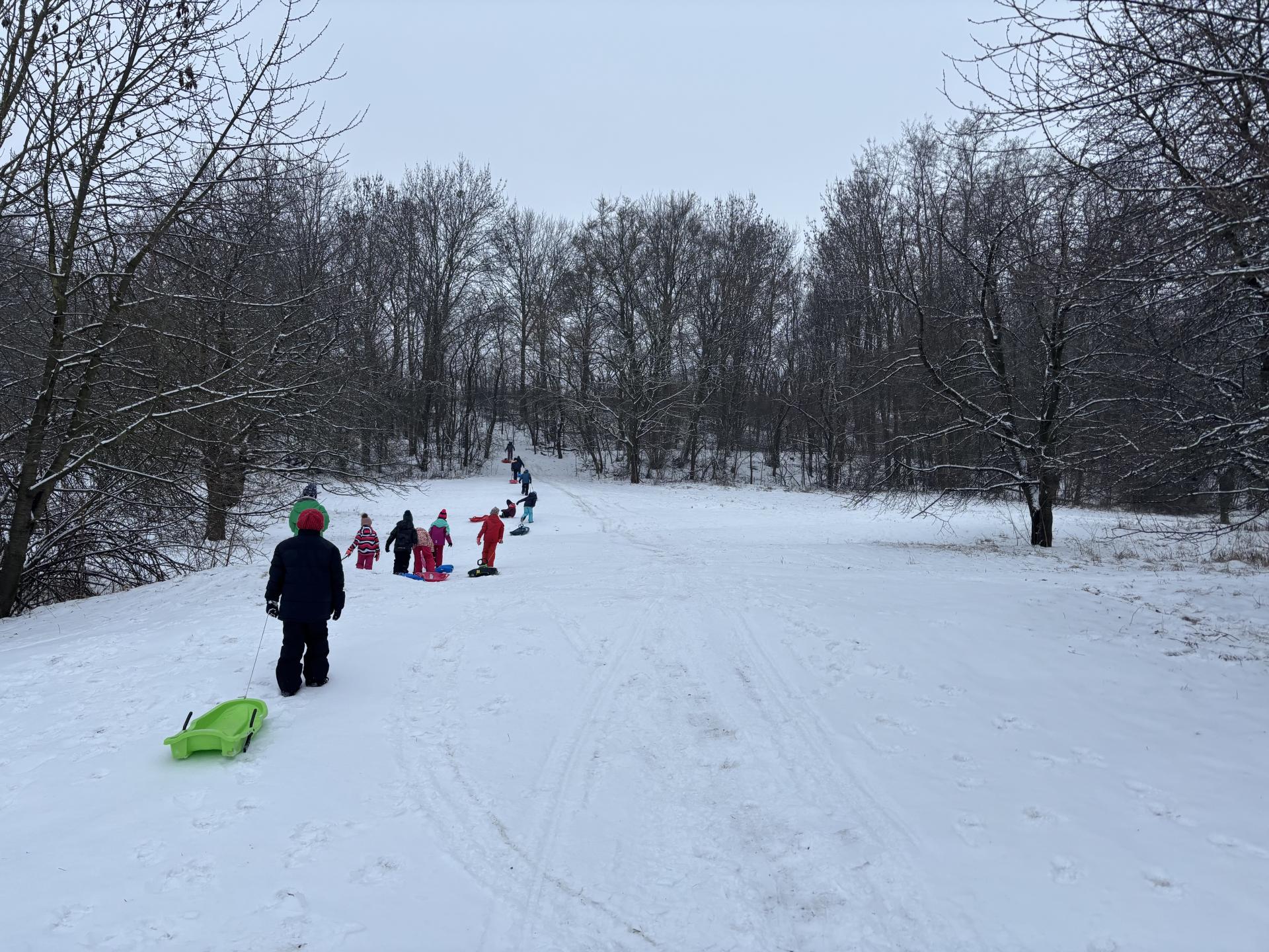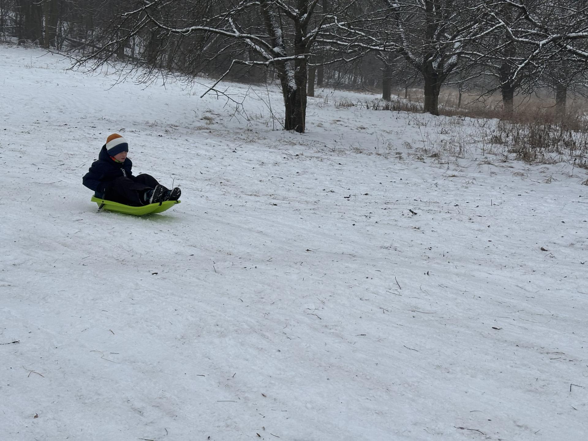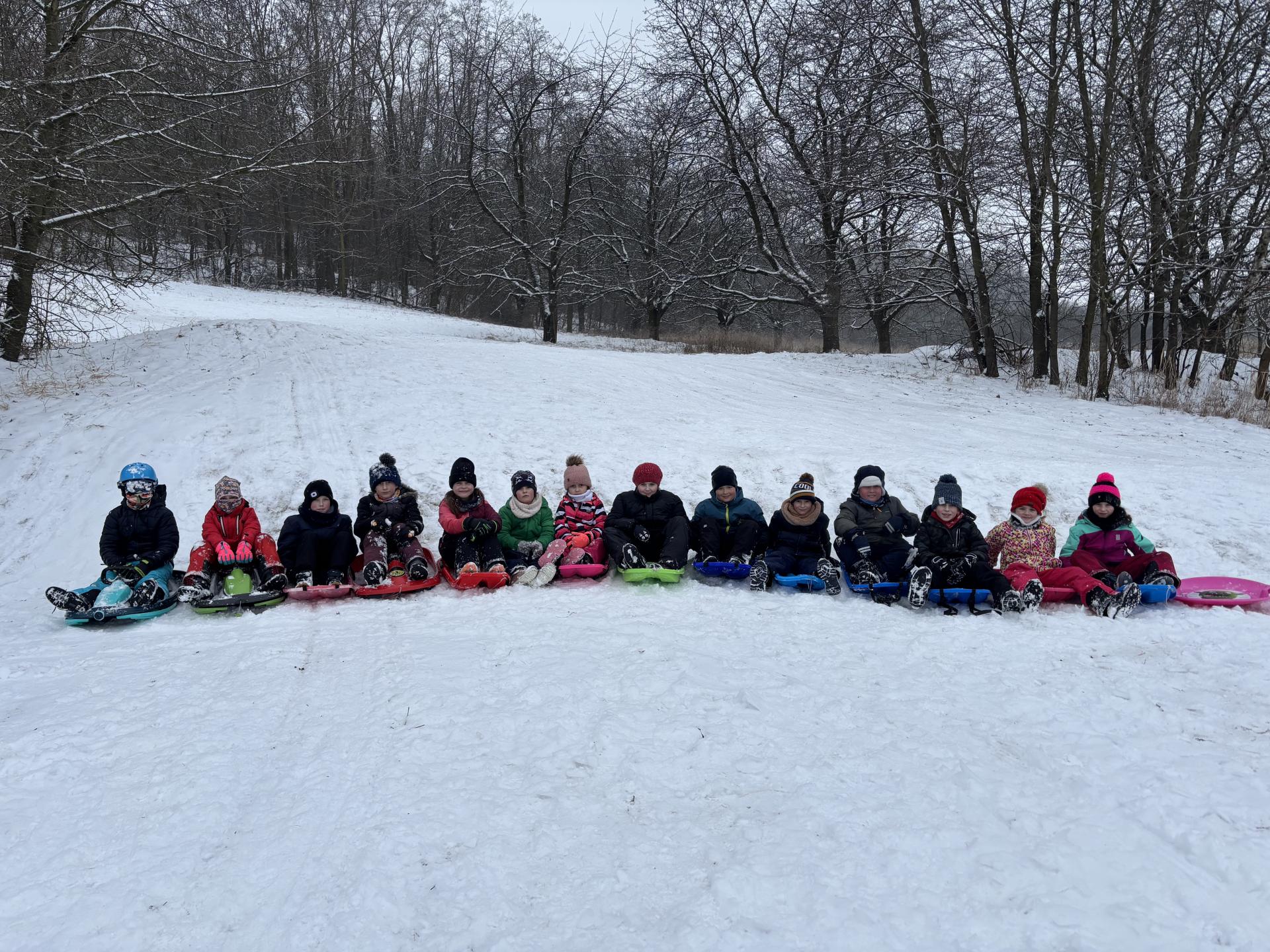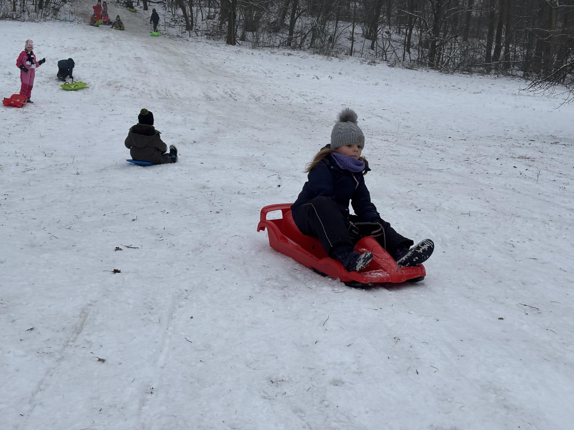 Využili jsme sněhu a strávili výuku tělesné výchovy v úterý a ve středu bobováním na svahu u fotbalového hřiště.