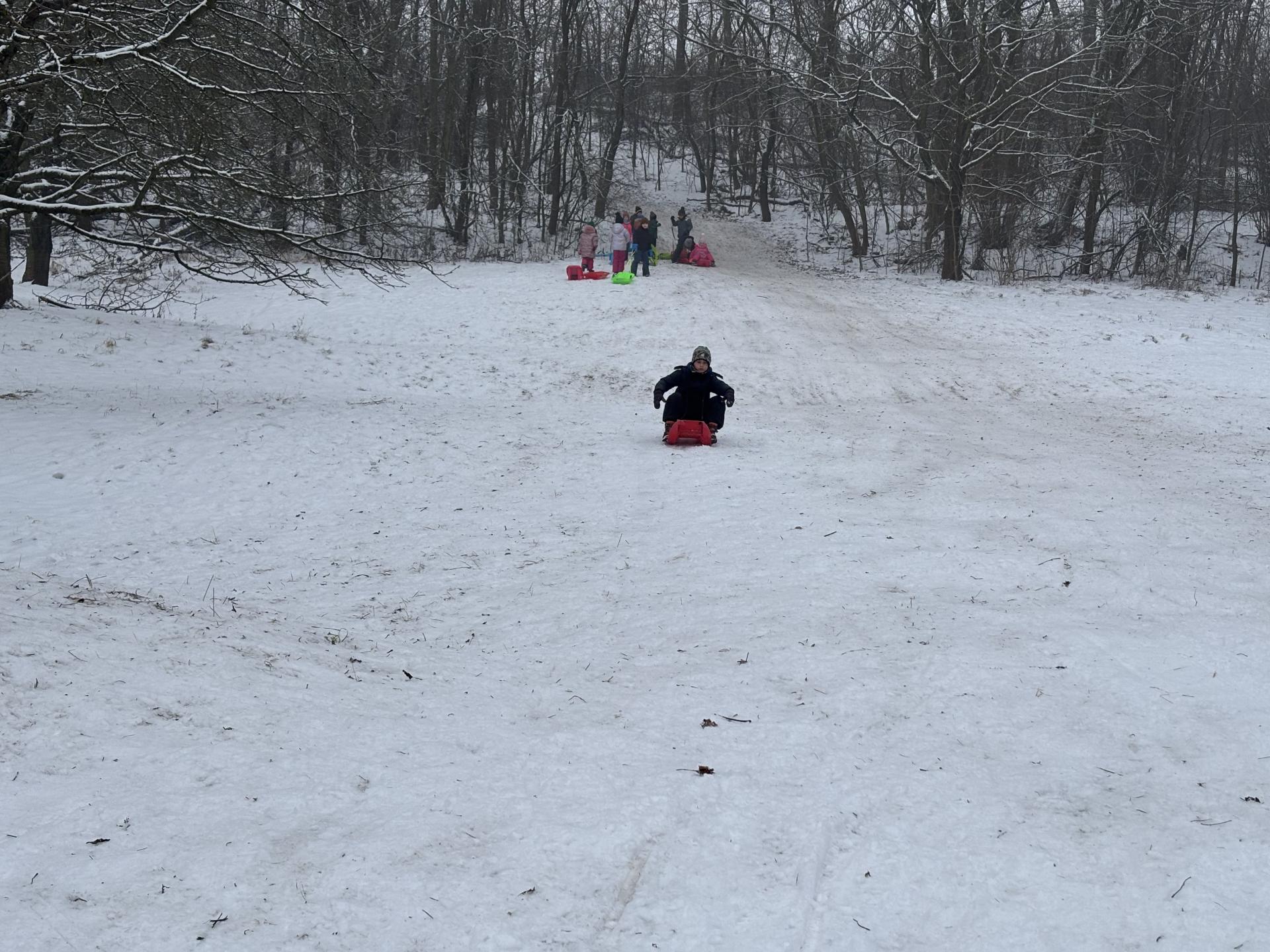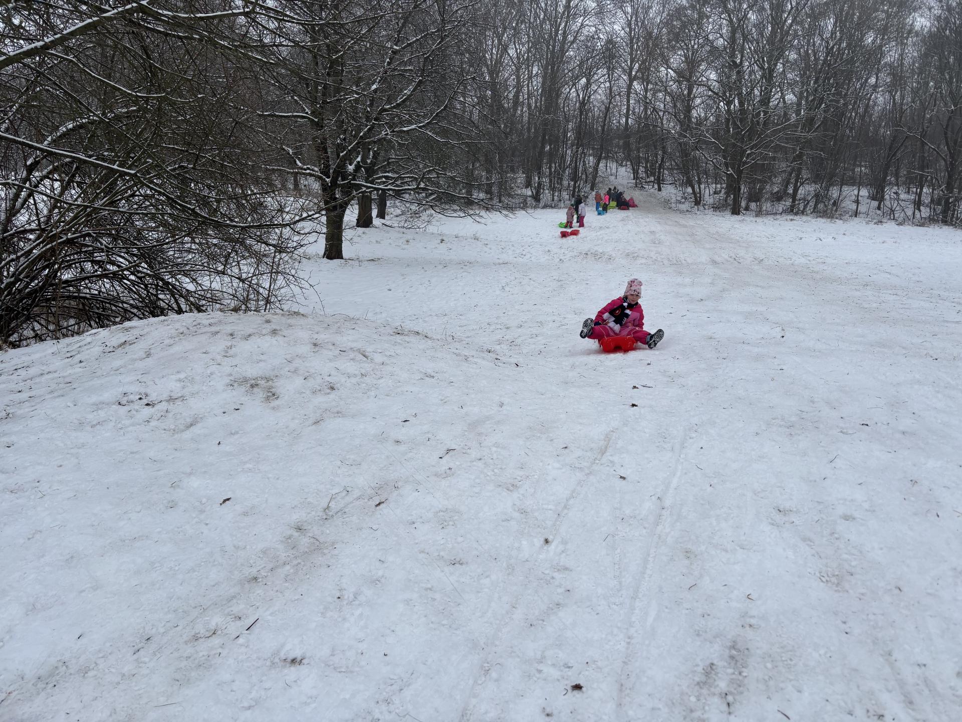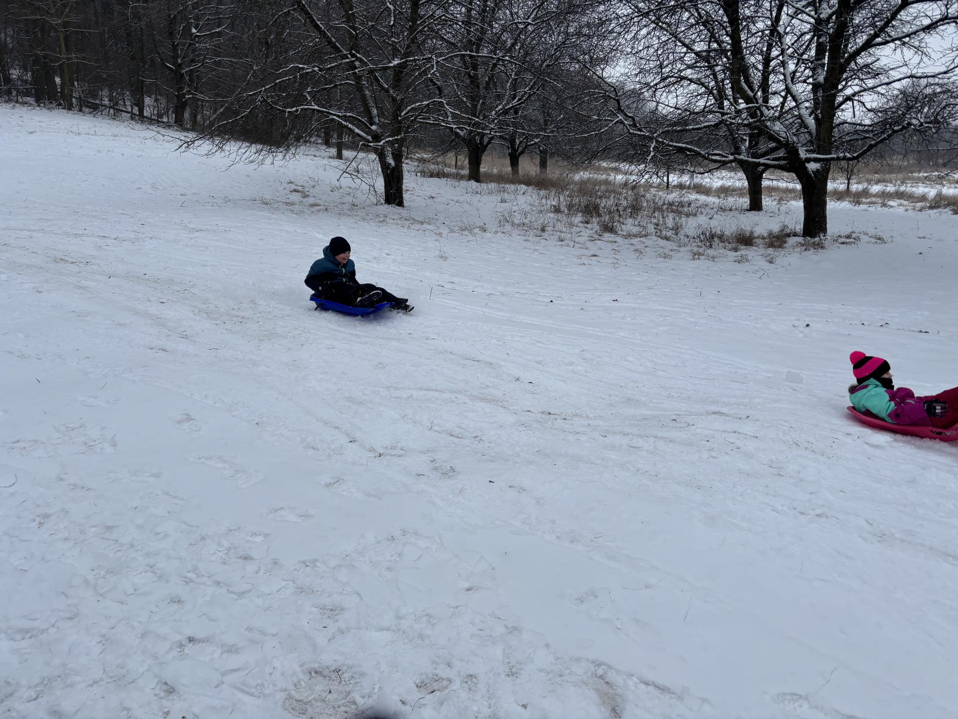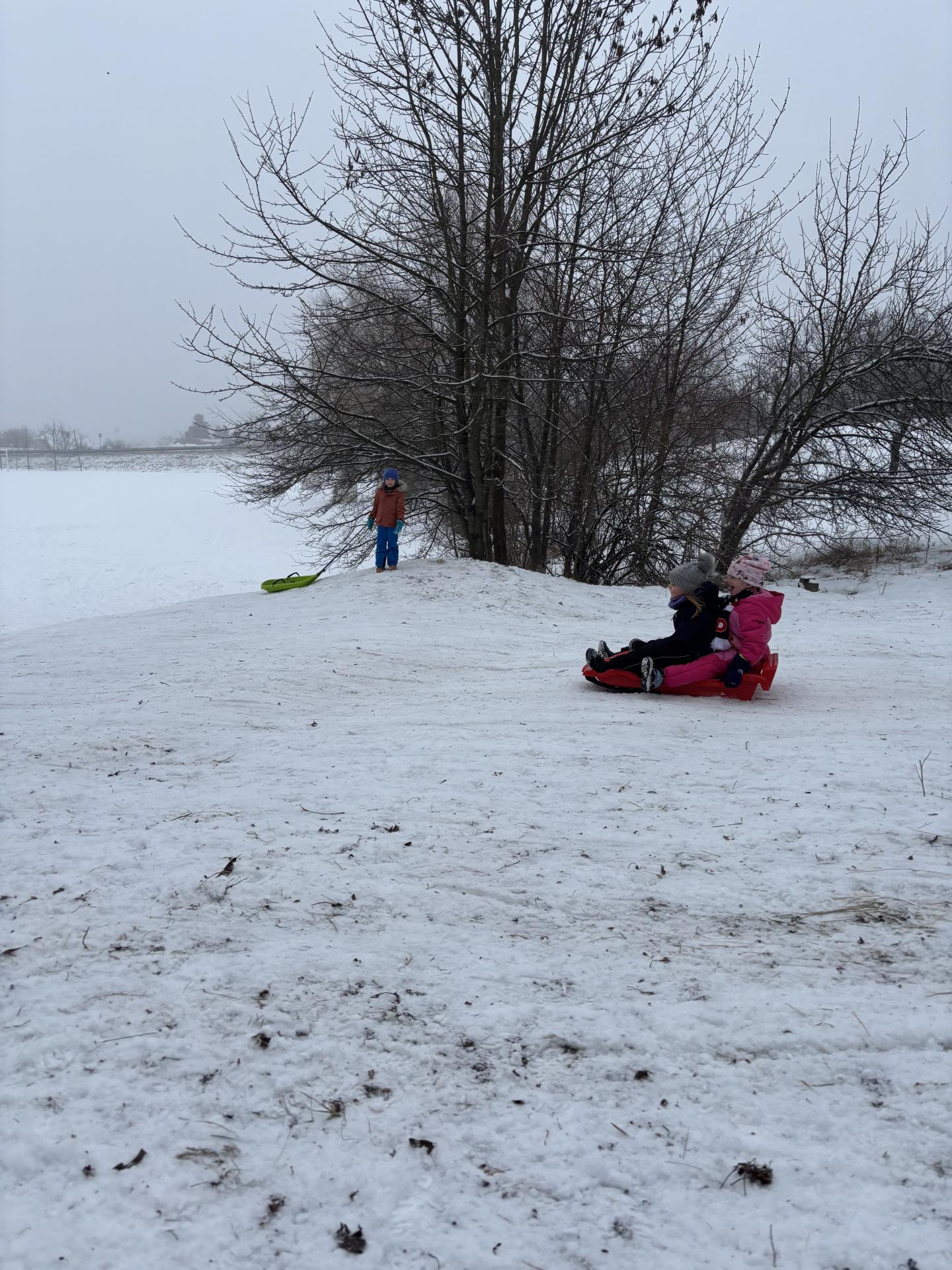 Využili jsme sněhu a strávili výuku tělesné výchovy v úterý a ve středu bobováním na svahu u fotbalového hřiště.