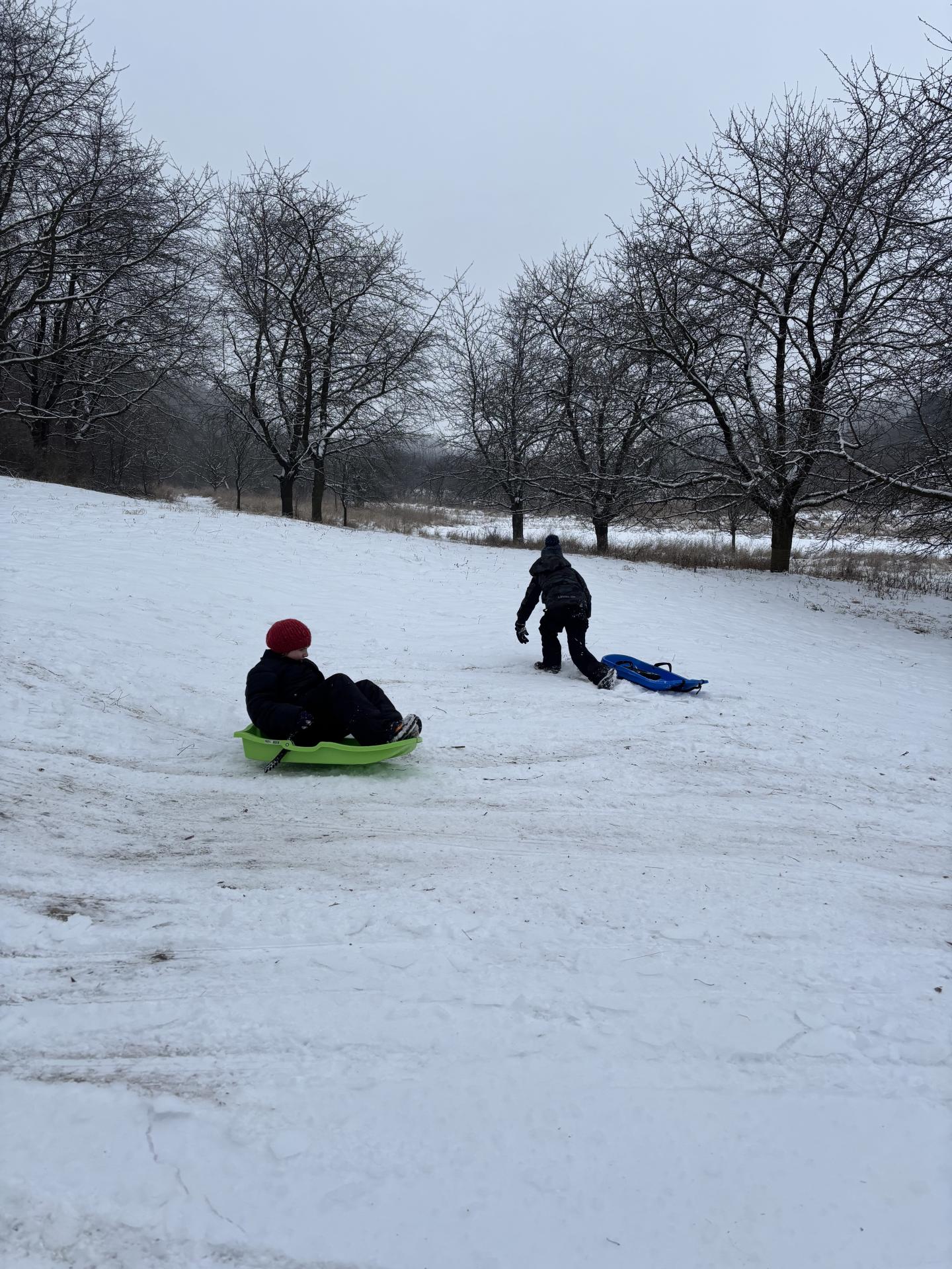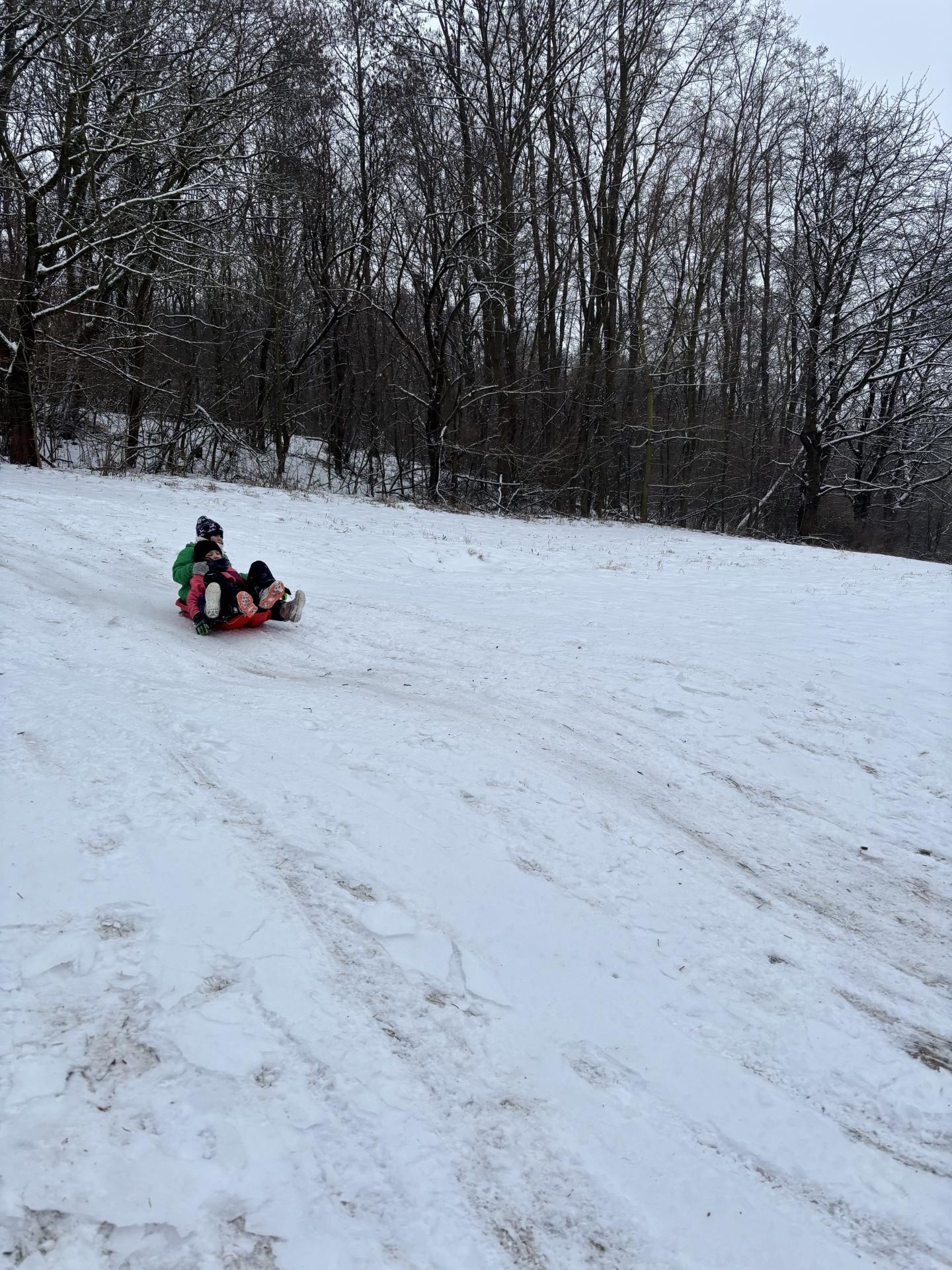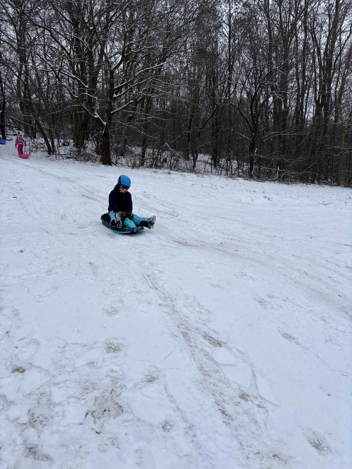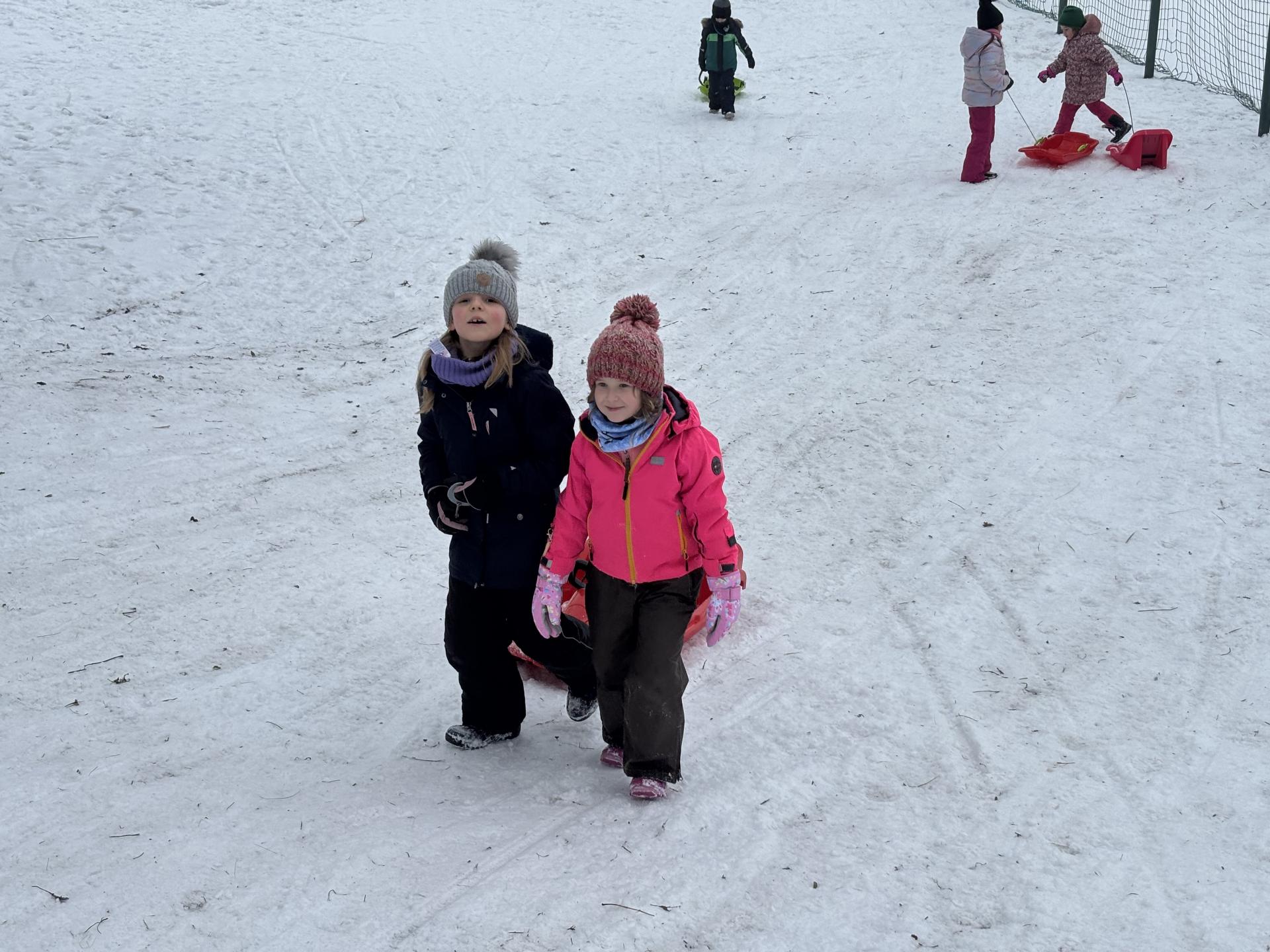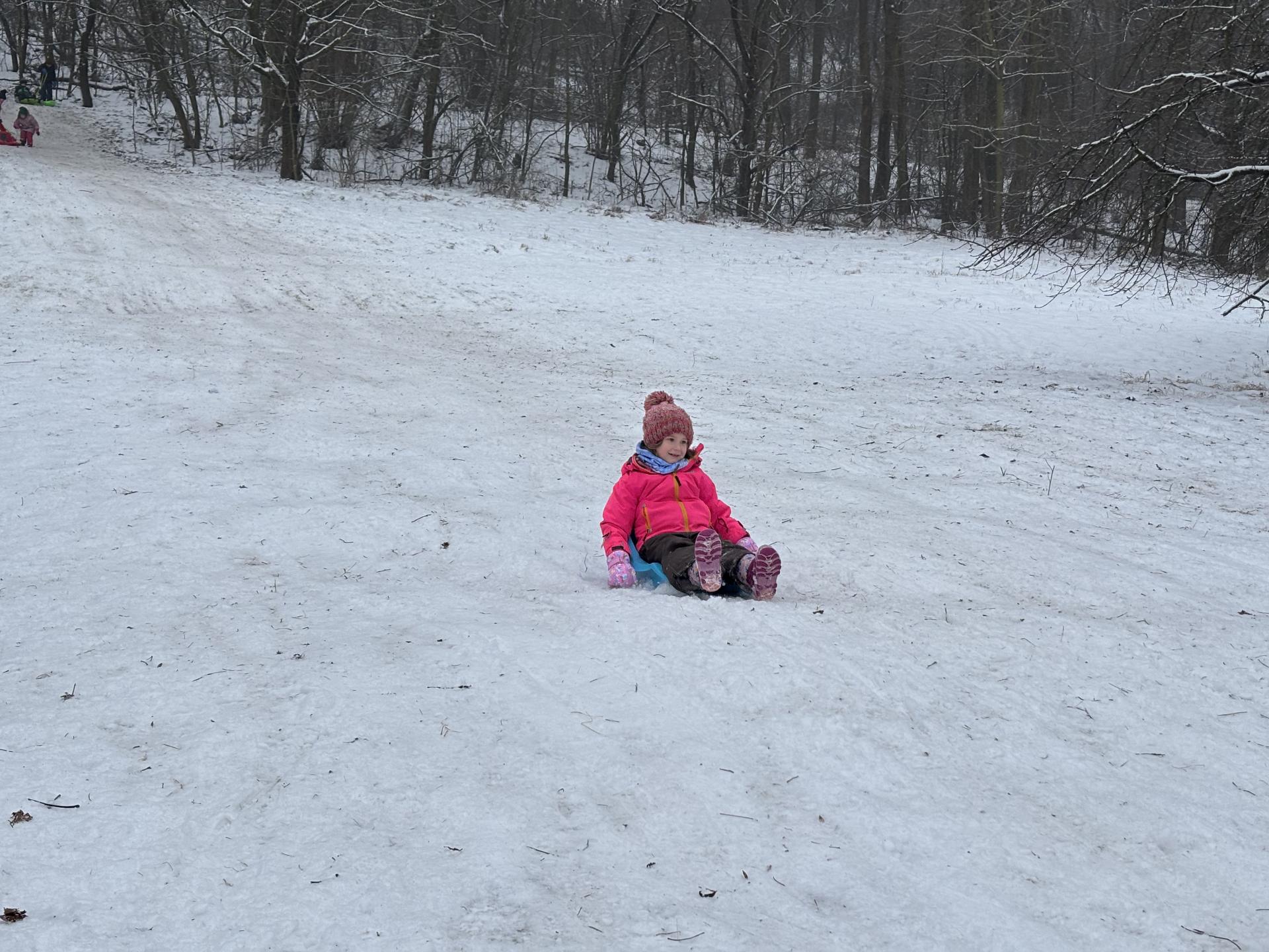 Využili jsme sněhu a strávili výuku tělesné výchovy v úterý a ve středu bobováním na svahu u fotbalového hřiště.