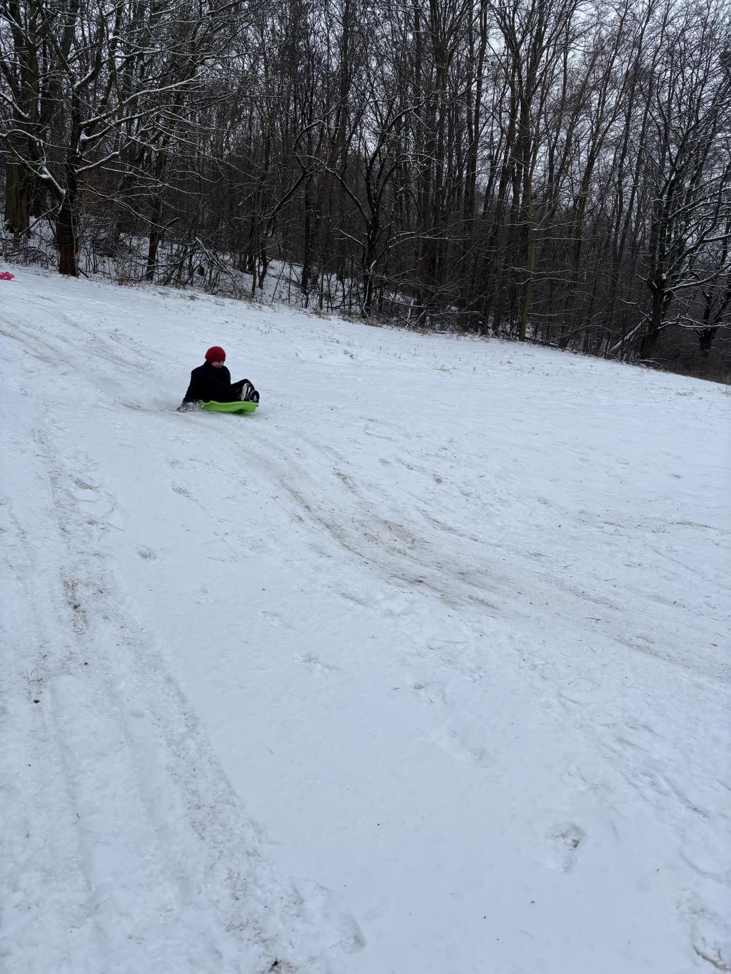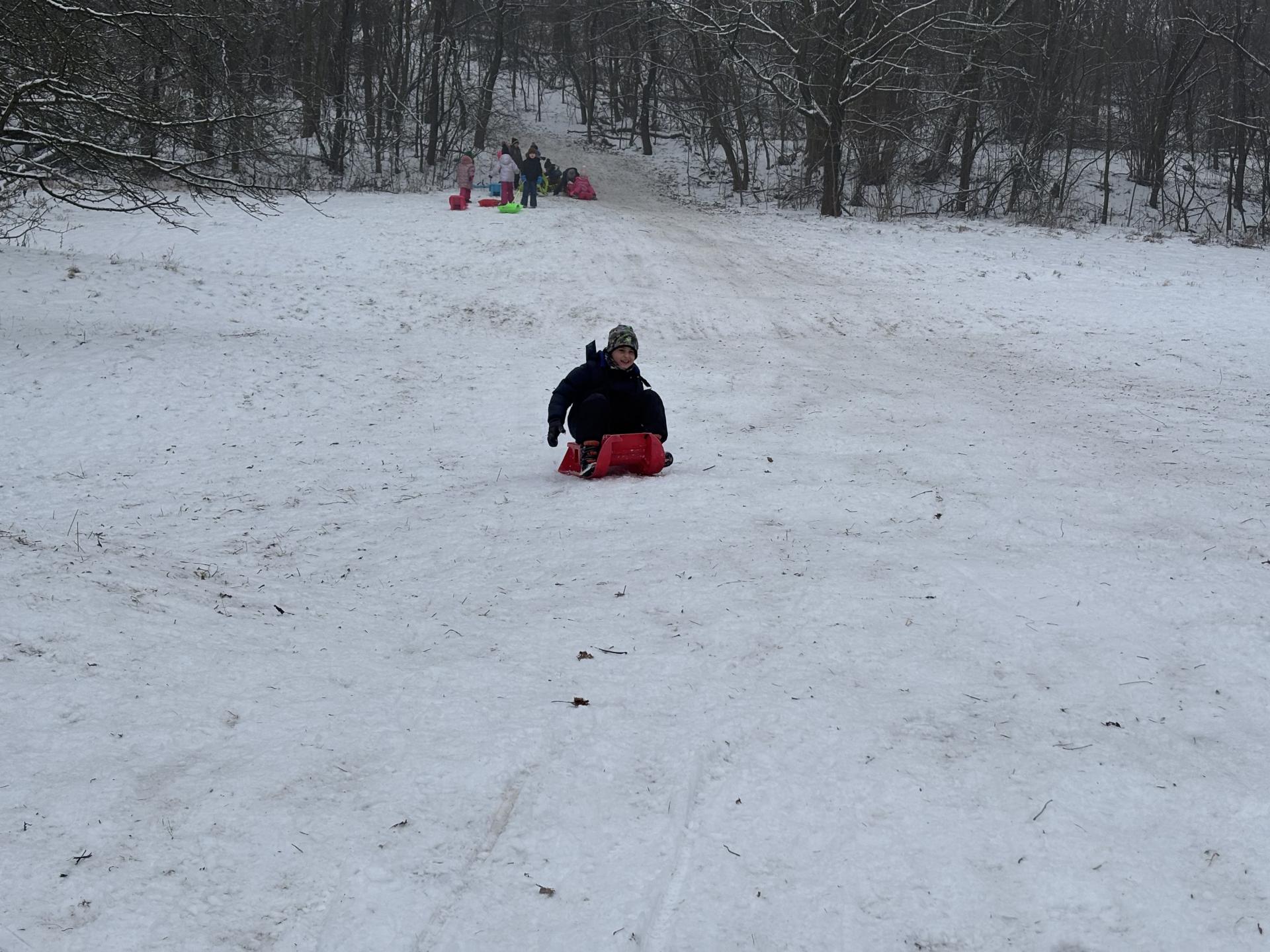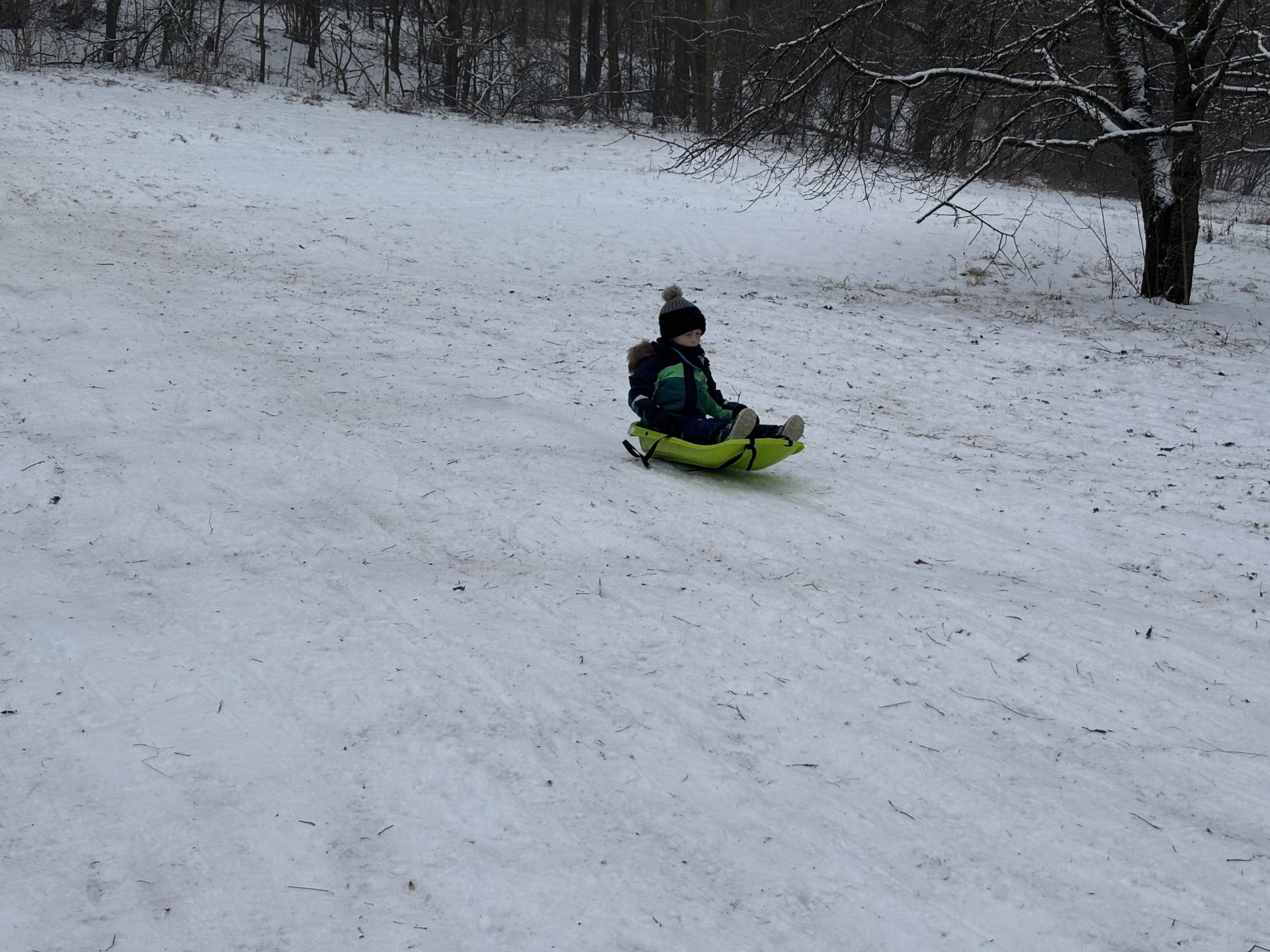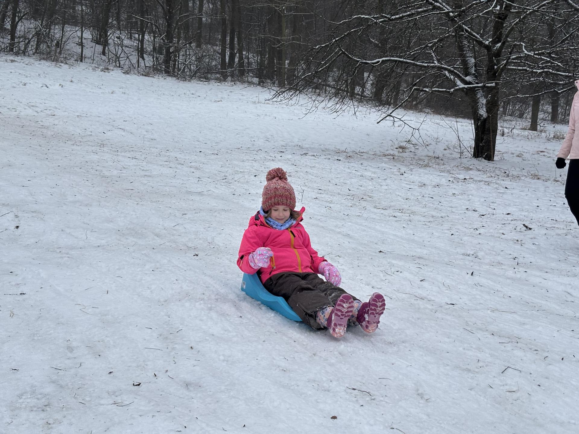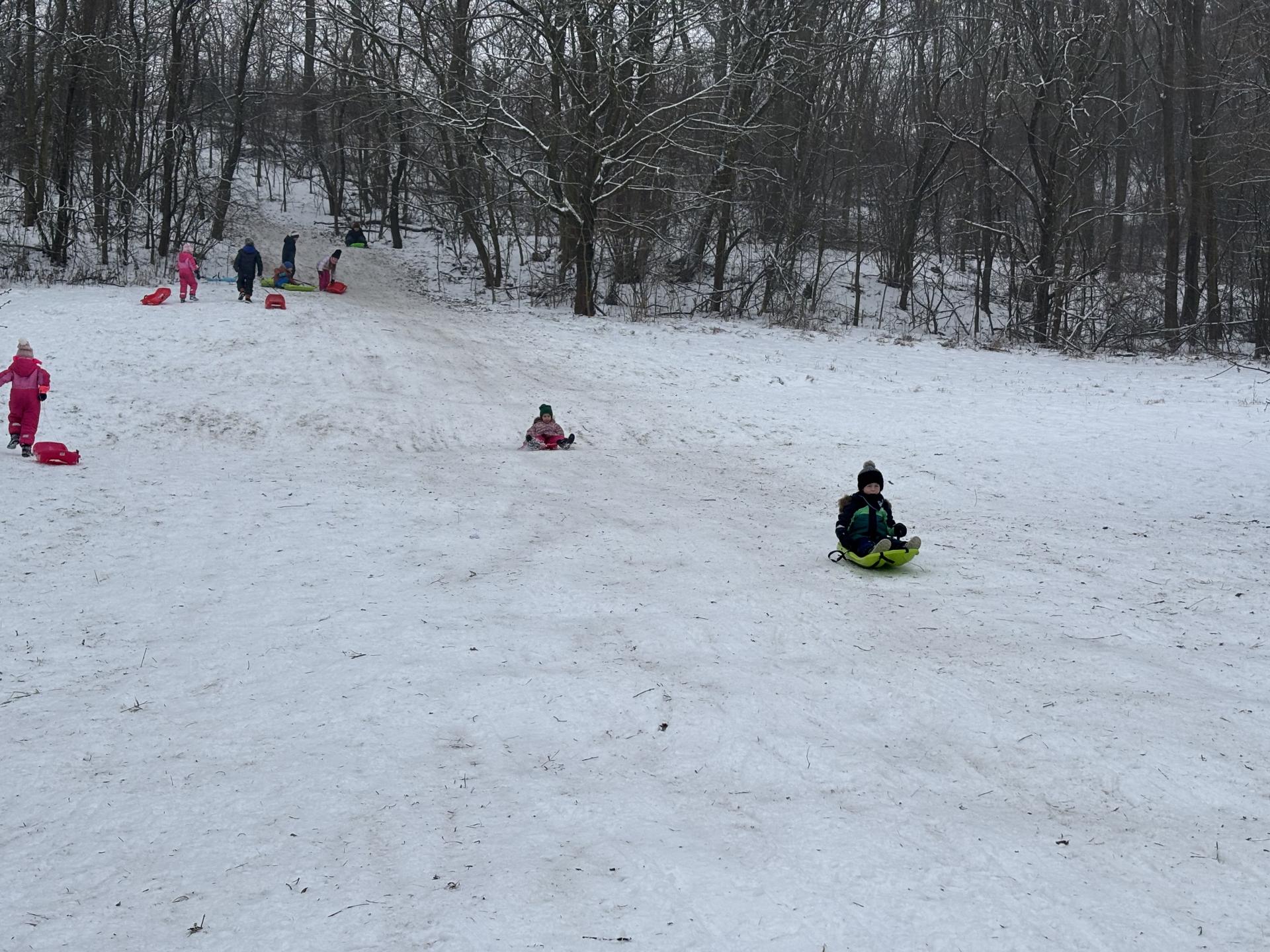 Využili jsme sněhu a strávili výuku tělesné výchovy v úterý a ve středu bobováním na svahu u fotbalového hřiště.