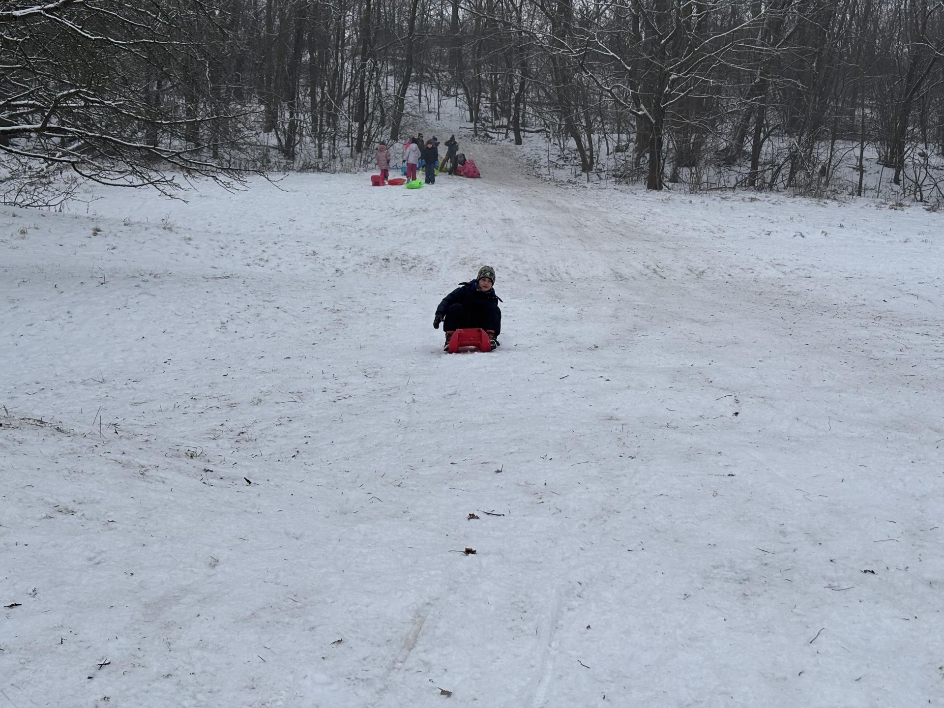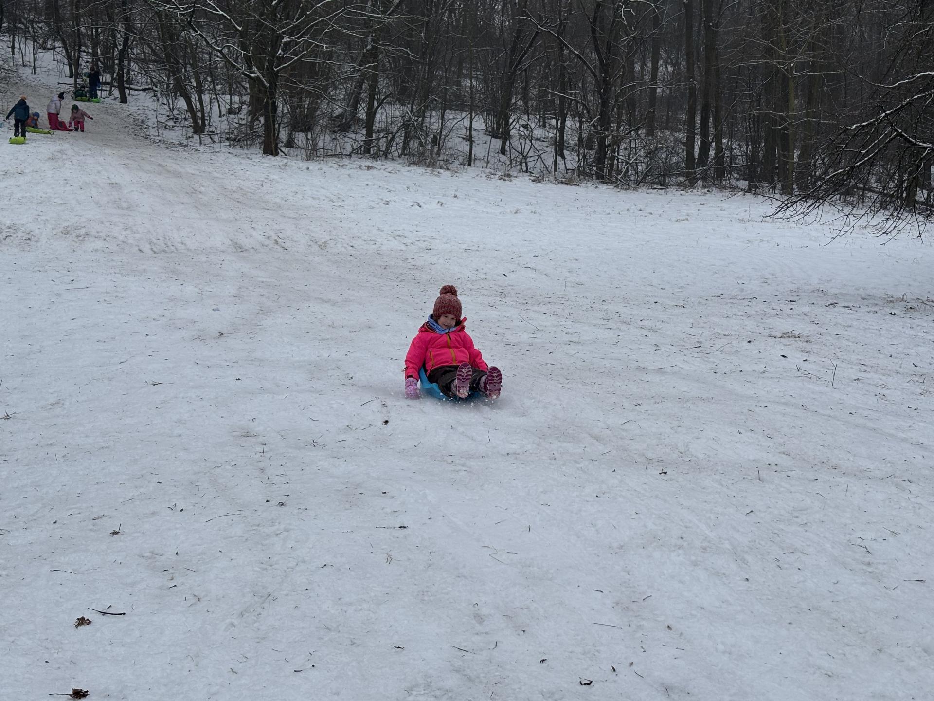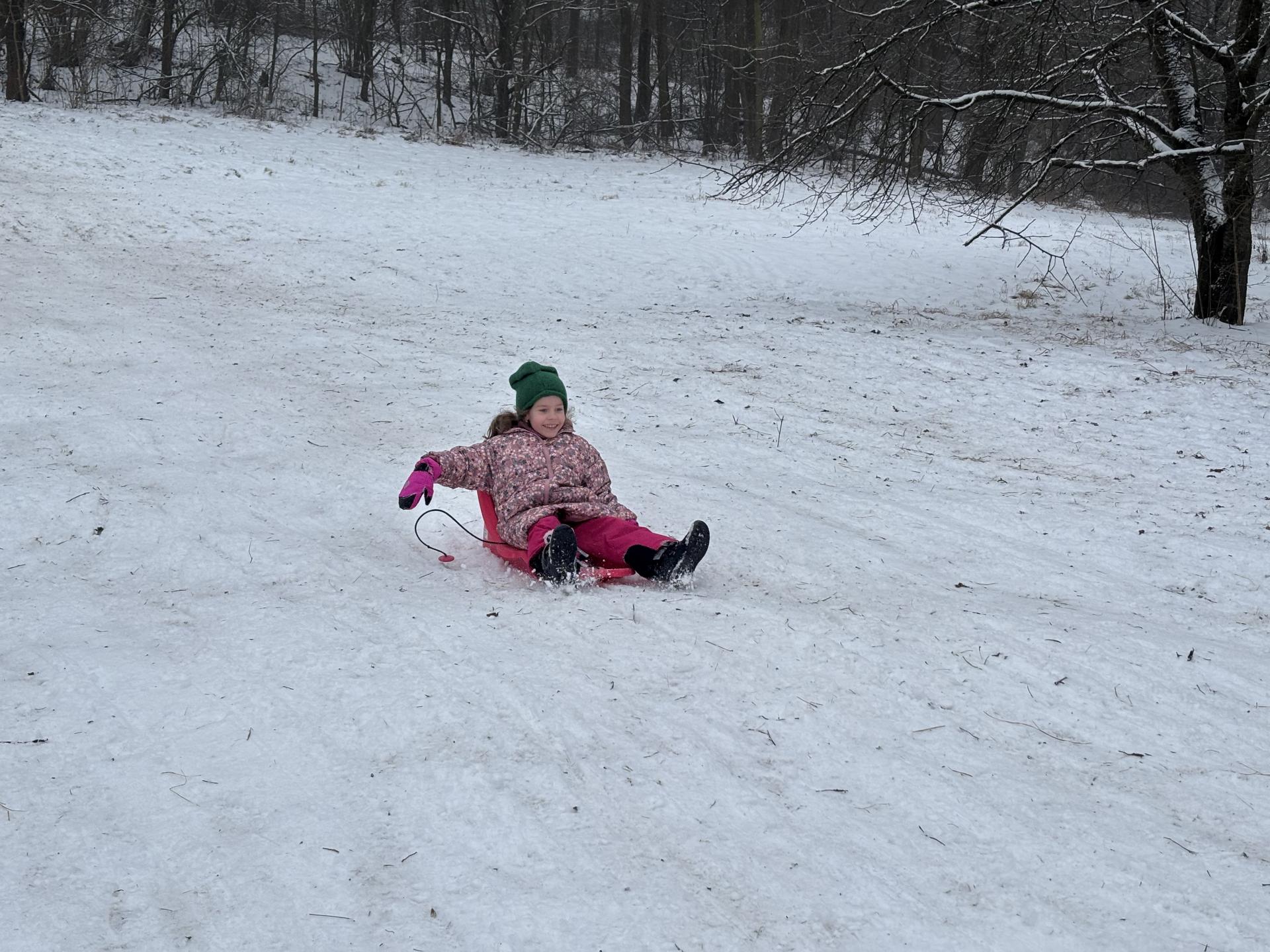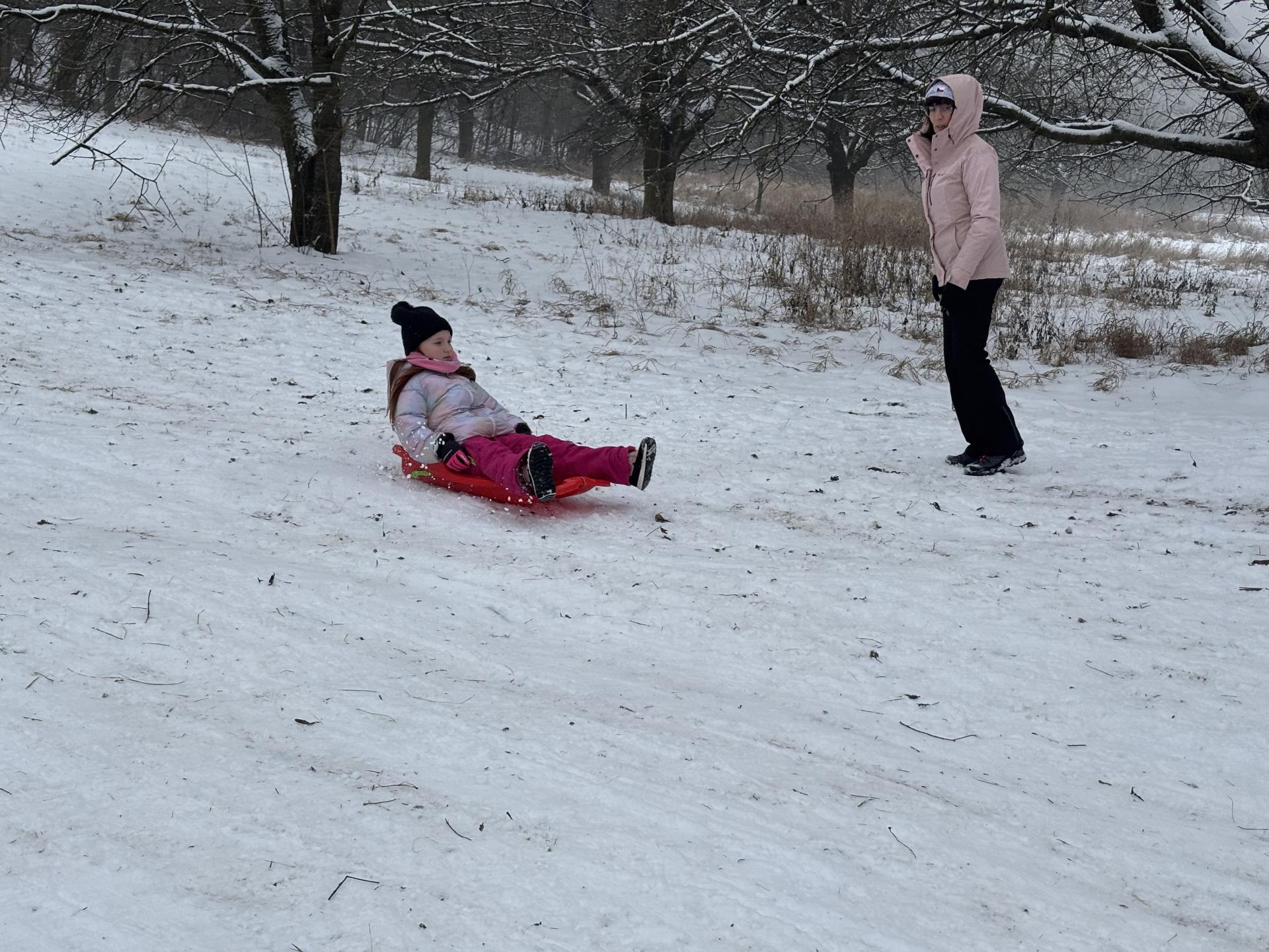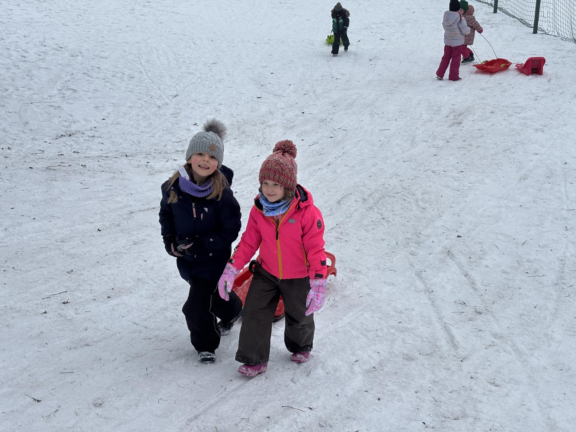 Využili jsme sněhu a strávili výuku tělesné výchovy v úterý a ve středu bobováním na svahu u fotbalového hřiště.