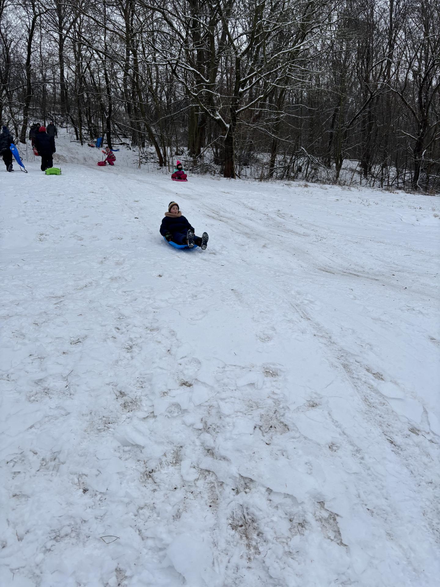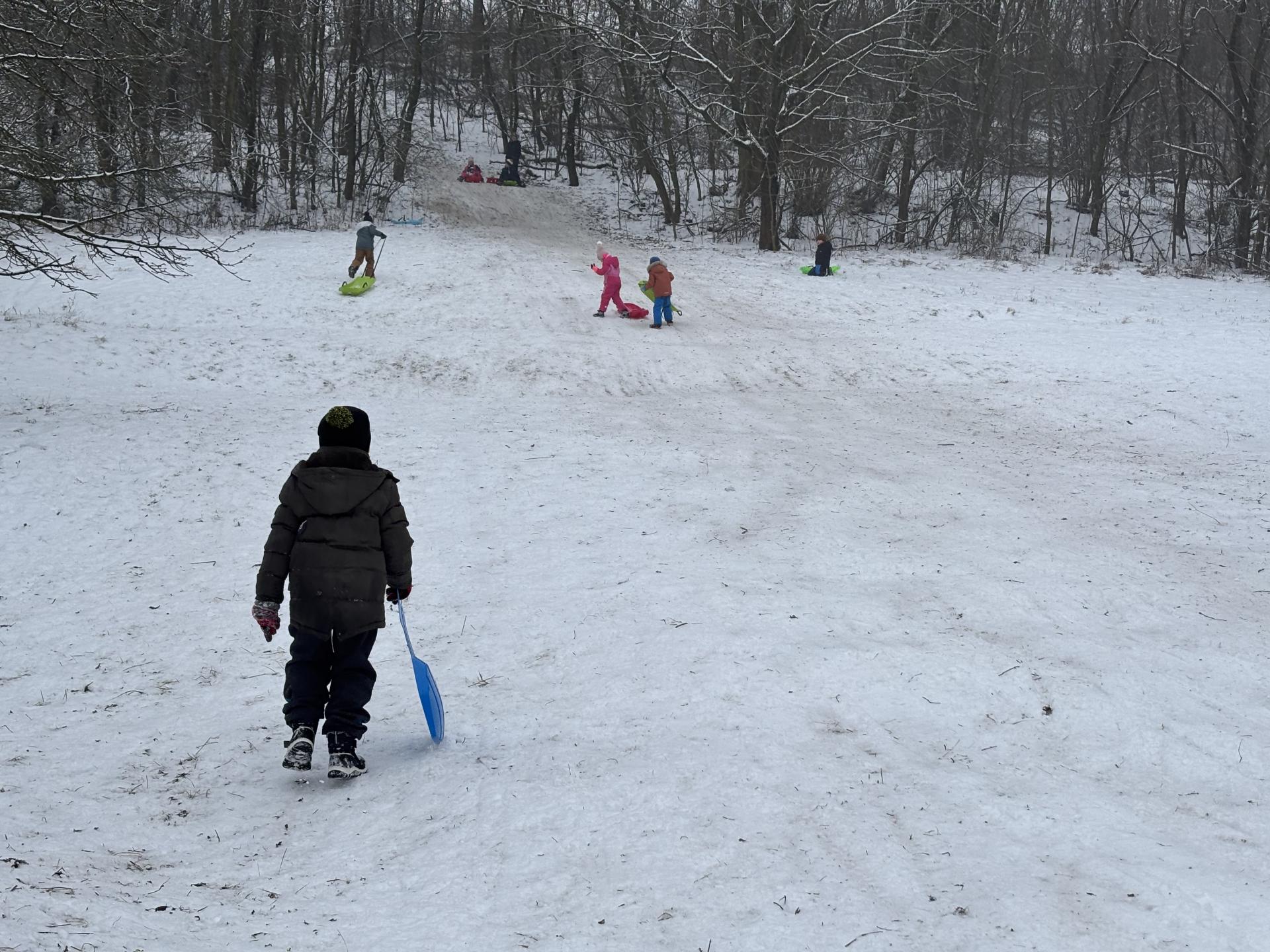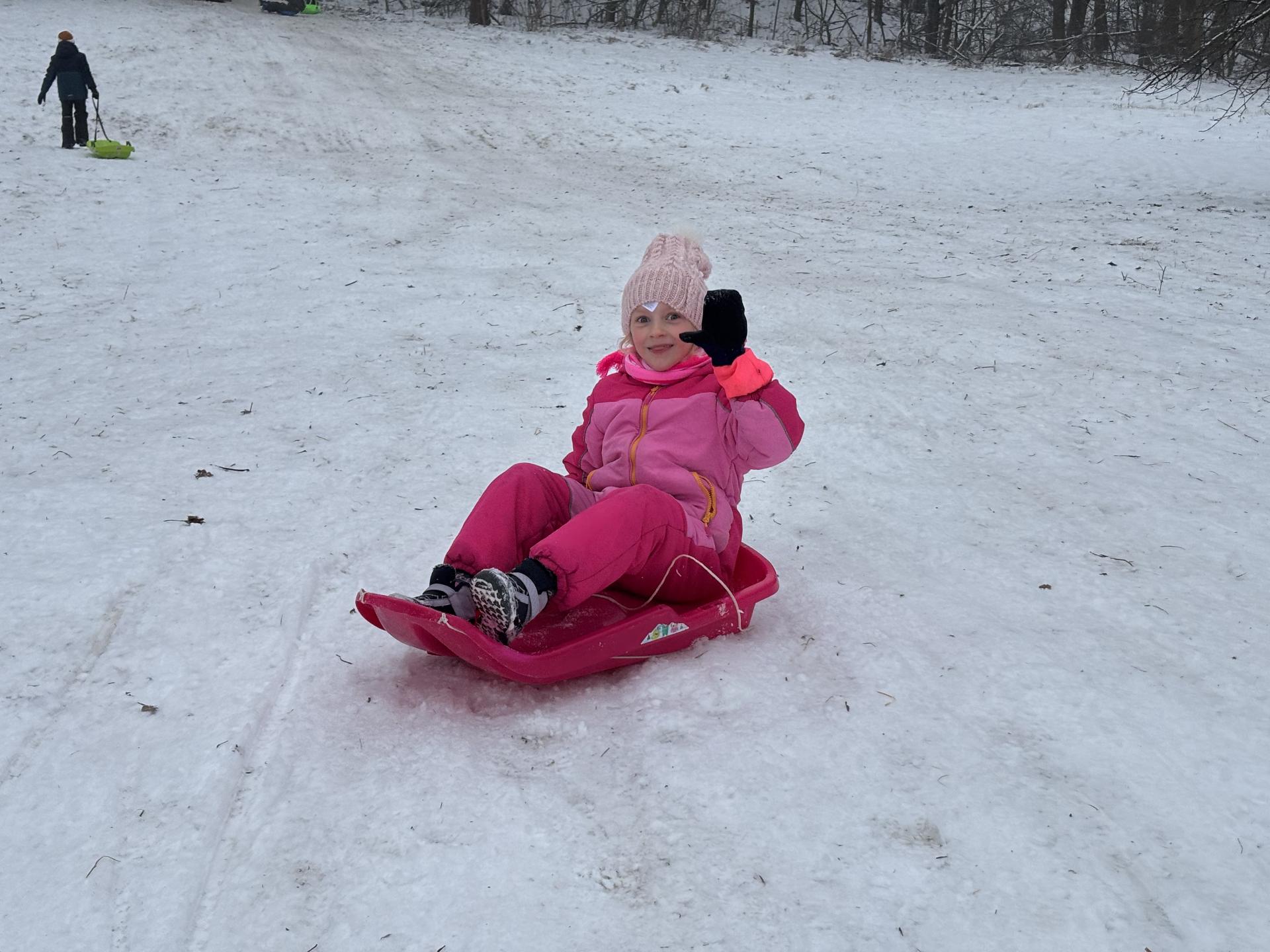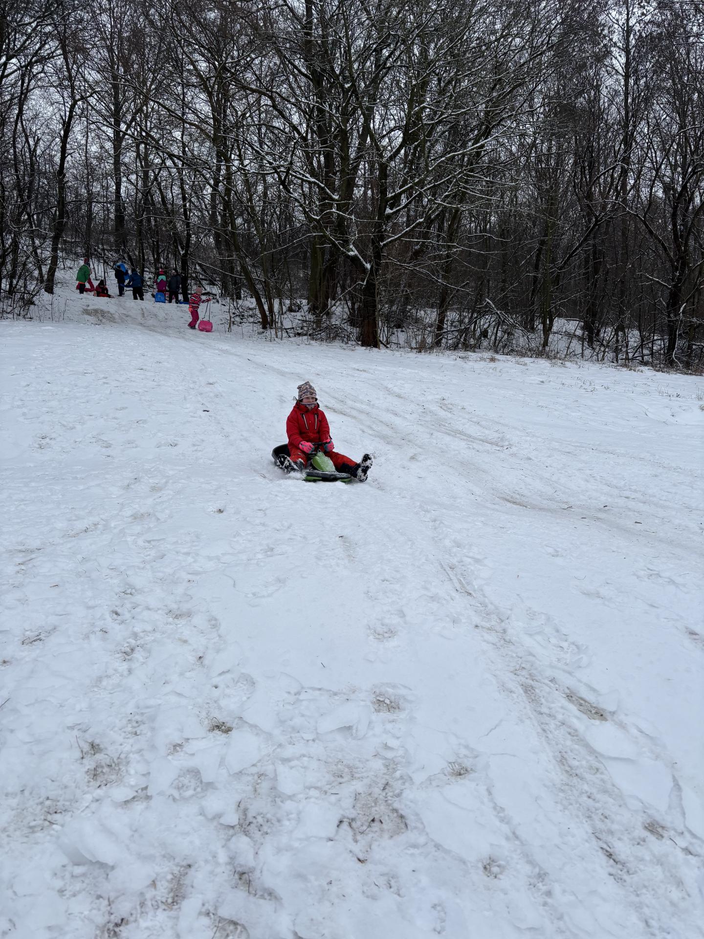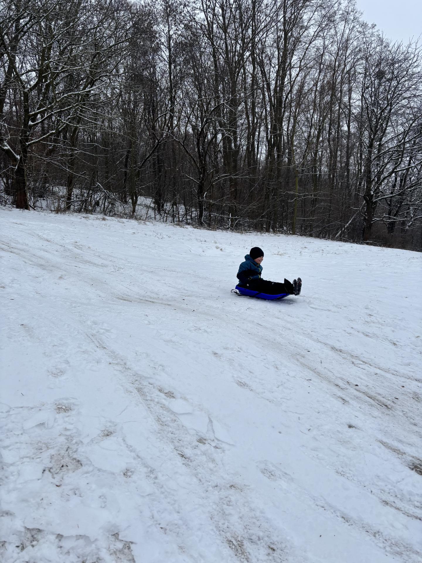 Využili jsme sněhu a strávili výuku tělesné výchovy v úterý a ve středu bobováním na svahu u fotbalového hřiště.