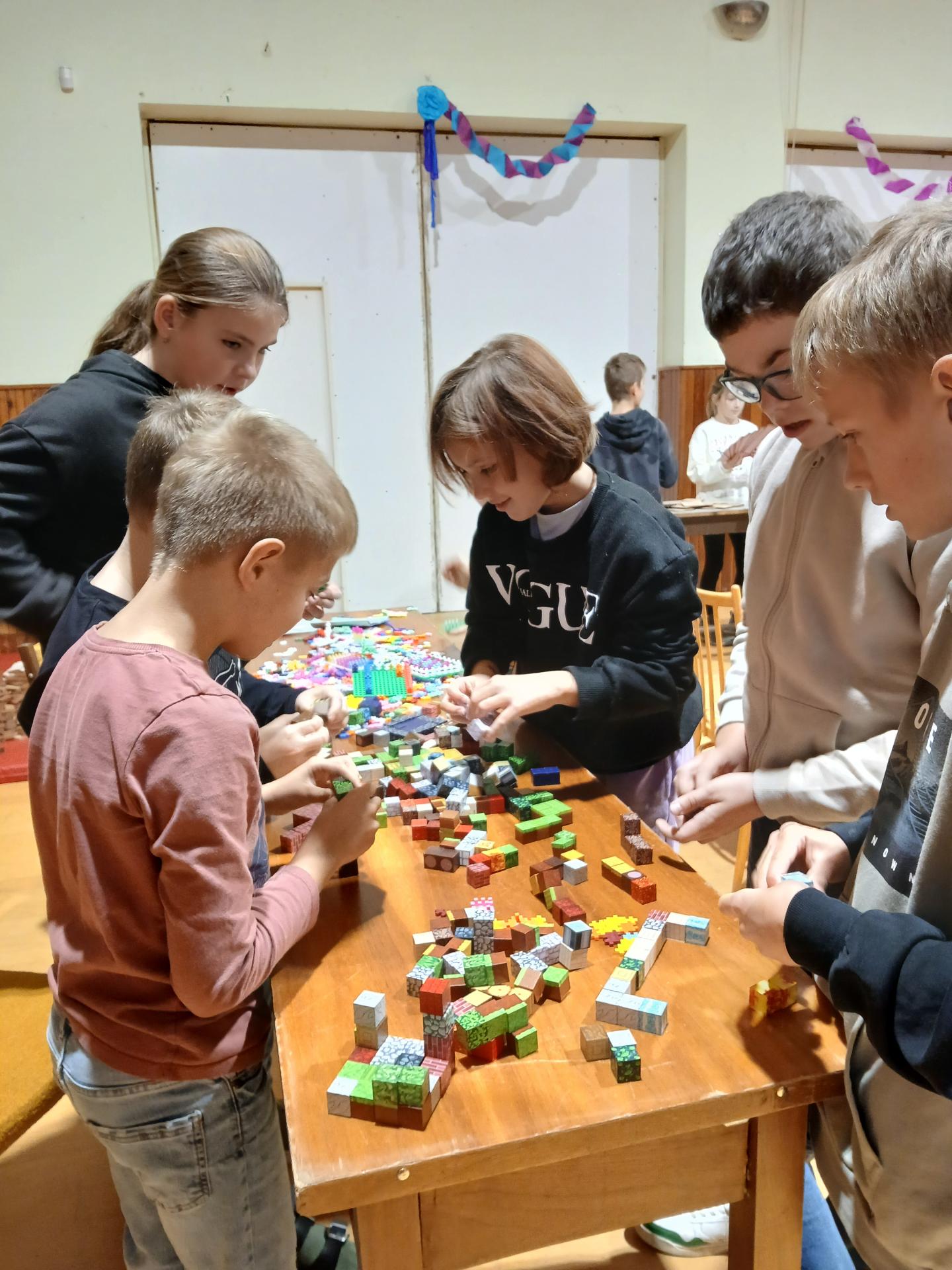 Sokolovna se proměnila v obří dětskou hernu. Na stolech a několika žíněnkách byly nachystány sady stavebnic, her a hlavolamy. Nejprve prostor navštívily školy z Heršpic, Kobeřic, pak Nížkovice a odpoledne jste měli i vy, dospělí, možnost pohrát si se svými dětmi. Určitě jste si posdíleli, co se vám nejvíce líbilo.