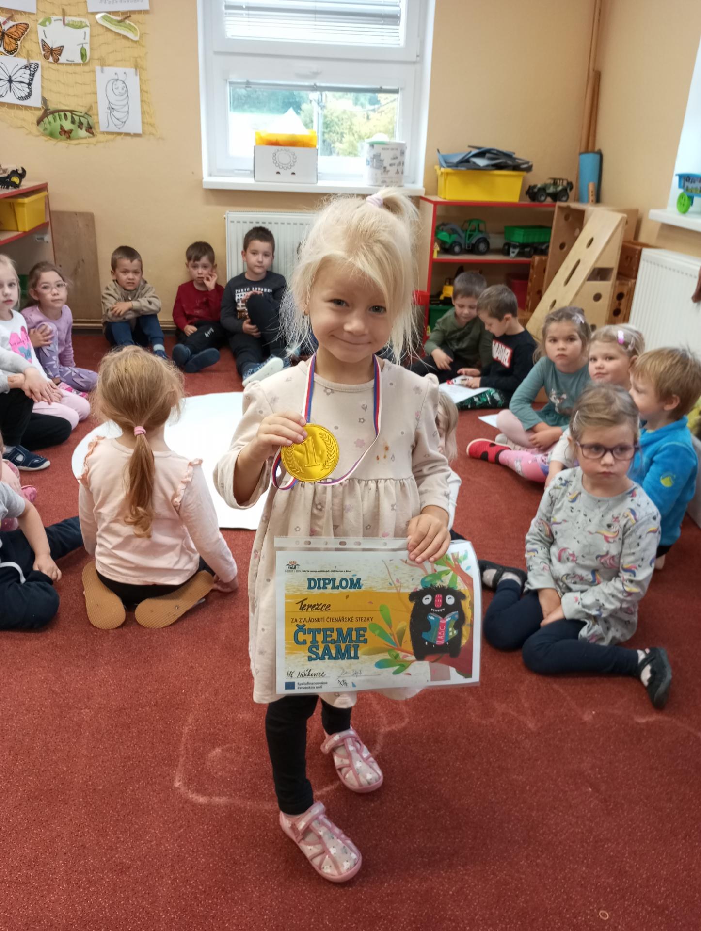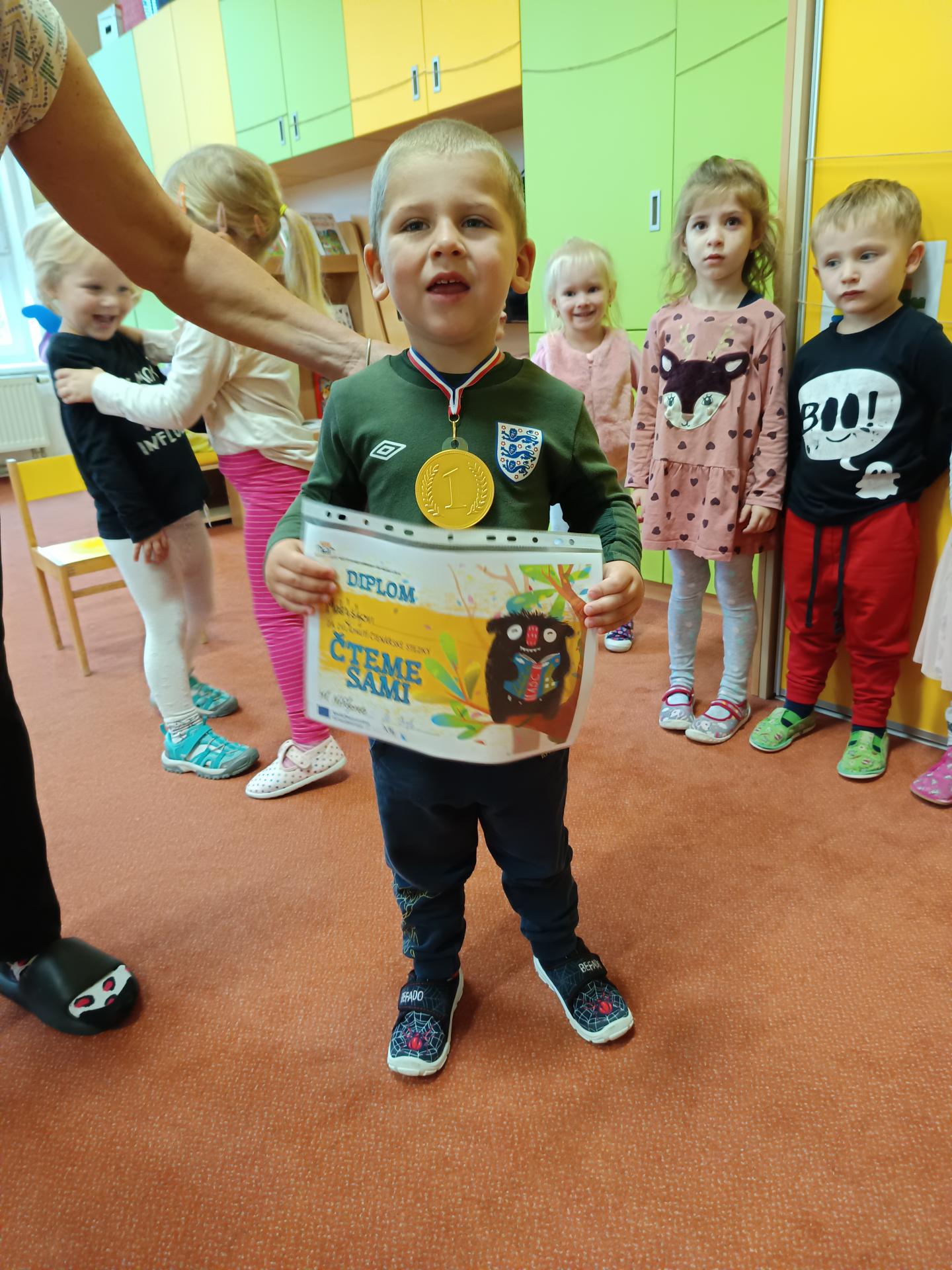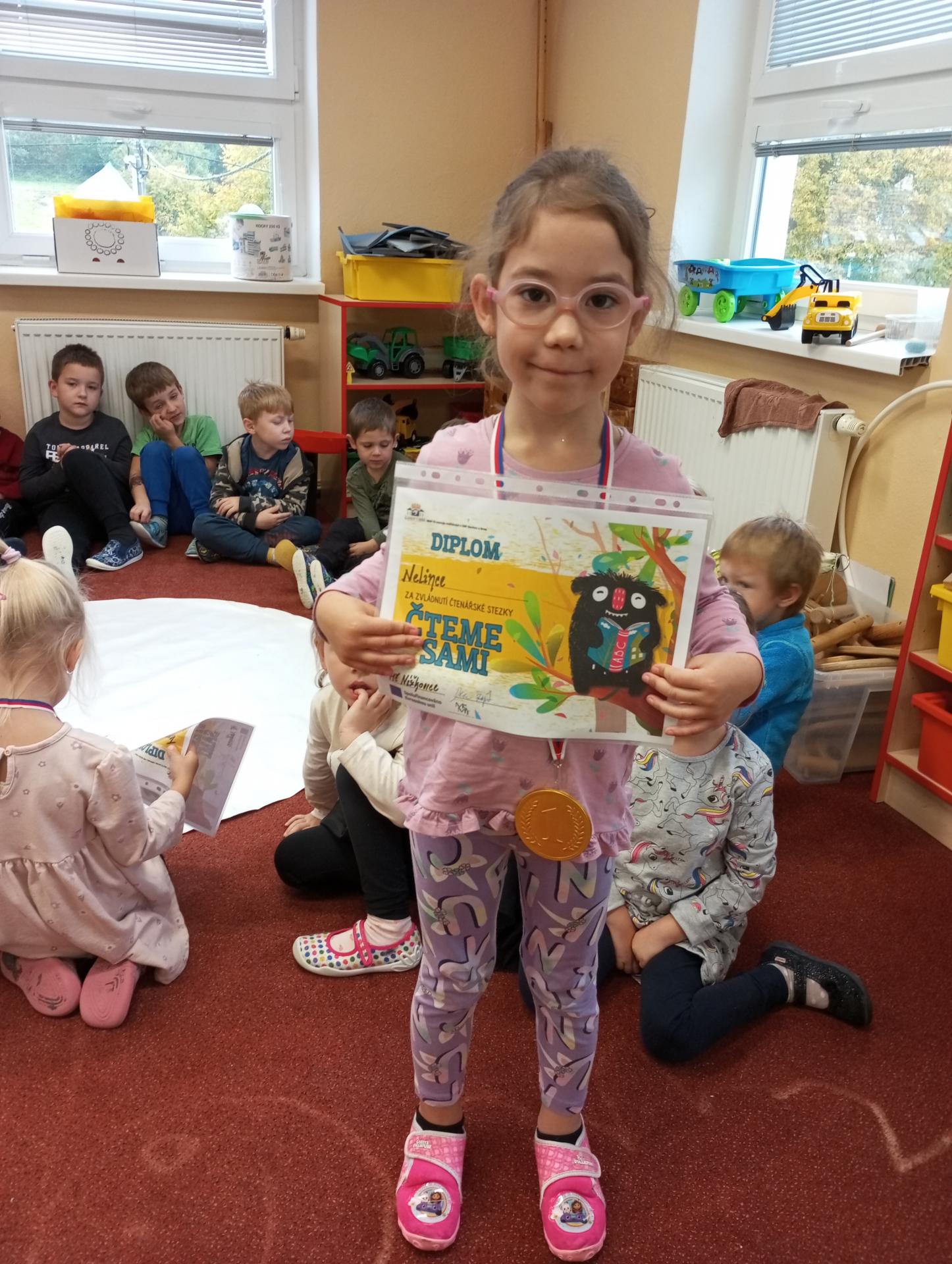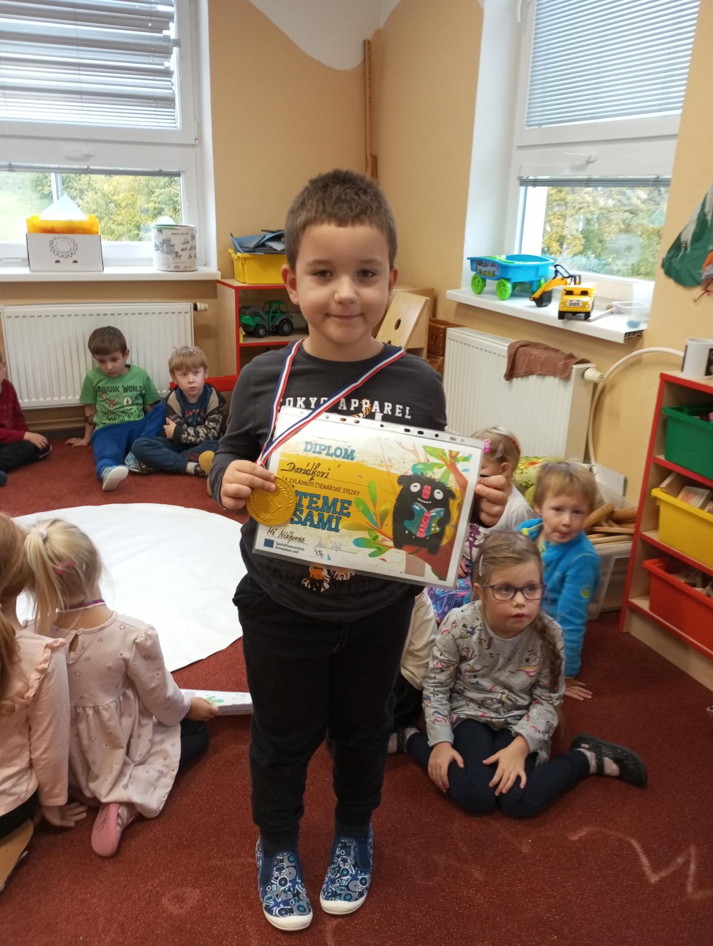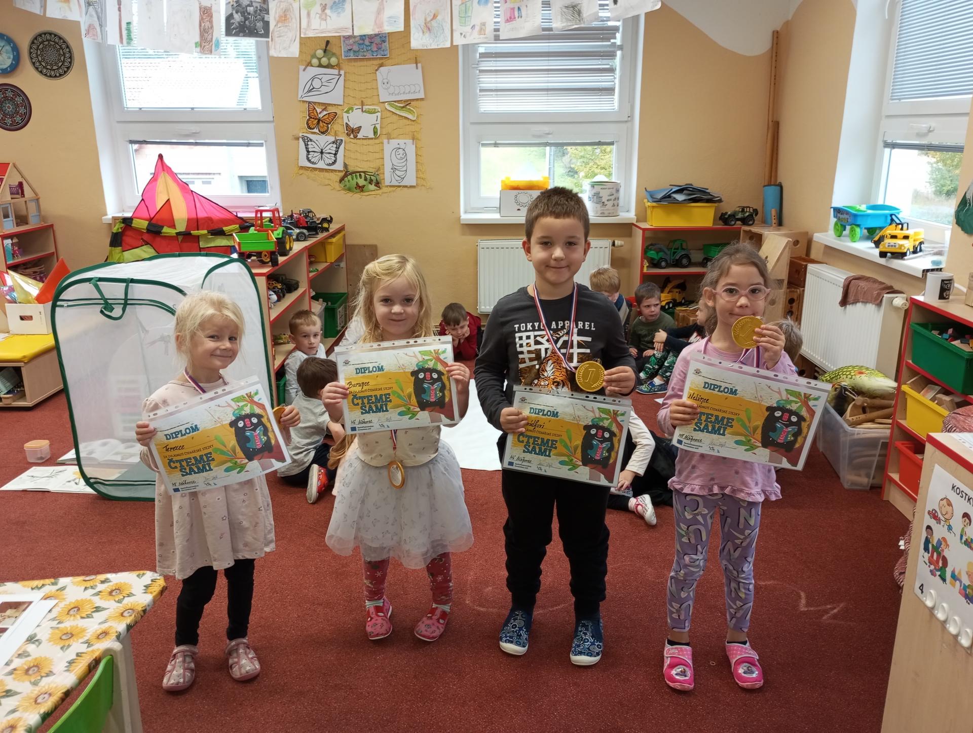 Kartičky na odpovědi, které byly nachystány u vchodových dveří, děti s rodiči odevzdávali po vyplnění ve svých třídách. Jako odměnu za splnění úkolů dostaly děti diplom a medaili.