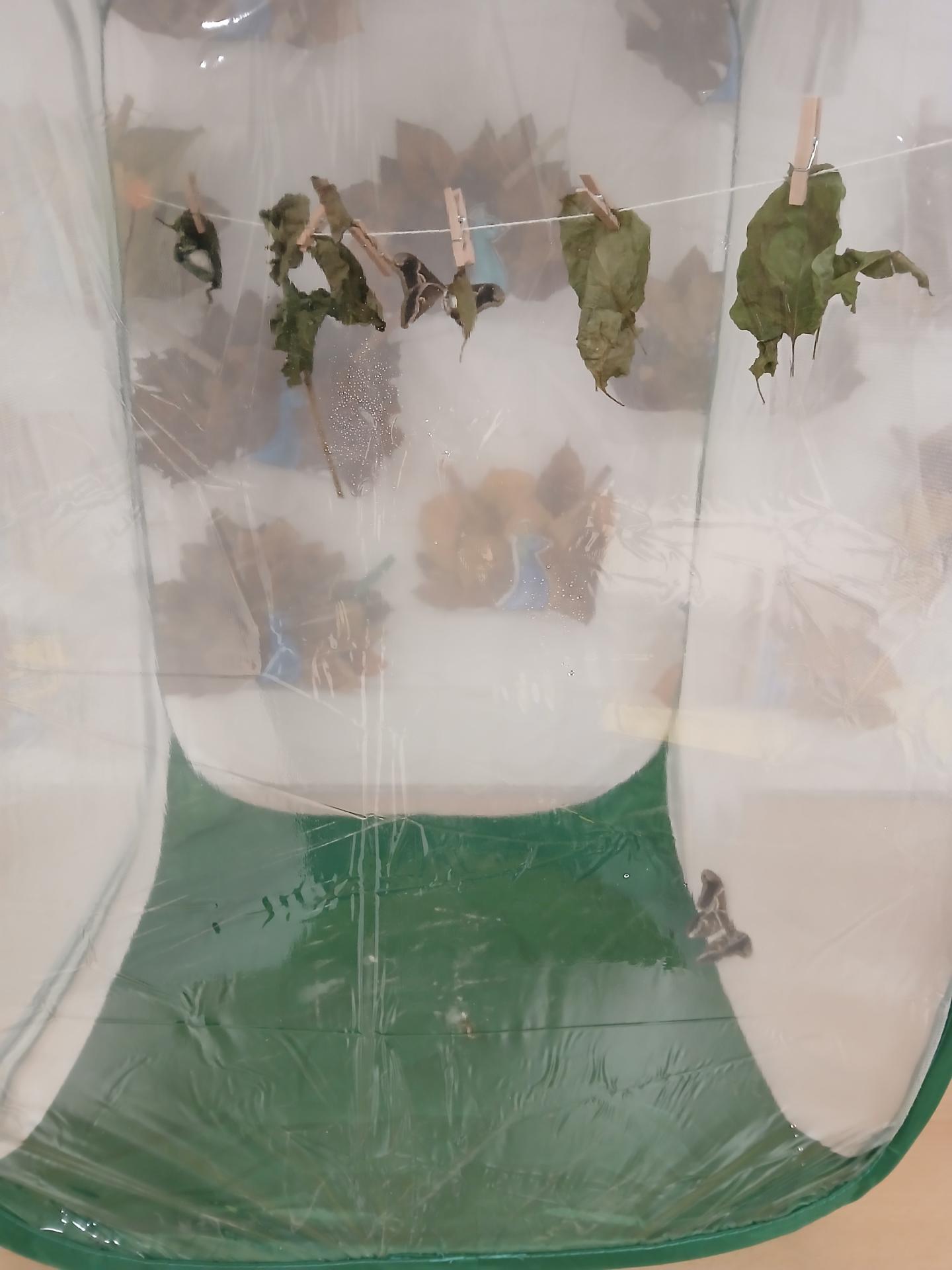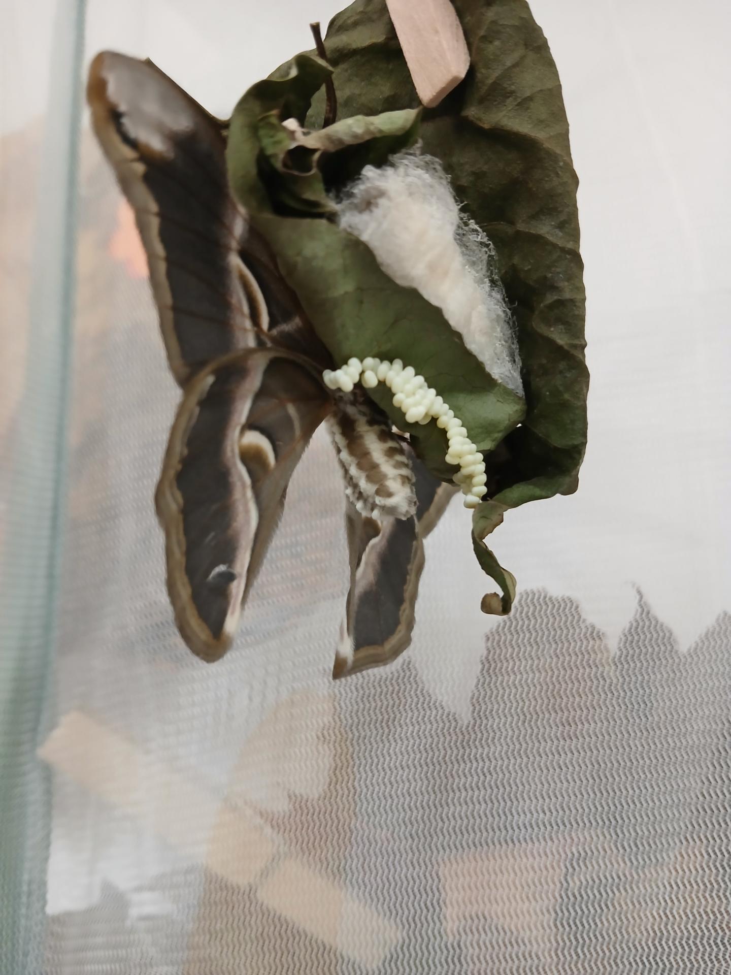 Housenky od Vladěnky se zakuklily a vylíhli se z nich krásné můry. Měli jsme to štěstí, že se vylíhly páry, a tak samičky mohly naklást vajíčka. Co z nich bude?