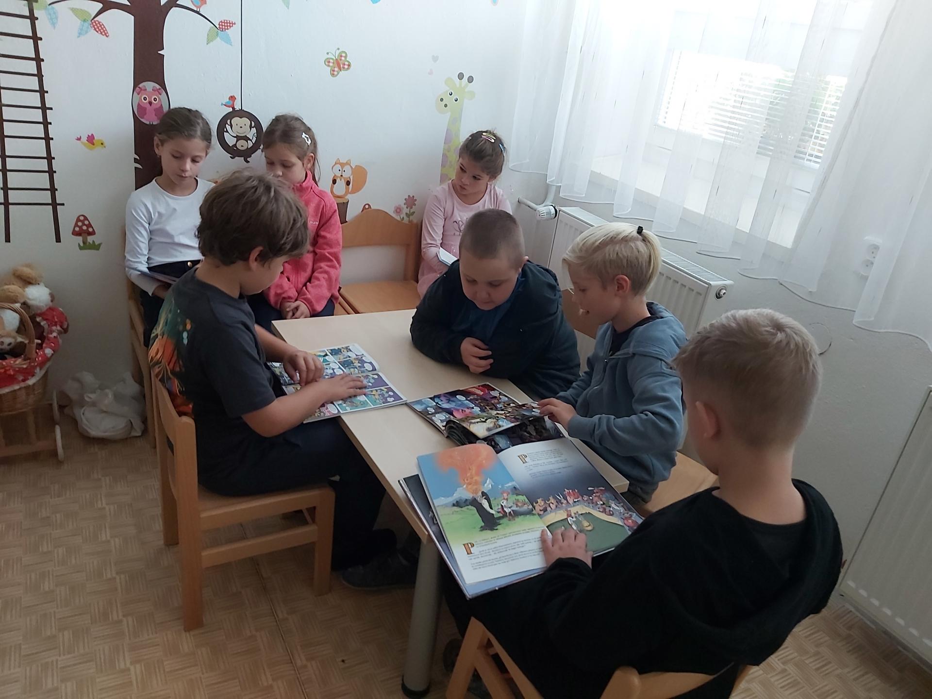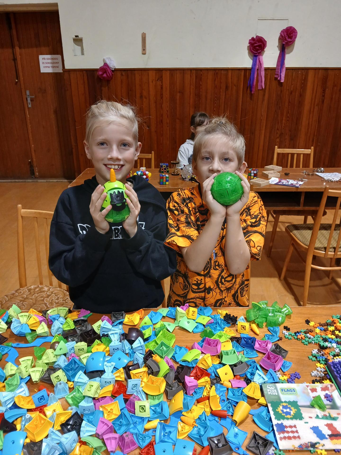 Živel VZDUCH provází i družinu, a to v pokusech i hrách - nafouknutí balónku oxidem uhličitým, parašutisté a "do vody/na vzduch". Jablíčkový projekt prvního ročníku jsme zakončili zanesením jablíček zvířátkům do lesa. Navštívili jsme mini festival IQ play mini. Začali jsme opět chodit do knihovny.