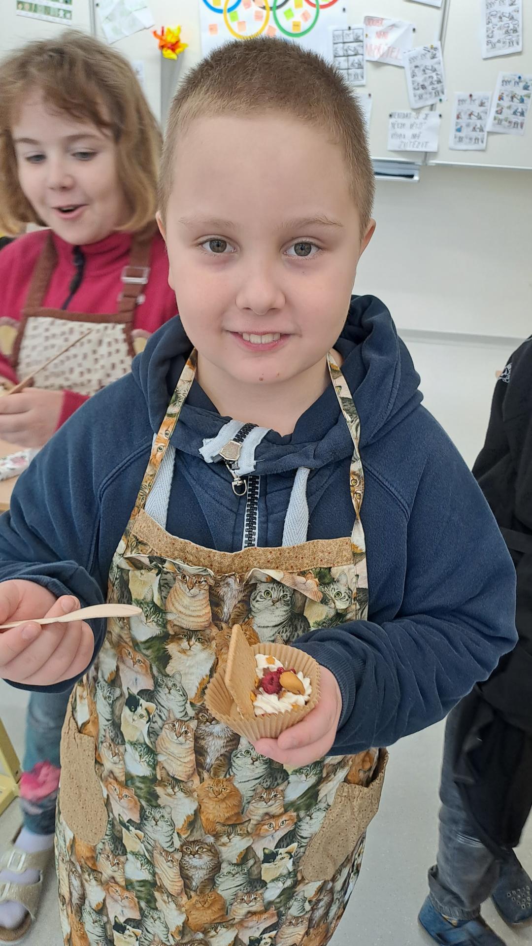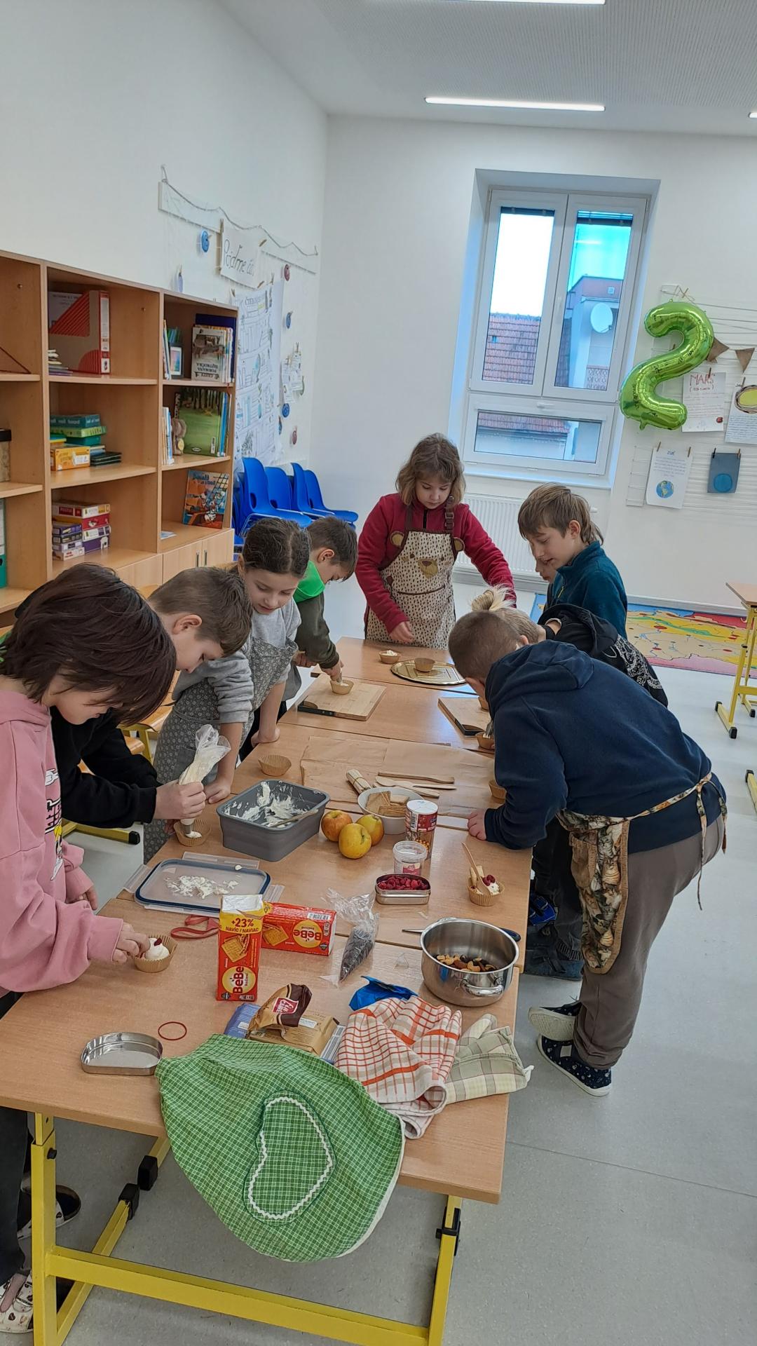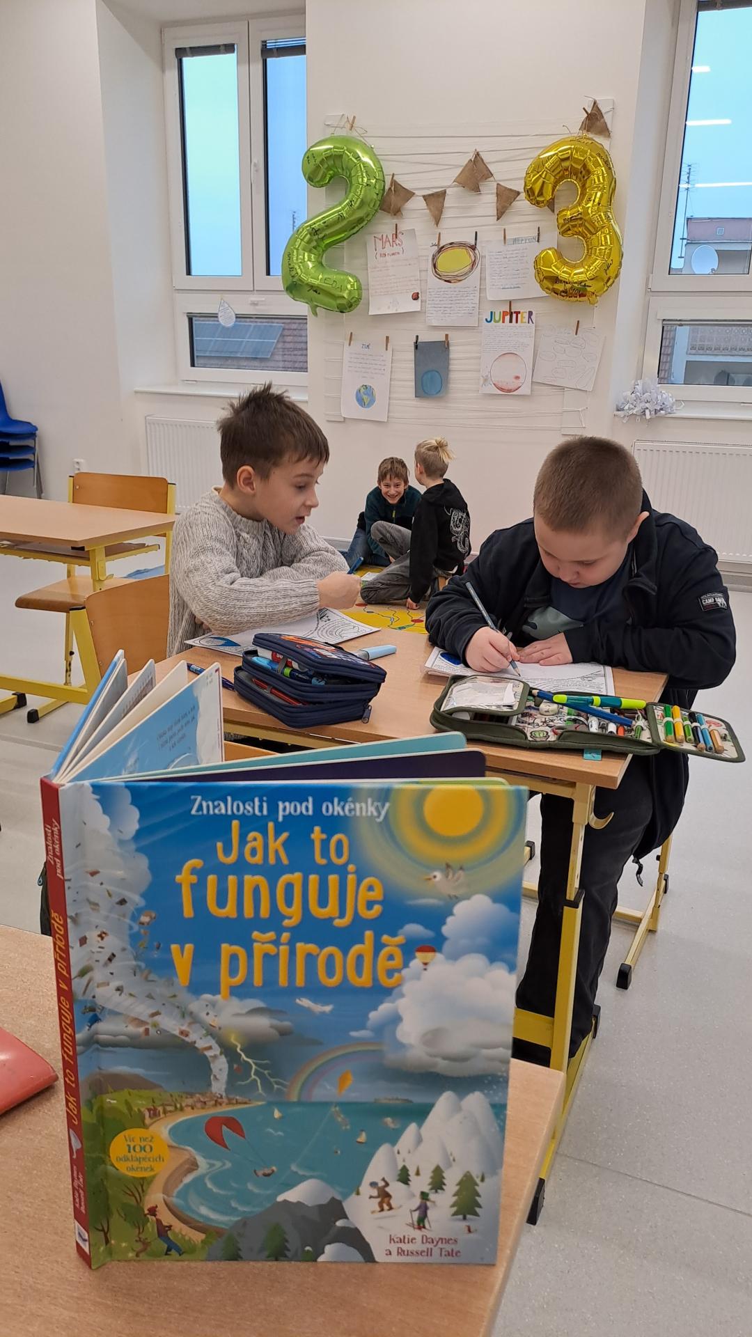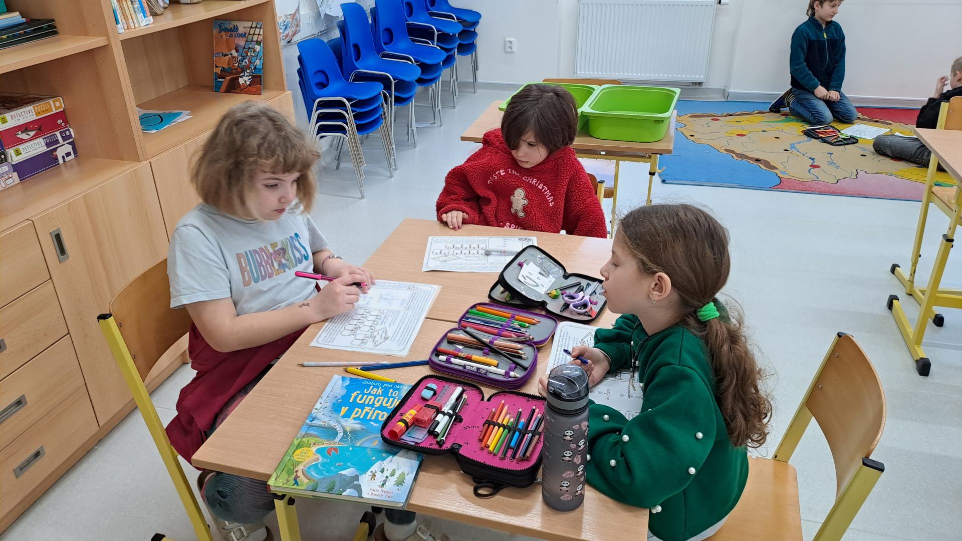 V úterý jsme společně zhlédli film Krakonoš a lyžníci, který nás zavedl do malebné sněhové atmosféry v Krkonoších. Viděli jsme počátky lyžování ve vysokém sněhu, sáňkování i koulování. Zimní sporty na sněhu i na ledu, práce v 5 smíšených skupinách, významní sportovci, jejich úspěchy, živé fotografie i prezentace plakátů nás provázeli celým dopolednem.