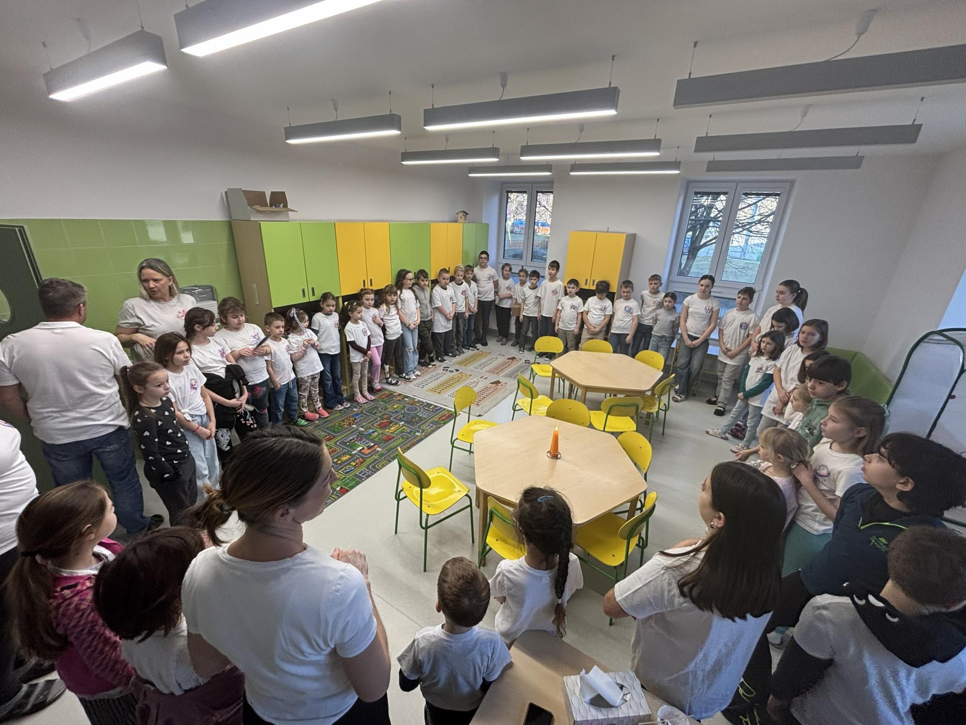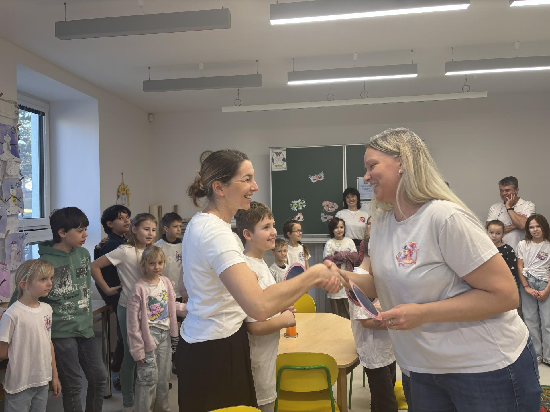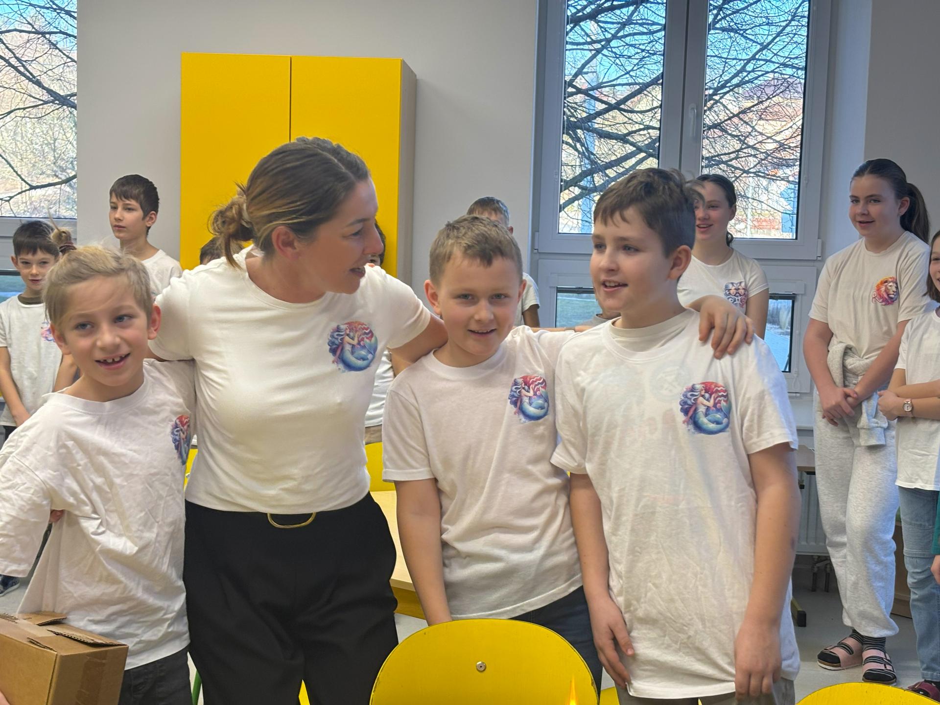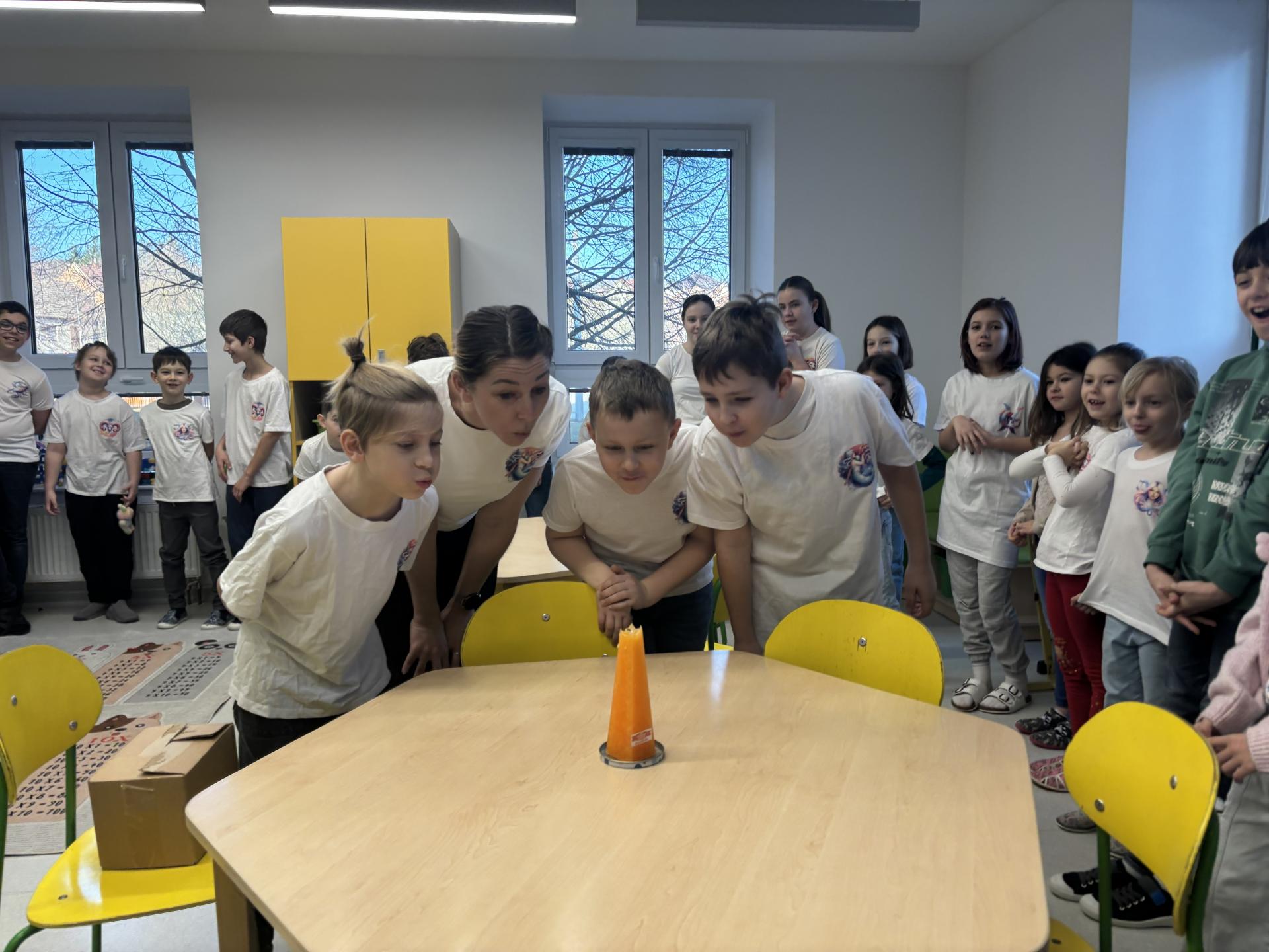 Ti slavili svoje narozeniny, a tak jsme si pomyslně přiťukli na jejich zdraví. Tobík, Denisek, Tomášek a paní učitelka Lucka si sfoukli narozeninovou svíčku, a pak už následovali gratulace od ostatních spolužáků.