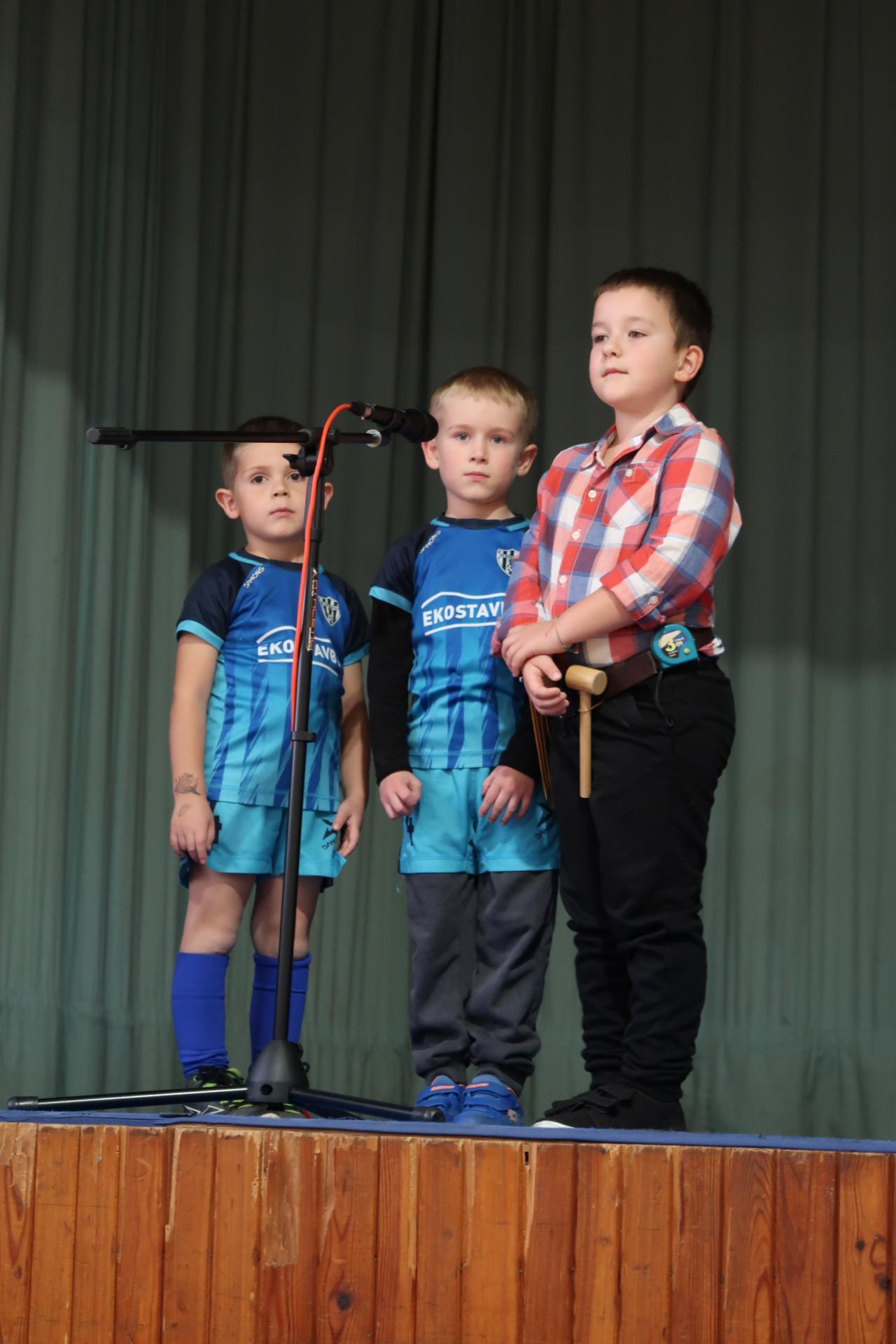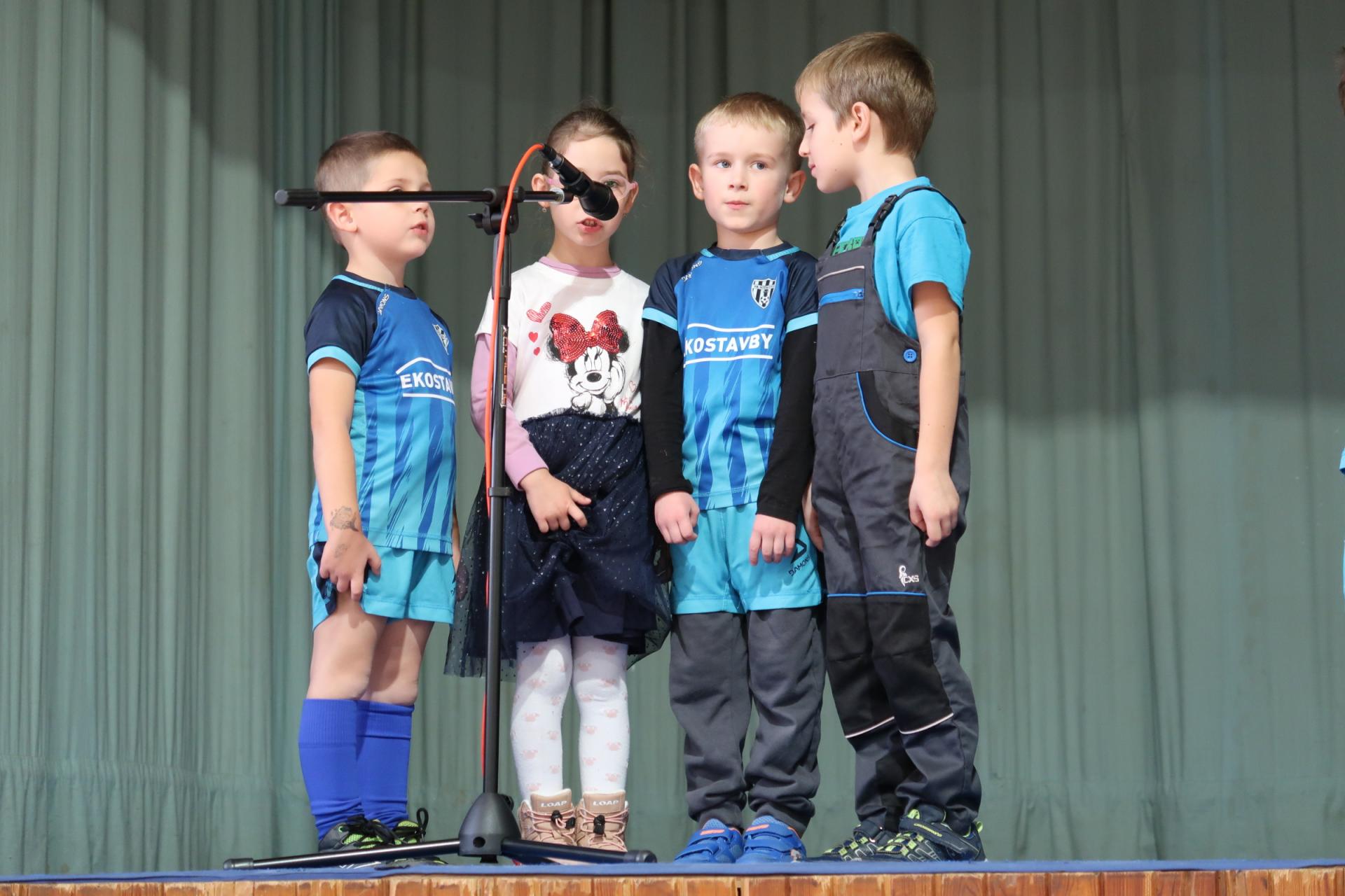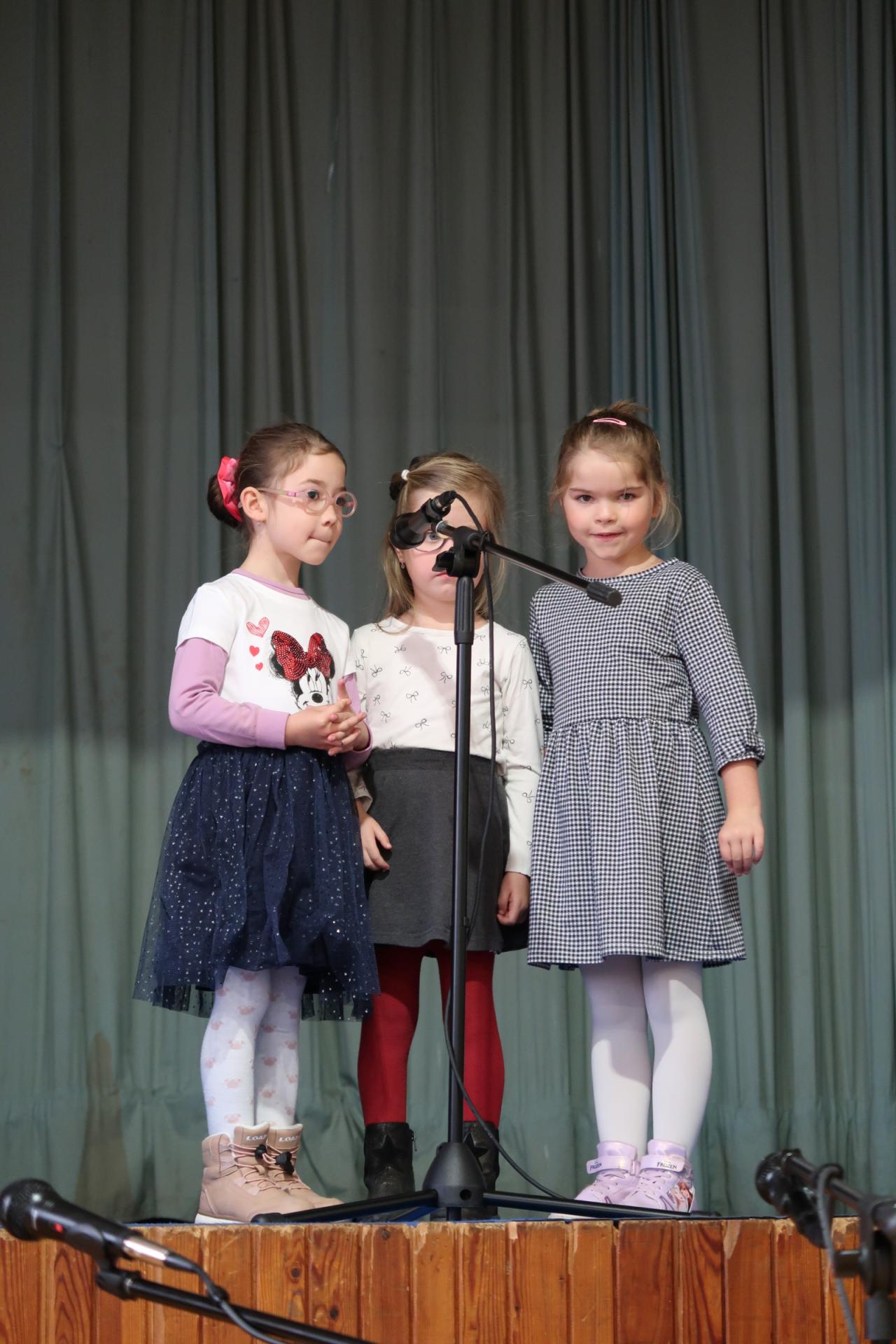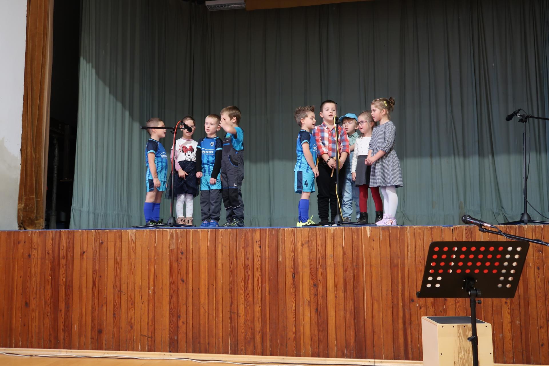 Mateřáčci vystoupili s pásmem povolání. Zarecitovali několik básniček a potěšili všechny přítomné písničkami Dělání, dělání a Ten dělá to a ten zas tohle.... Za svůj výkon sklidili velký potlesk.