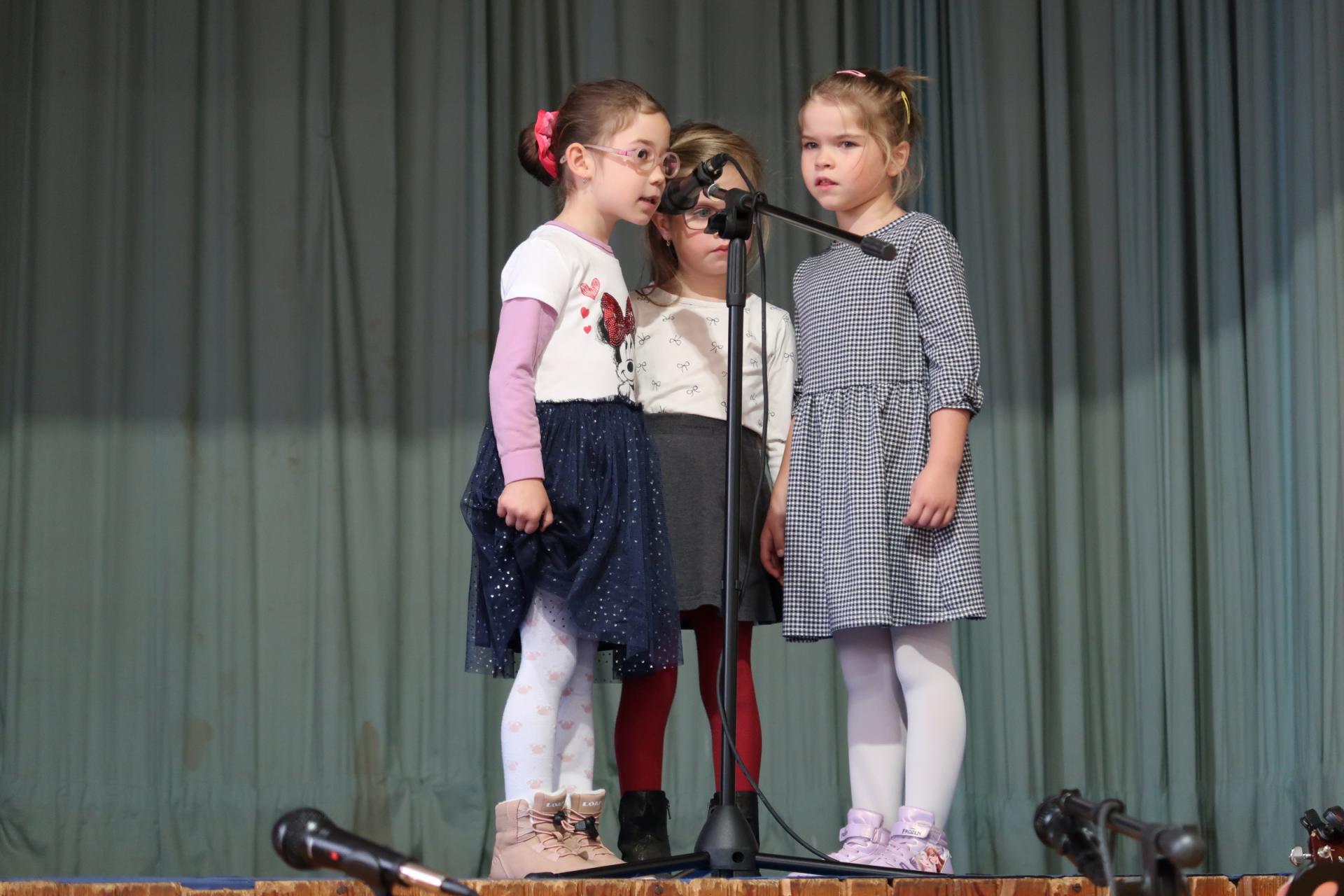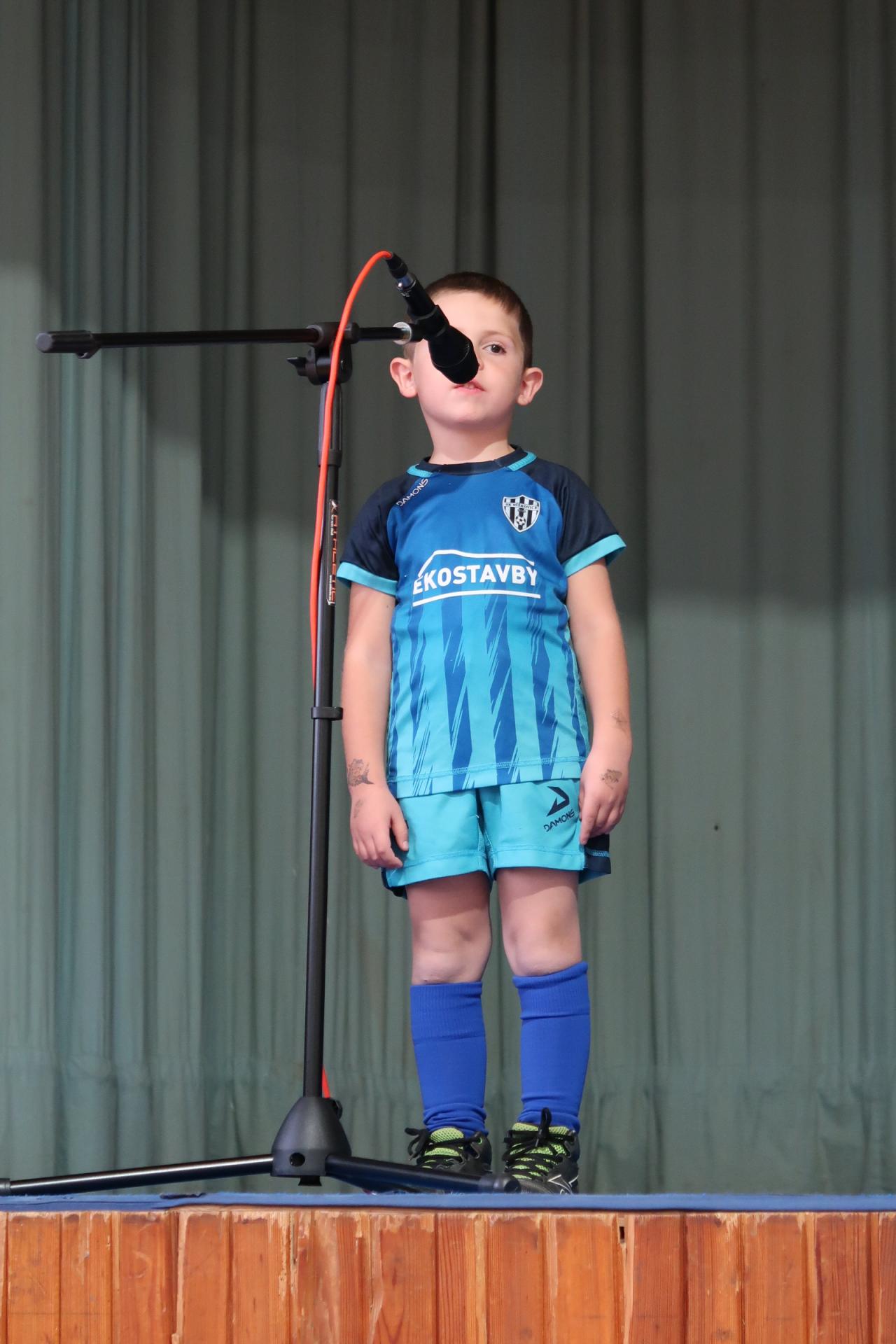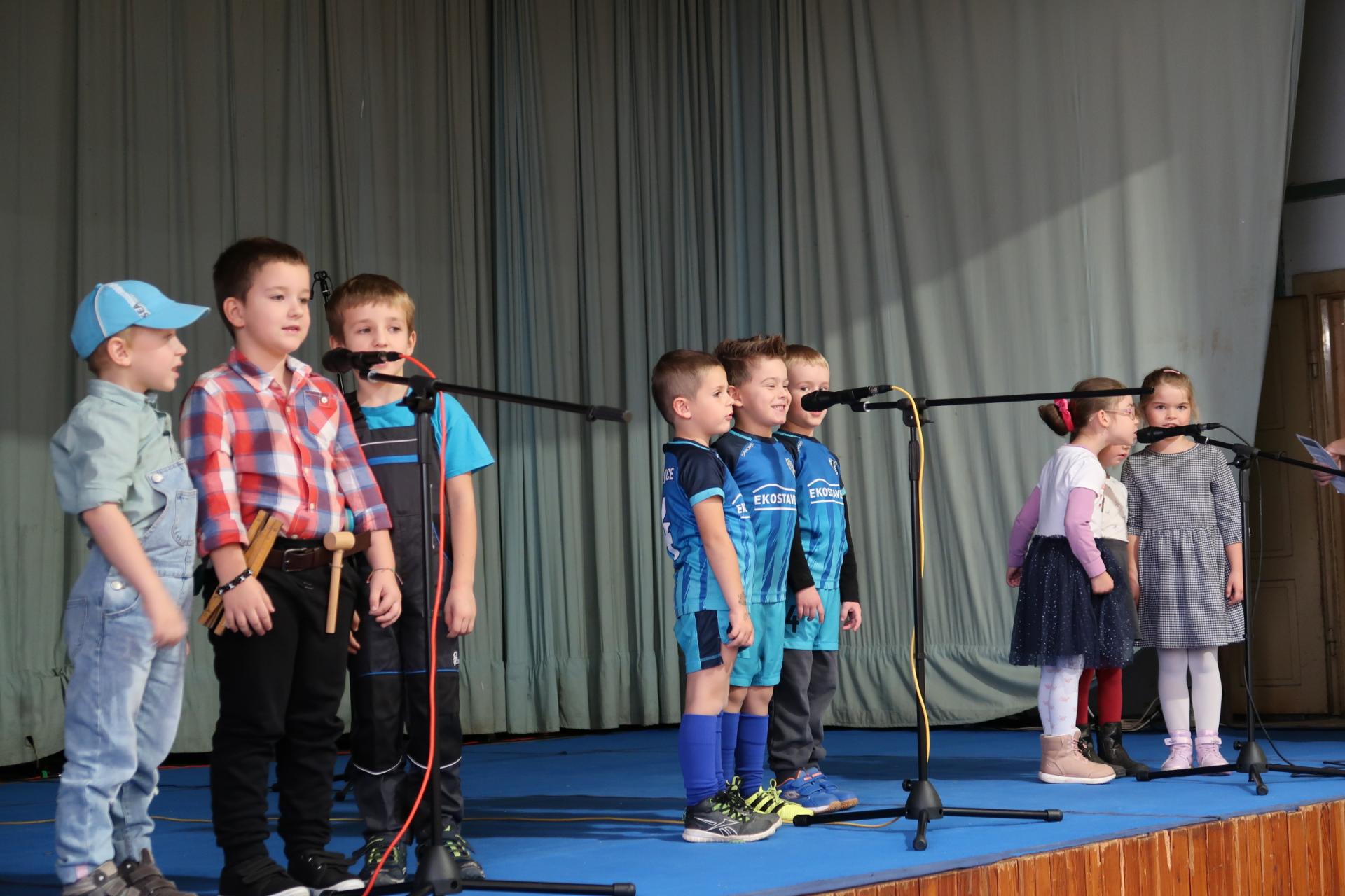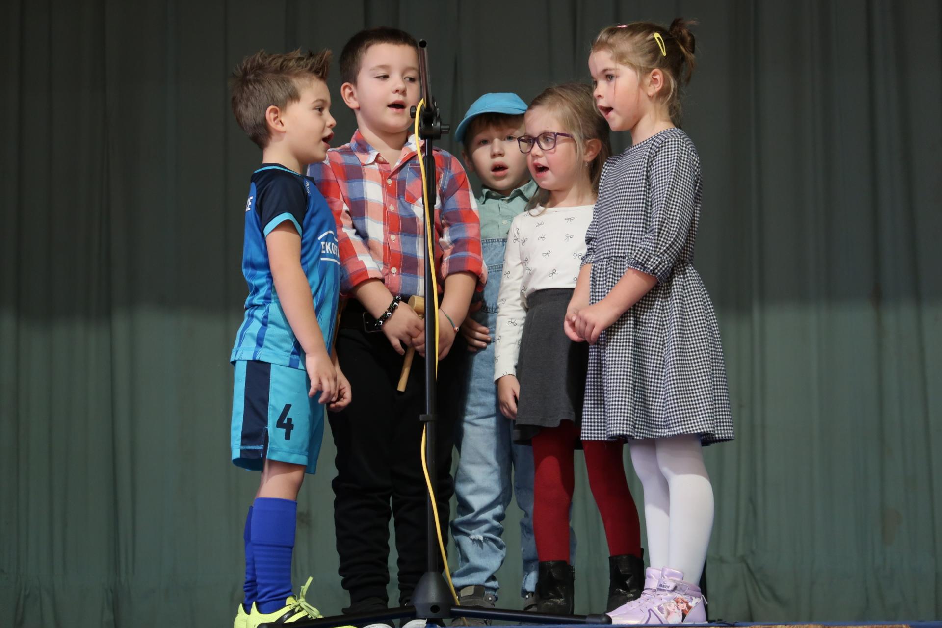 Mateřáčci vystoupili s pásmem povolání. Zarecitovali několik básniček a potěšili všechny přítomné písničkami Dělání, dělání a Ten dělá to a ten zas tohle.... Za svůj výkon sklidili velký potlesk.