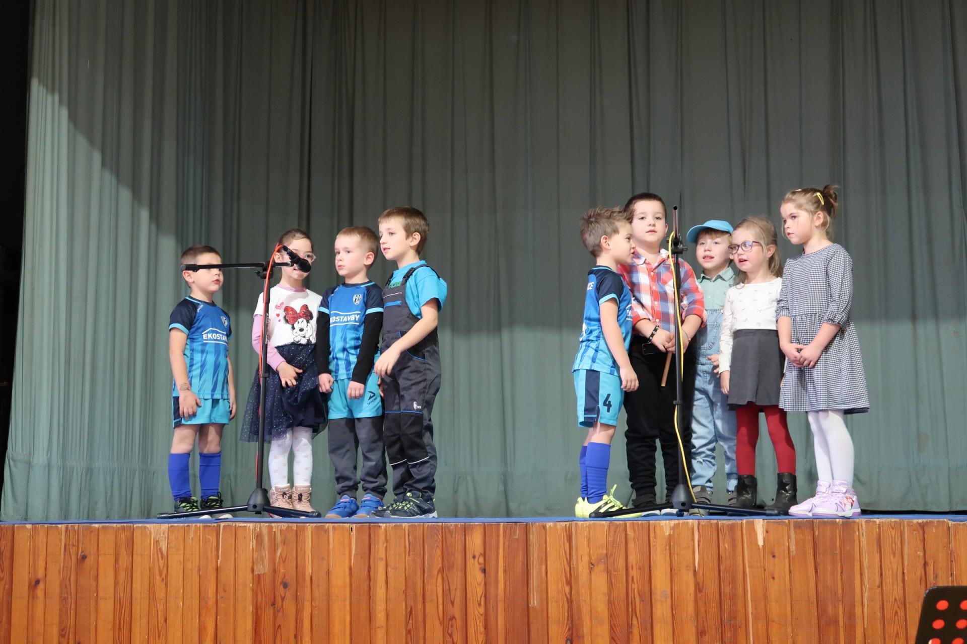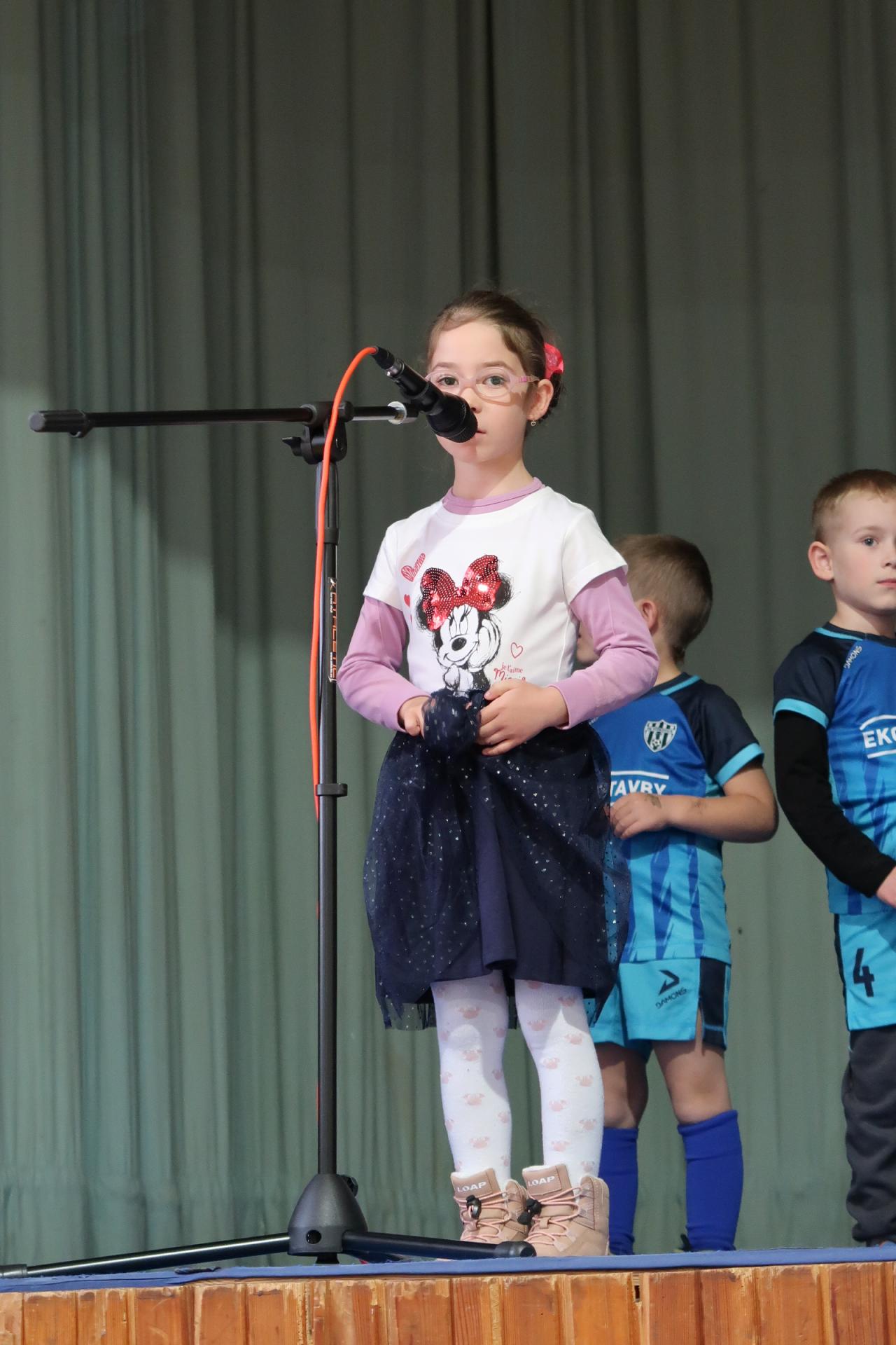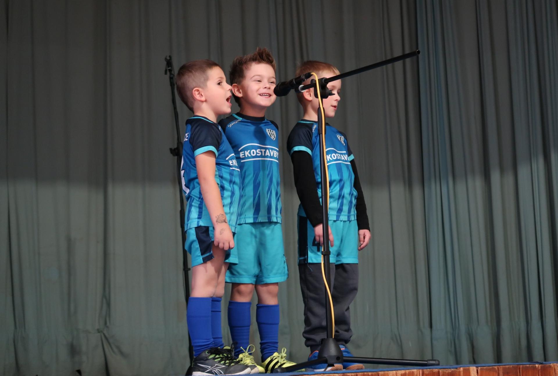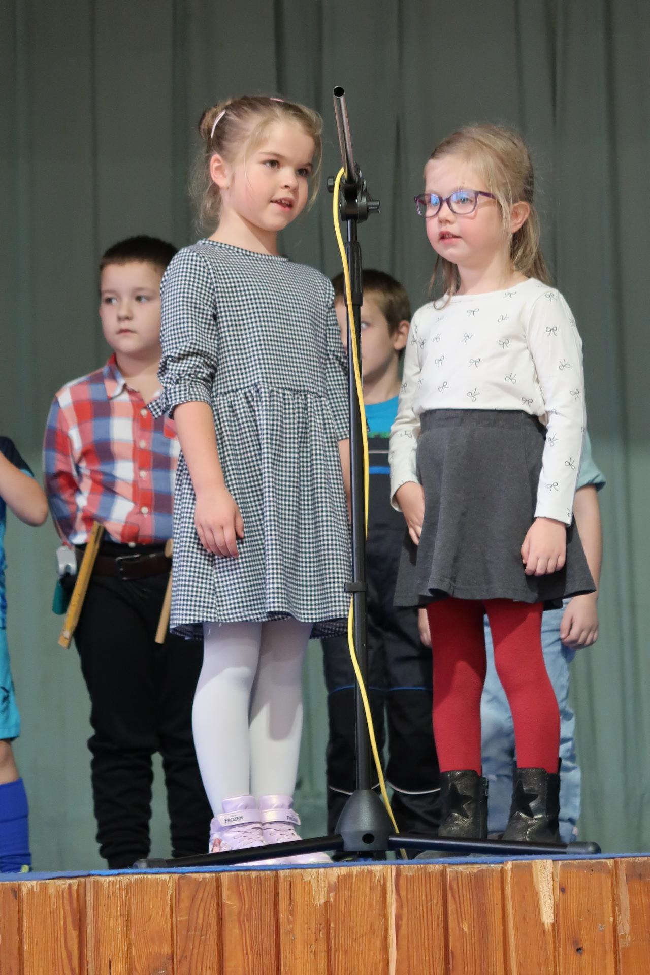 Mateřáčci vystoupili s pásmem povolání. Zarecitovali několik básniček a potěšili všechny přítomné písničkami Dělání, dělání a Ten dělá to a ten zas tohle.... Za svůj výkon sklidili velký potlesk.