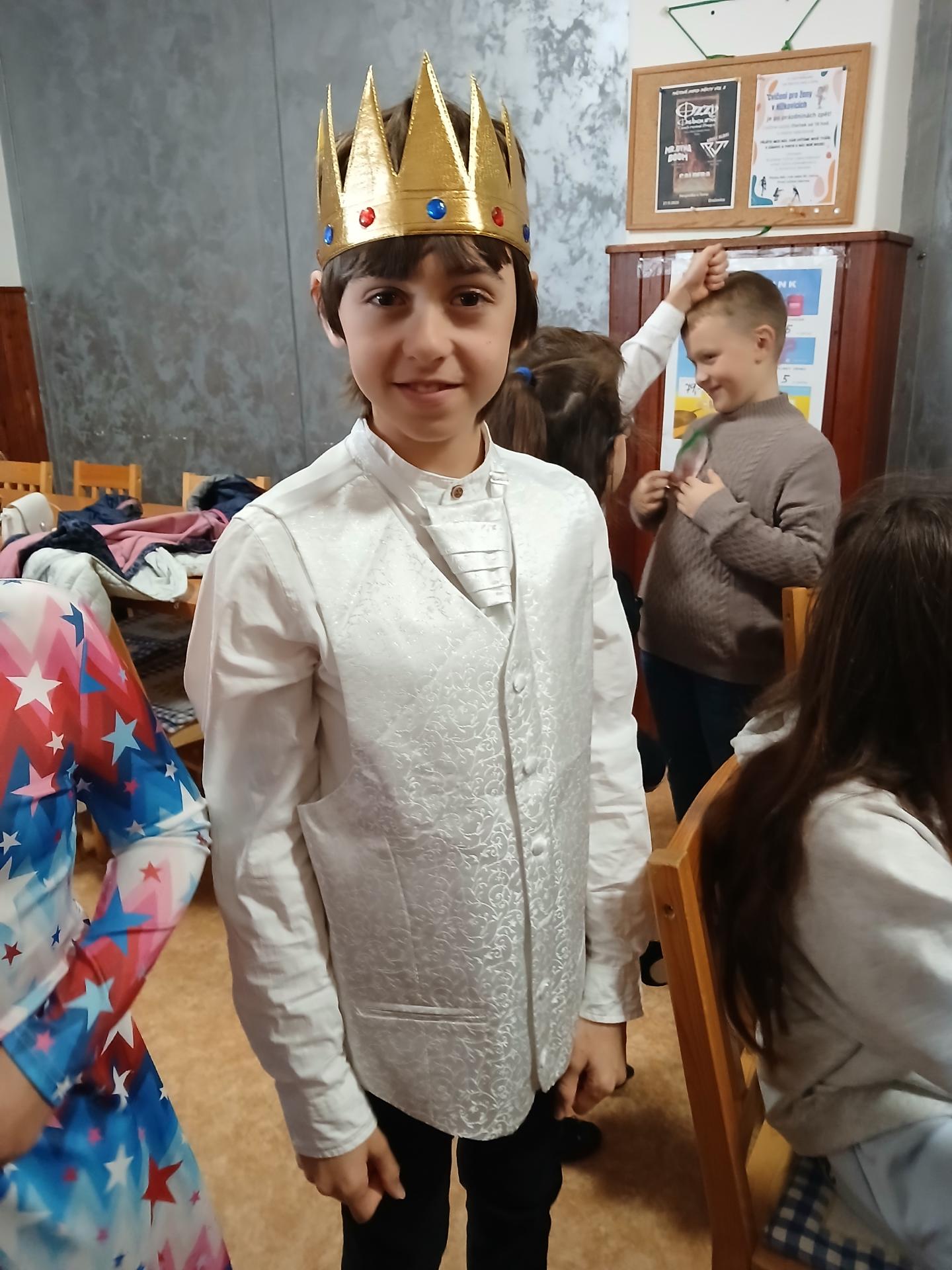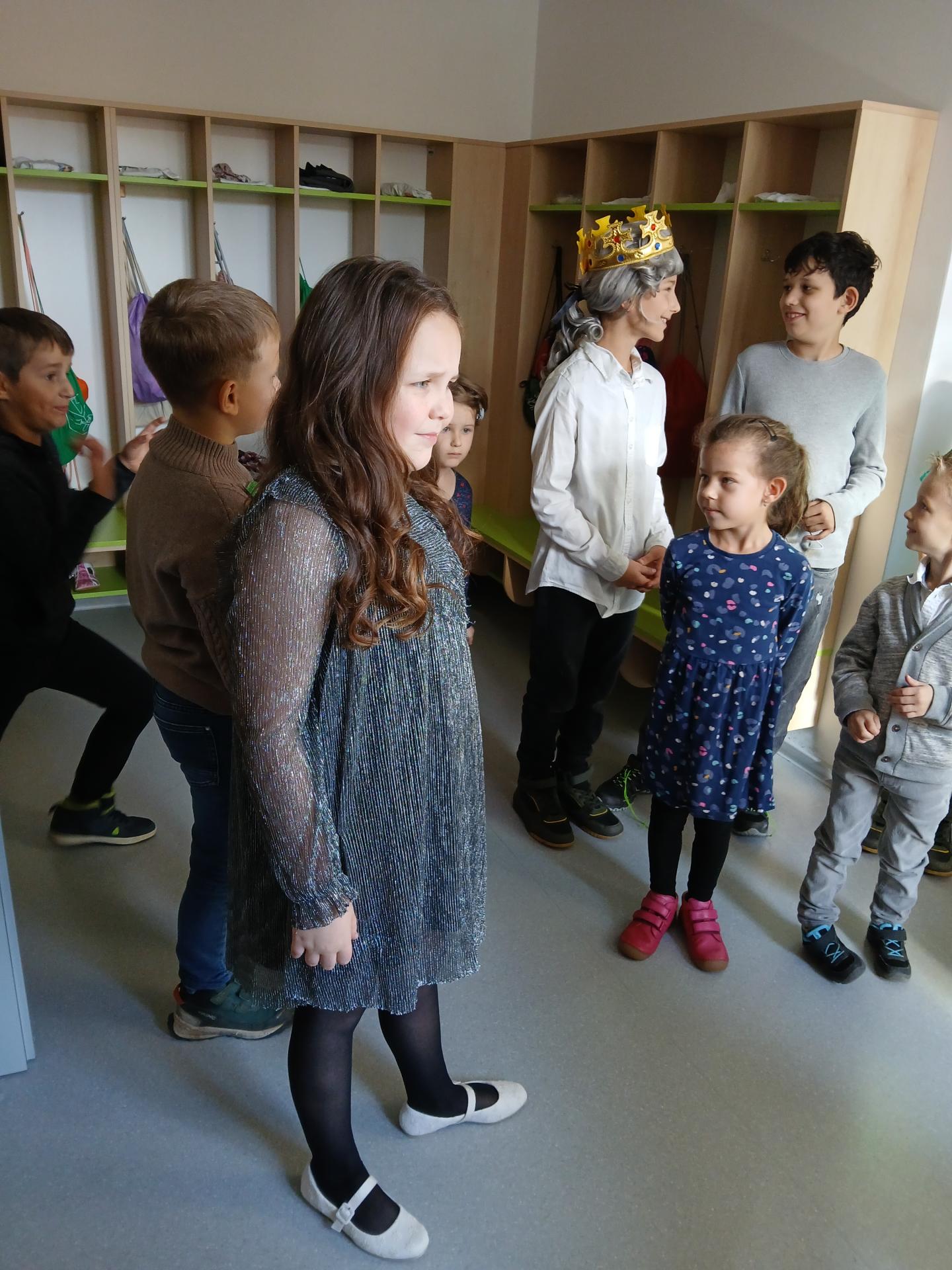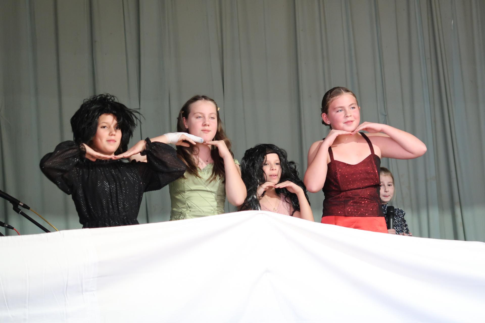 Po písničce přišla na řadu pohádka o Popelince v podání starších žáků. A že to nebyla jen tak ledajaká Popelka! Vystoupil moudrý král, princ okouzlující (hlavně sám sebou), zlé sestry s macechou, víla, krááásné šaty, střevíčky, oříšky, holubi, skromná popelka a na scéně se objevila i kukuřička s hráškem, kteří si kradli pozornost a s hrdostí hlásili, kdo je chutnější. Když vše skončilo sborovým „OK!“, měli jsme jasno – kouzla se dějí i bez hůlky, stačí trocha nadhledu a parta dětí, která si to prostě užívá.