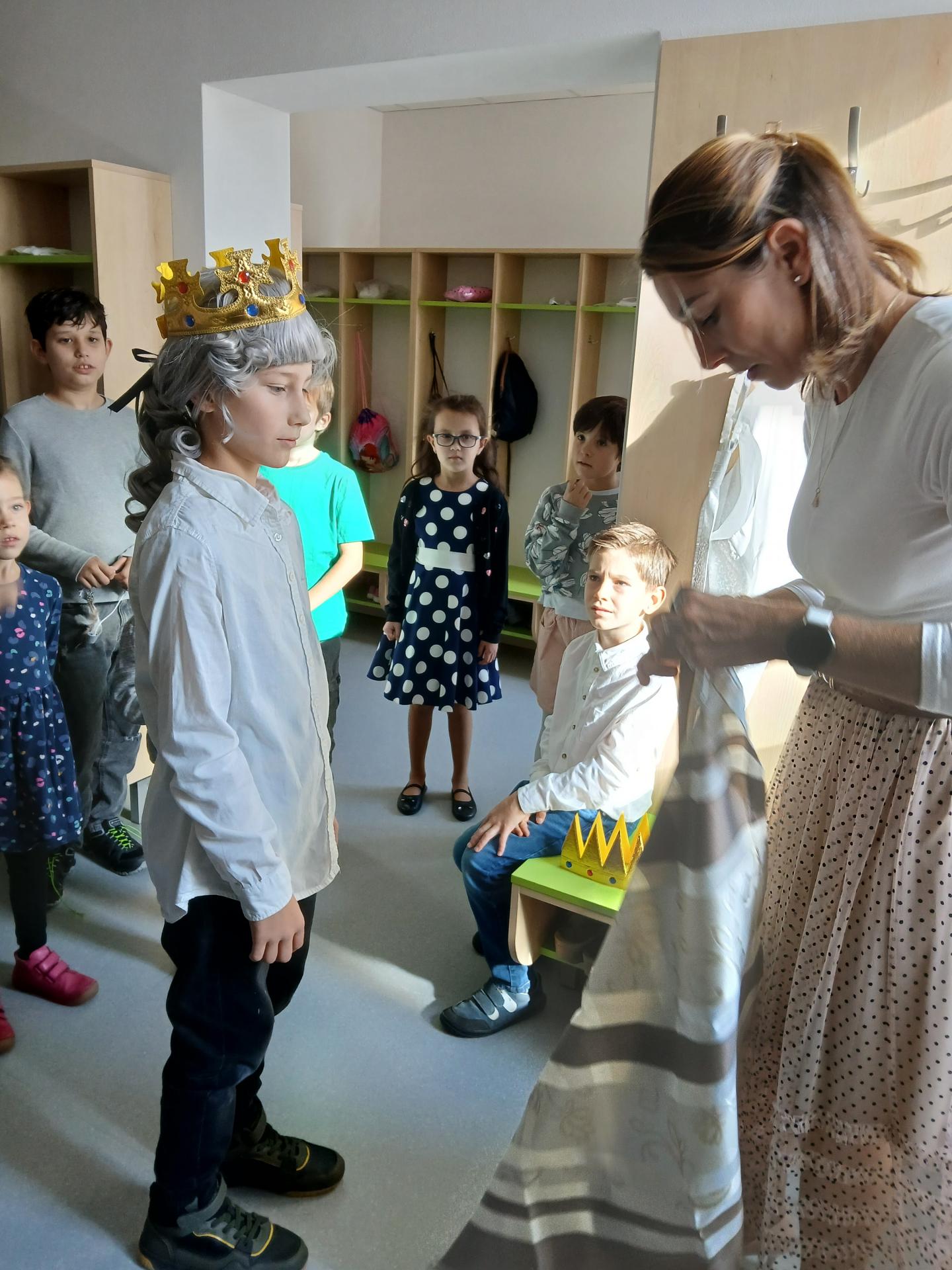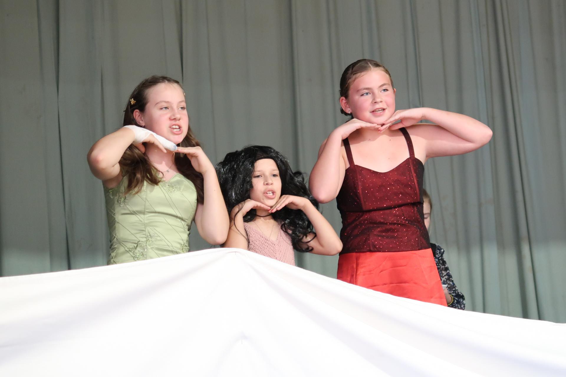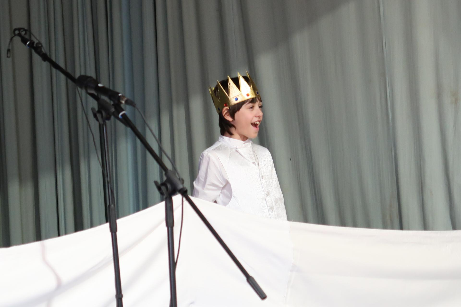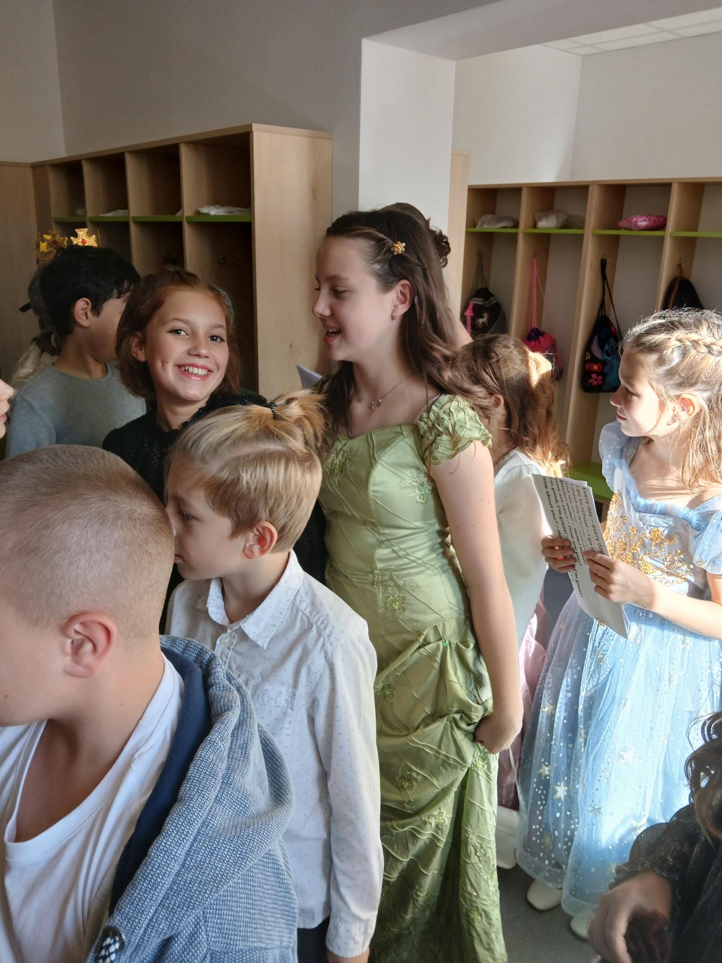 Po písničce přišla na řadu pohádka o Popelince v podání starších žáků. A že to nebyla jen tak ledajaká Popelka! Vystoupil moudrý král, princ okouzlující (hlavně sám sebou), zlé sestry s macechou, víla, krááásné šaty, střevíčky, oříšky, holubi, skromná popelka a na scéně se objevila i kukuřička s hráškem, kteří si kradli pozornost a s hrdostí hlásili, kdo je chutnější. Když vše skončilo sborovým „OK!“, měli jsme jasno – kouzla se dějí i bez hůlky, stačí trocha nadhledu a parta dětí, která si to prostě užívá.