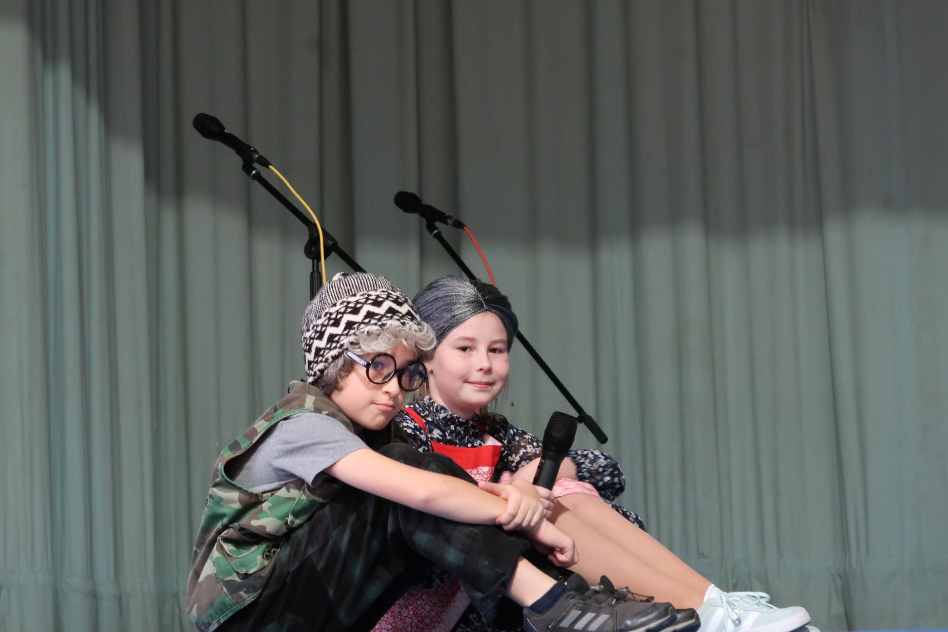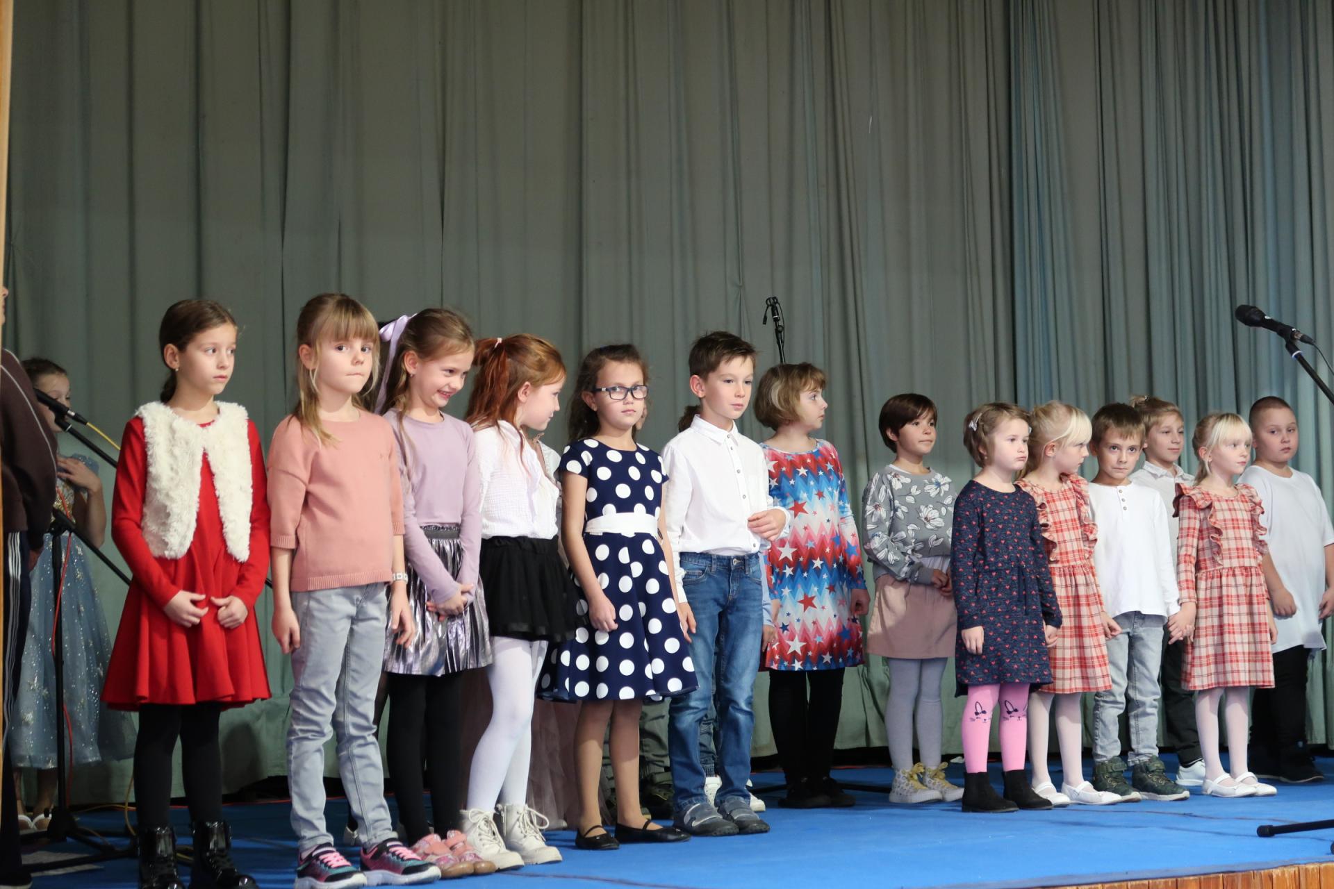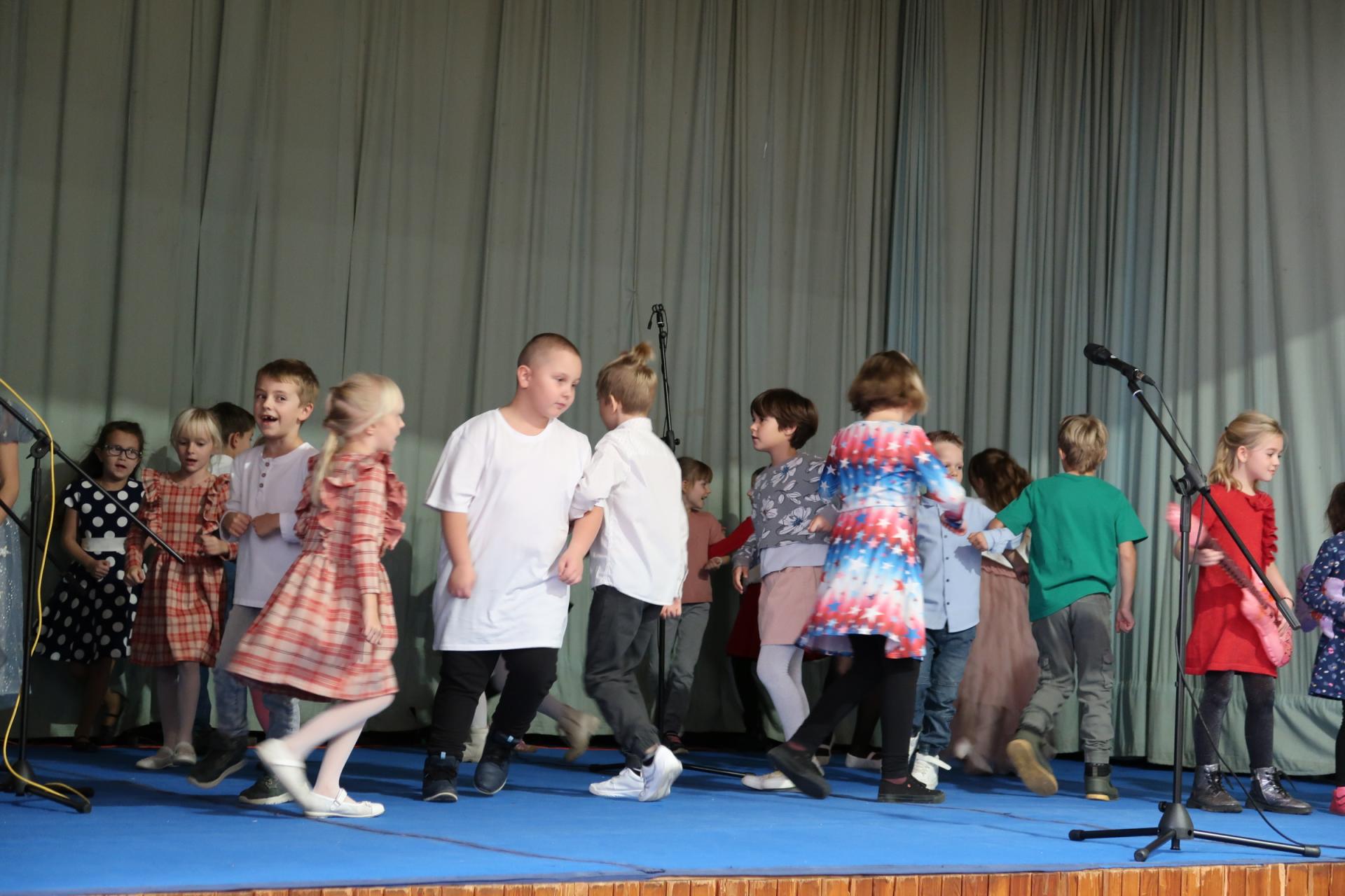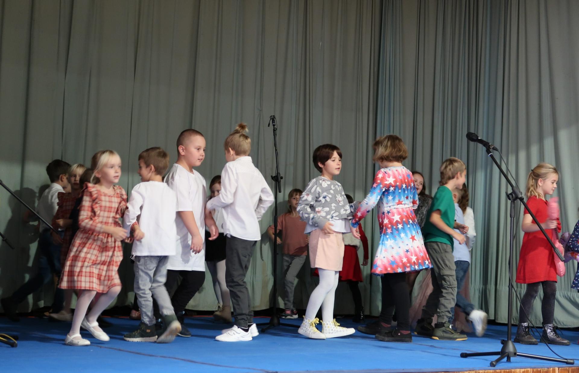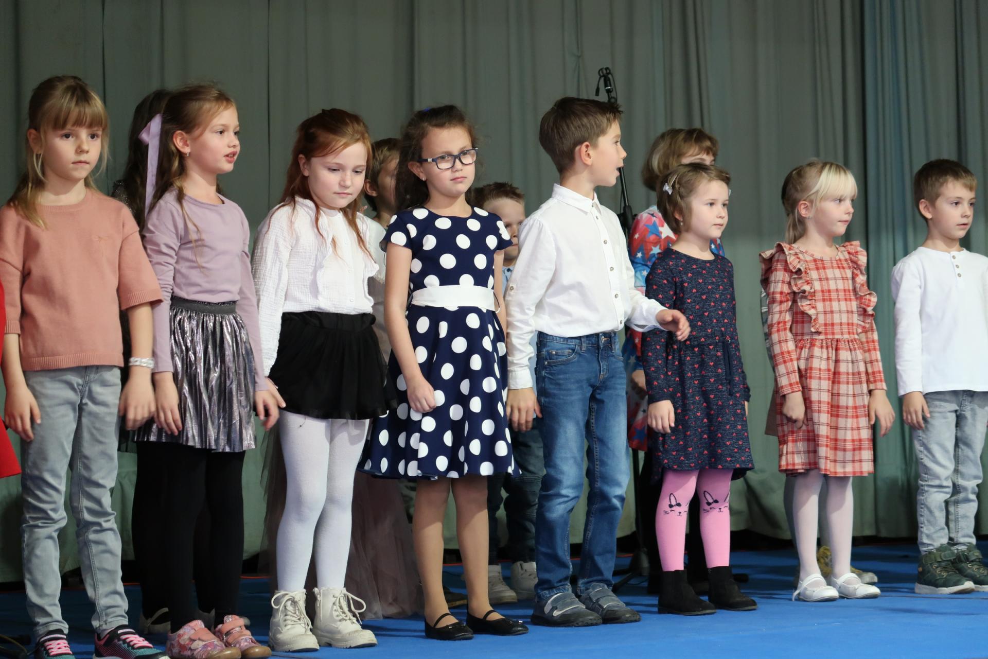 Úvod patřil krátkému scénickému vstupu s babičkou, dědečkem a jejich vnučkou, kteří přivítali hosty a uvedli celý program. Poté následovalo vystoupení našich nejmladších žáků, kteří si pro diváky připravili anglickou písničku „Hello“. Za doprovodu rytmické melodie zpívali o škole, kamarádech a společných hrách. Malí zpěváci a kytaristé rozzářili sál nejen svými hlásky, ale i tancem, úsměvy a nakažlivou radostí.