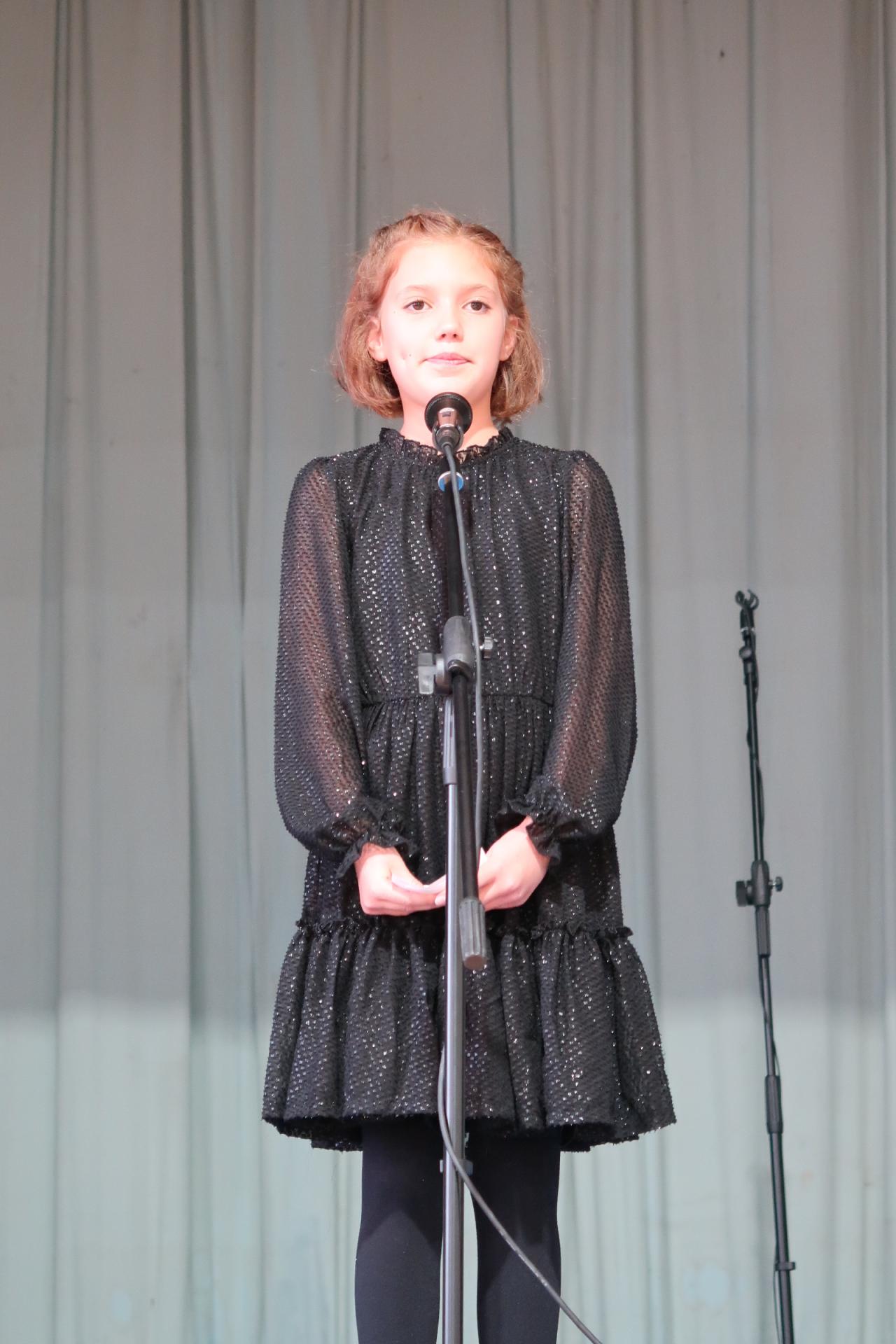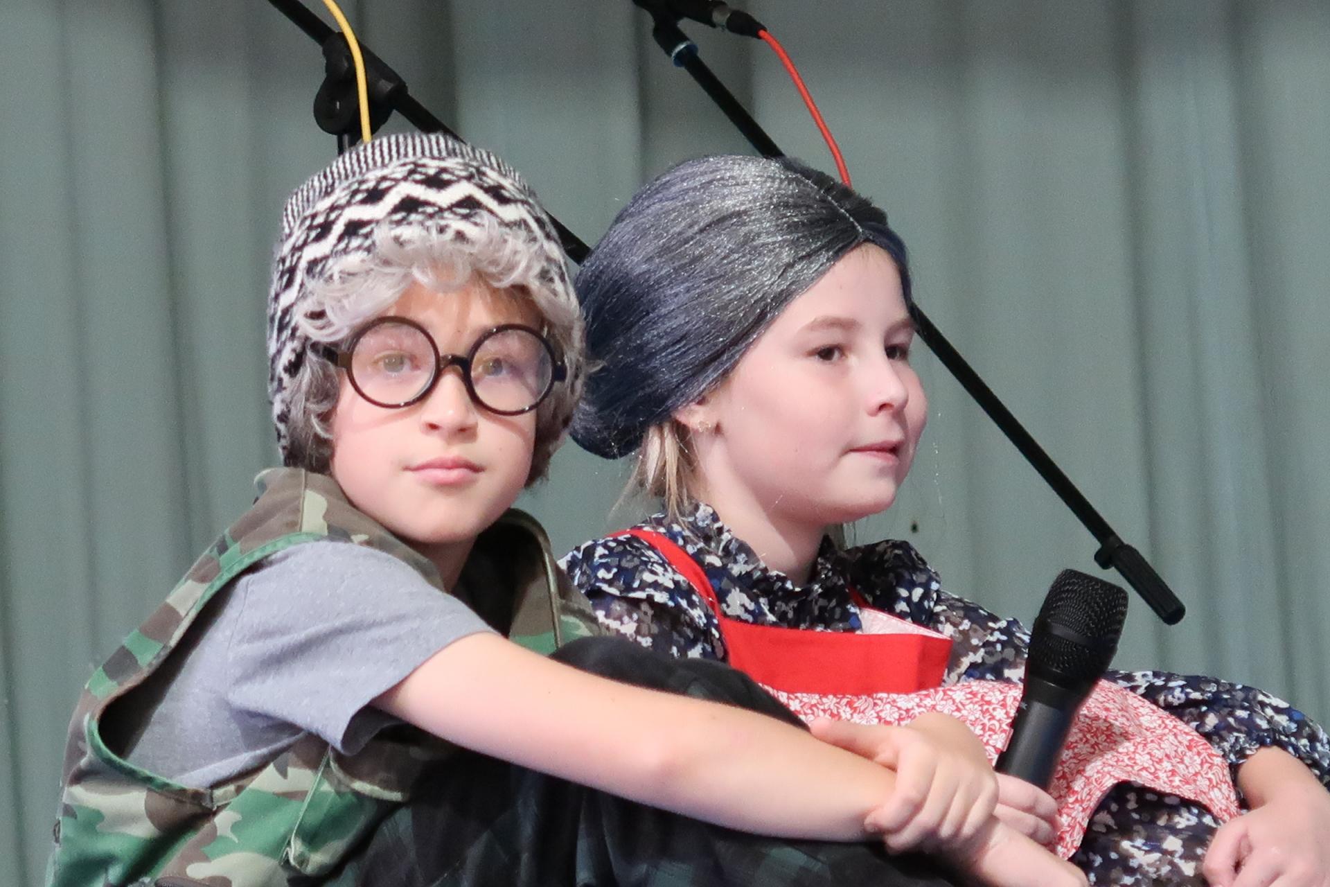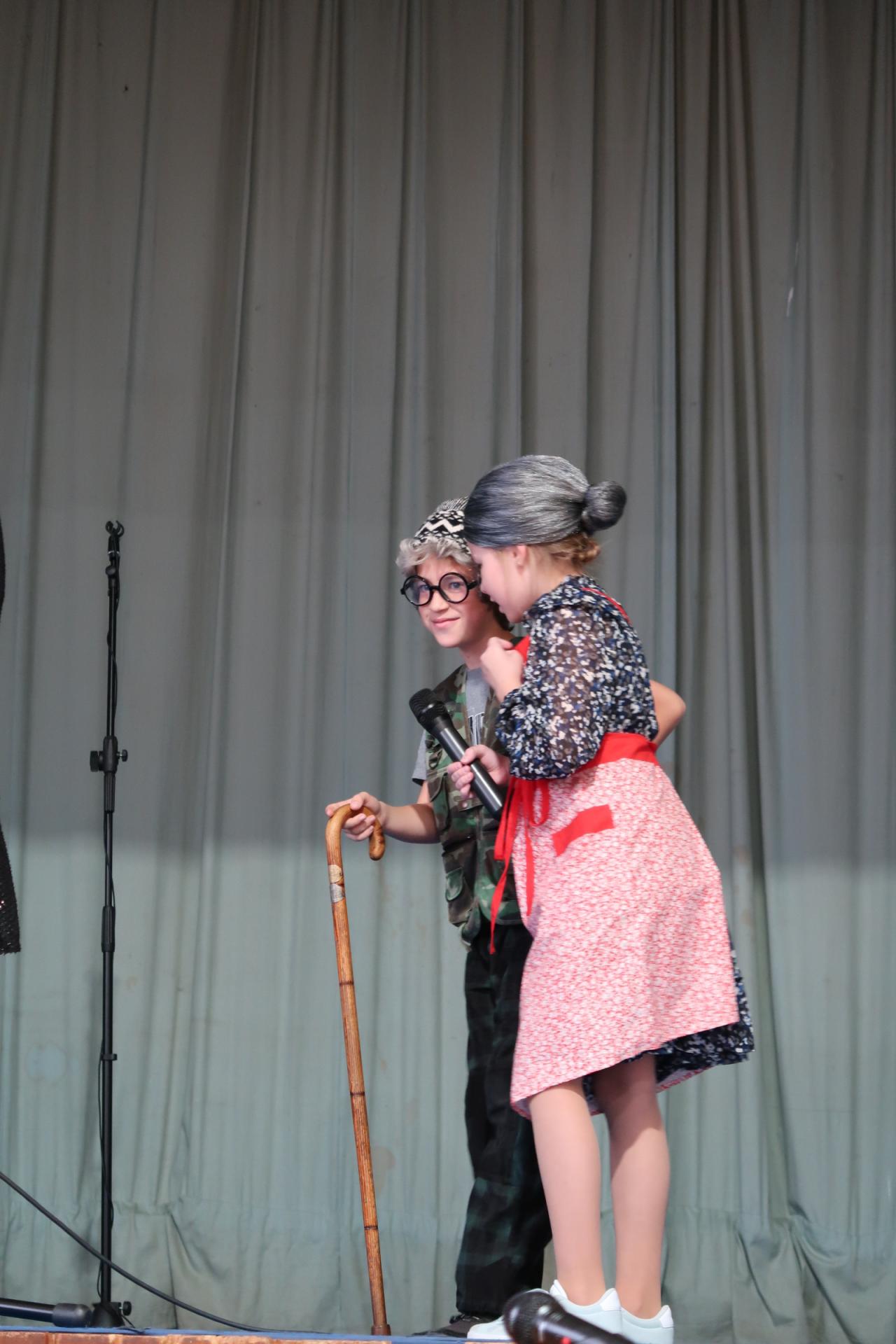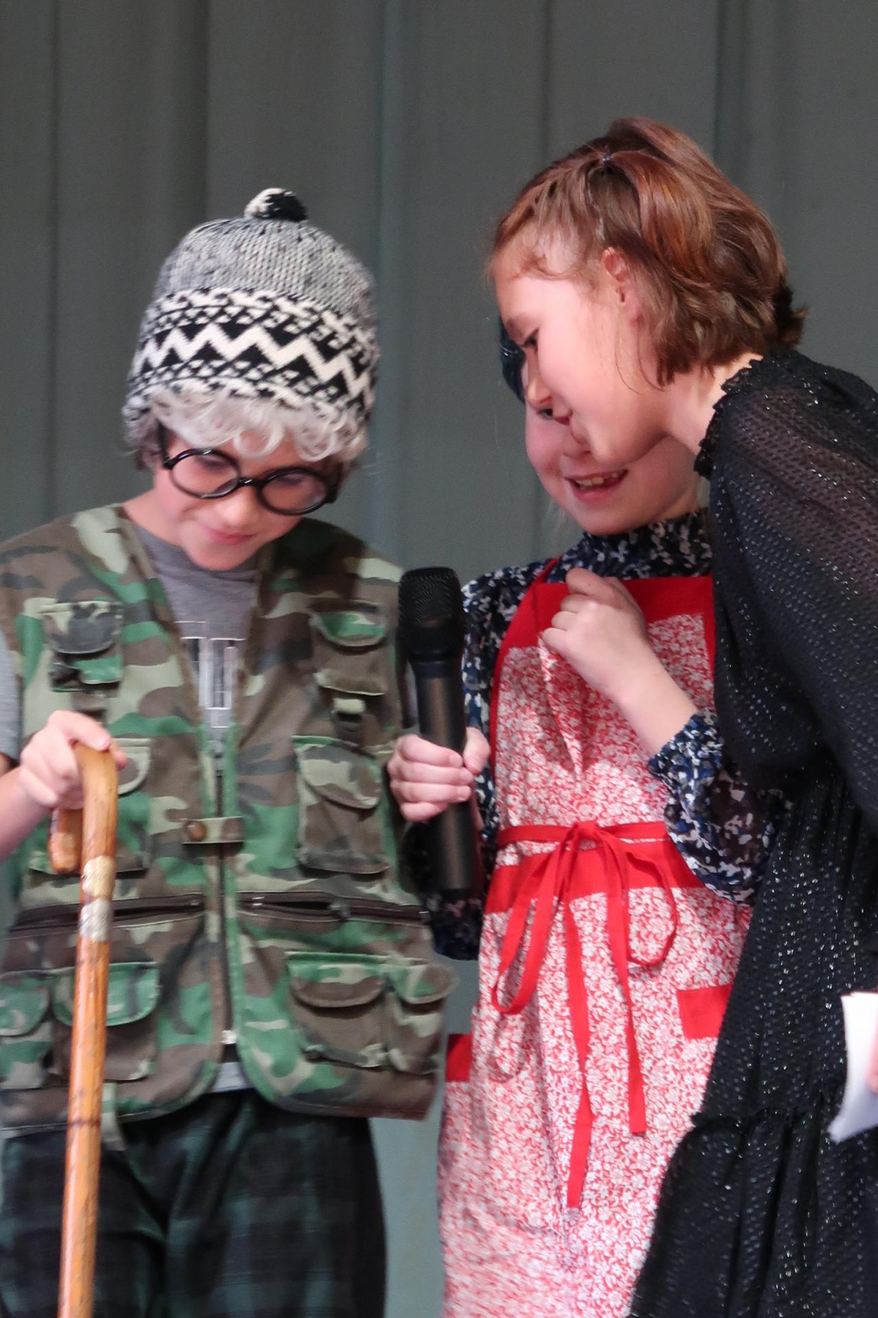 Úvod patřil krátkému scénickému vstupu s babičkou, dědečkem a jejich vnučkou, kteří přivítali hosty a uvedli celý program. Poté následovalo vystoupení našich nejmladších žáků, kteří si pro diváky připravili anglickou písničku „Hello“. Za doprovodu rytmické melodie zpívali o škole, kamarádech a společných hrách. Malí zpěváci a kytaristé rozzářili sál nejen svými hlásky, ale i tancem, úsměvy a nakažlivou radostí.