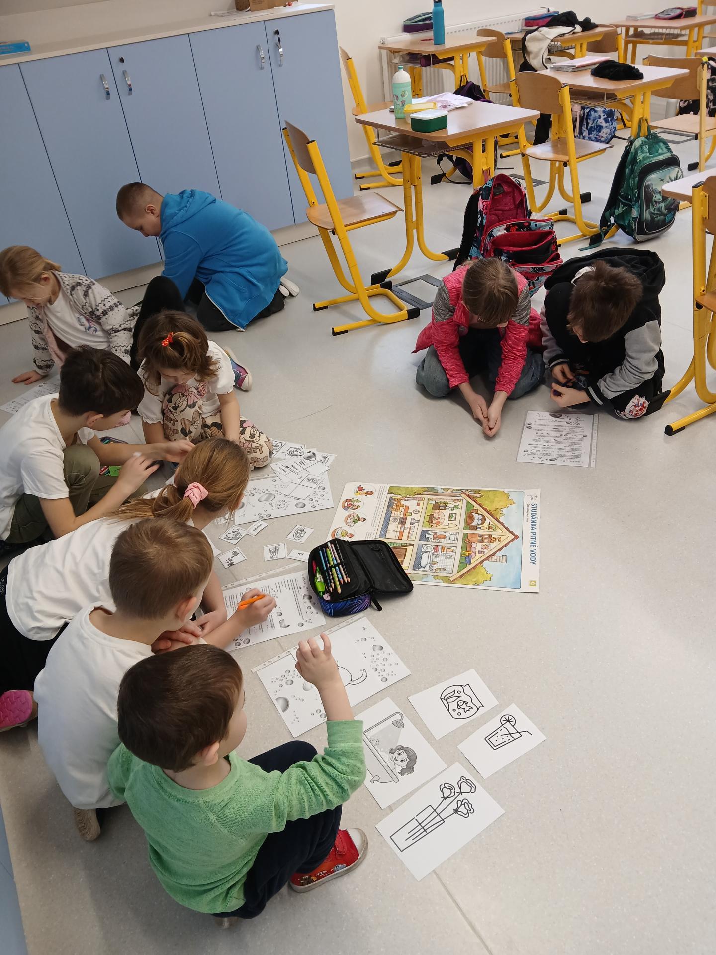 Sešli jsme se ve středu 28. 1. ráno. Paní učitelky ze školky nachystaly otázky a úkoly různé náročnosti od školky až po pátý ročník. Po představení tématu a rozdělení do skupinek se děti rozmístily po celé škole. Ve skupinkách se žáci nejdříve seznámili s dětmi ze školky. Pak si společně pověděli něco o jedné ze sedmi studánek, kterou měli za úkol prozkoumat. Jsou to Studánky vody – živé, živelné, blízké, věčné, pitné, lesní a bez vody. A potom se pustili do práce – společně nebo po ročnících, podle náročnosti zadání. Po dvou hodinách usilovné práce jsme se sešli ke společnému sdílení našich objevů.