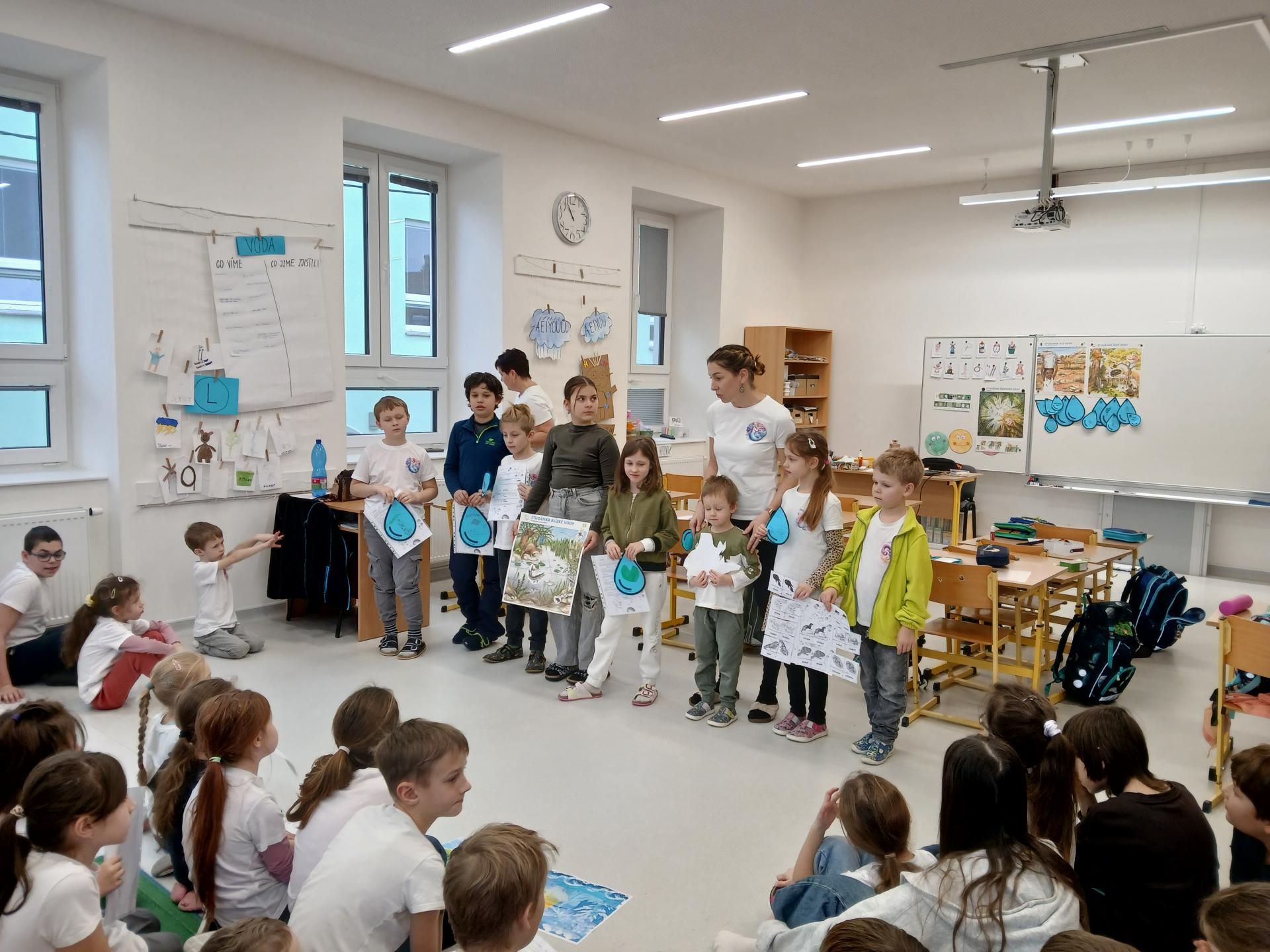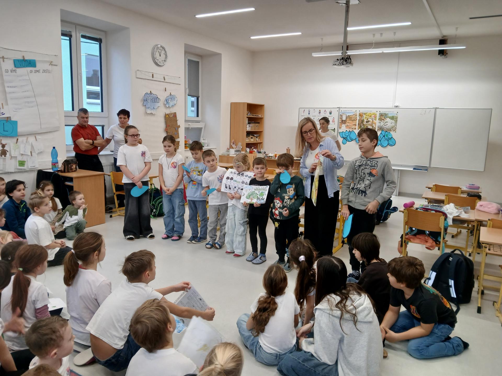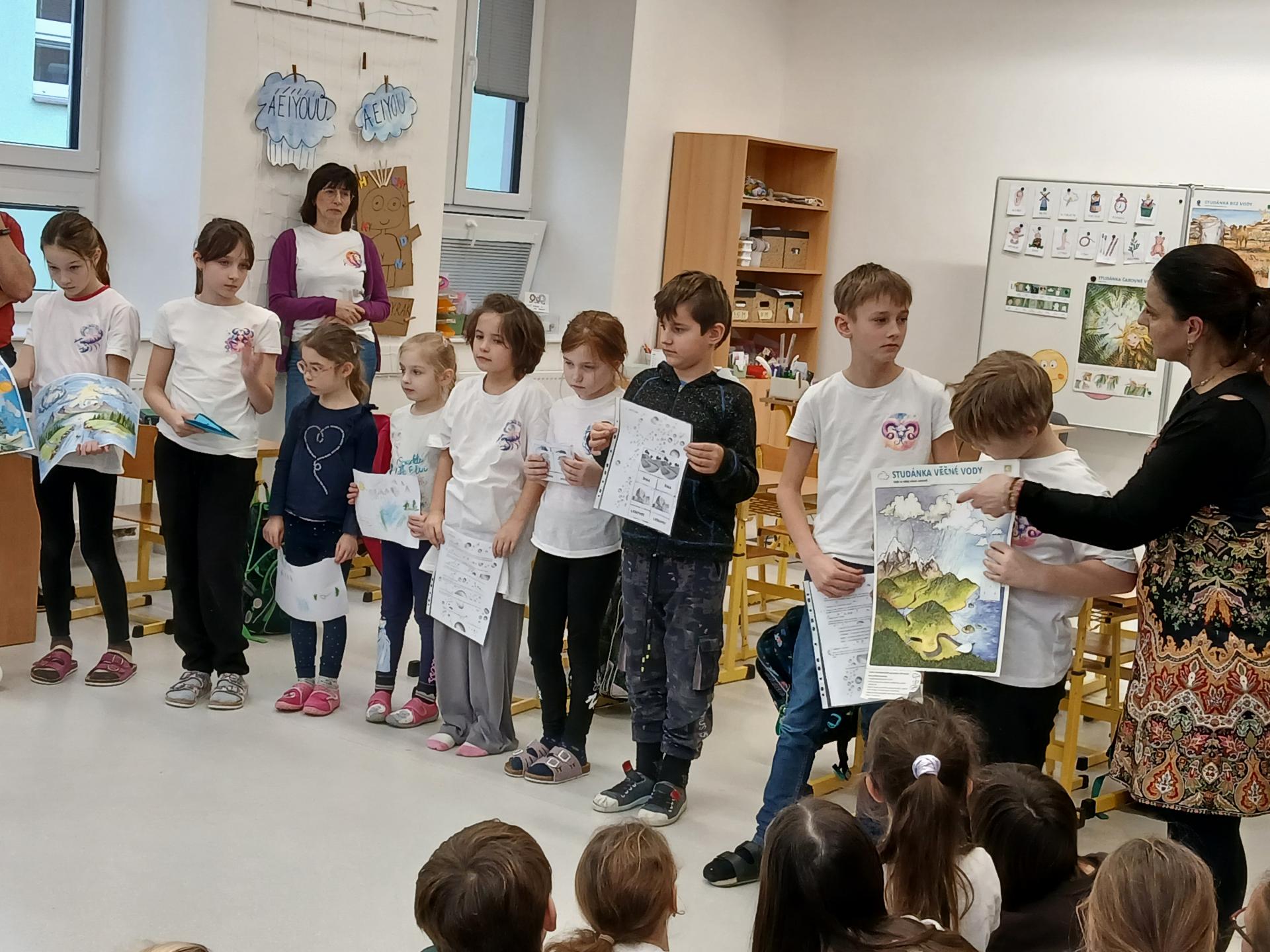 Voda nemusí být čarovná, abychom pochopili, jak je vzácná. Nejen lidé, ale i zvířata, rostliny, houby… celá planeta, včetně klimatu, závisí na vodě. Kde je vody málo, musí se s ní šetřit. Kde je vody moc, musí se proti ní vybudovat zábrany. Jak se dá šetřit pitnou vodou v našich podmínkách? Jak správně vodu usměrnit? Jakou vodou zalévat? … Na tyto a další otázky hledali odpovědi žáci 1. – 5. ročníku společně s Kuklínky a Motýlky z mateřské školy.