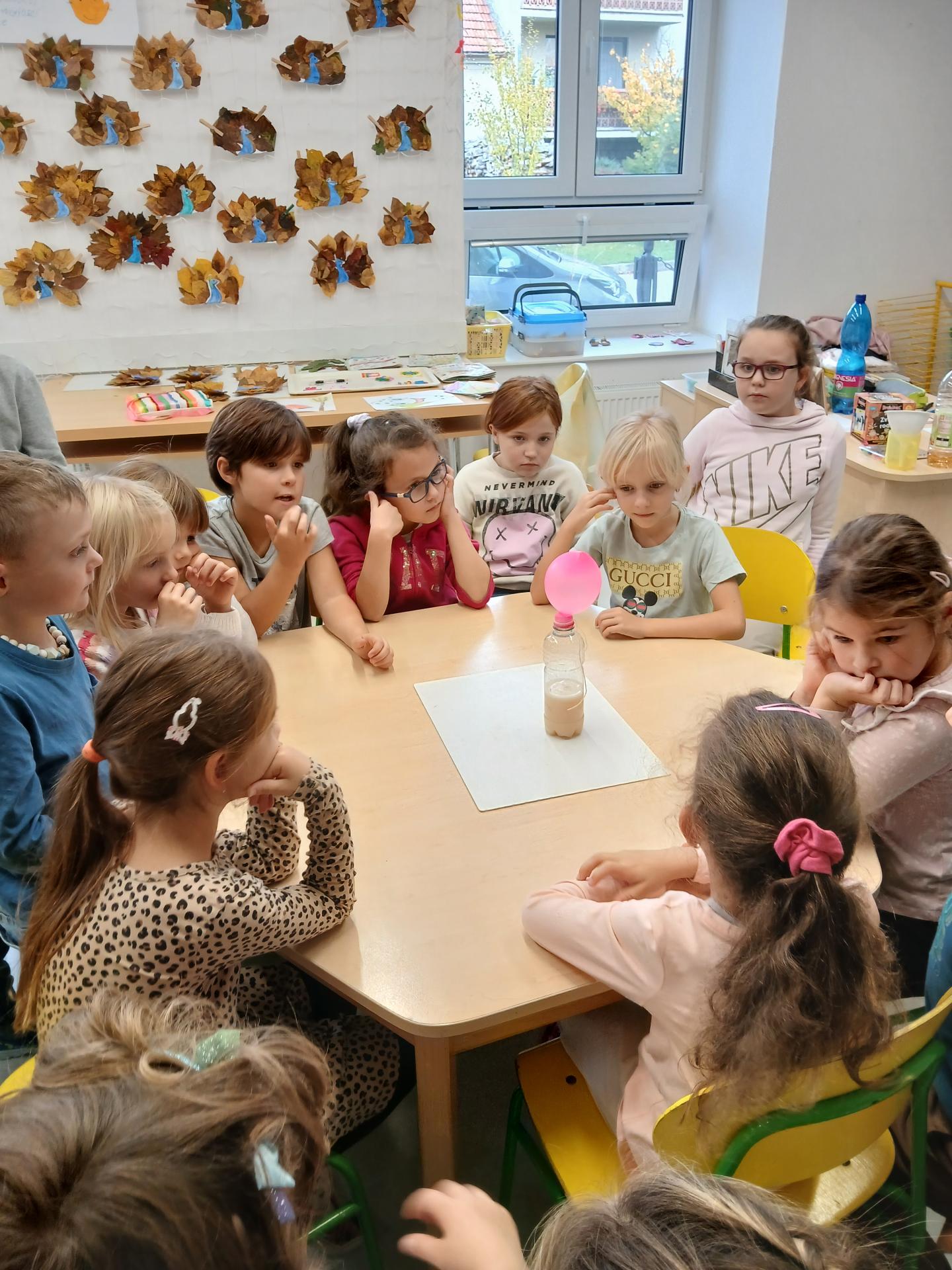 Čtvrtý a pátý ročník si pro mladší spolužáky připravil přehlídku pokusů dokazujících přítomnost vzduchu.