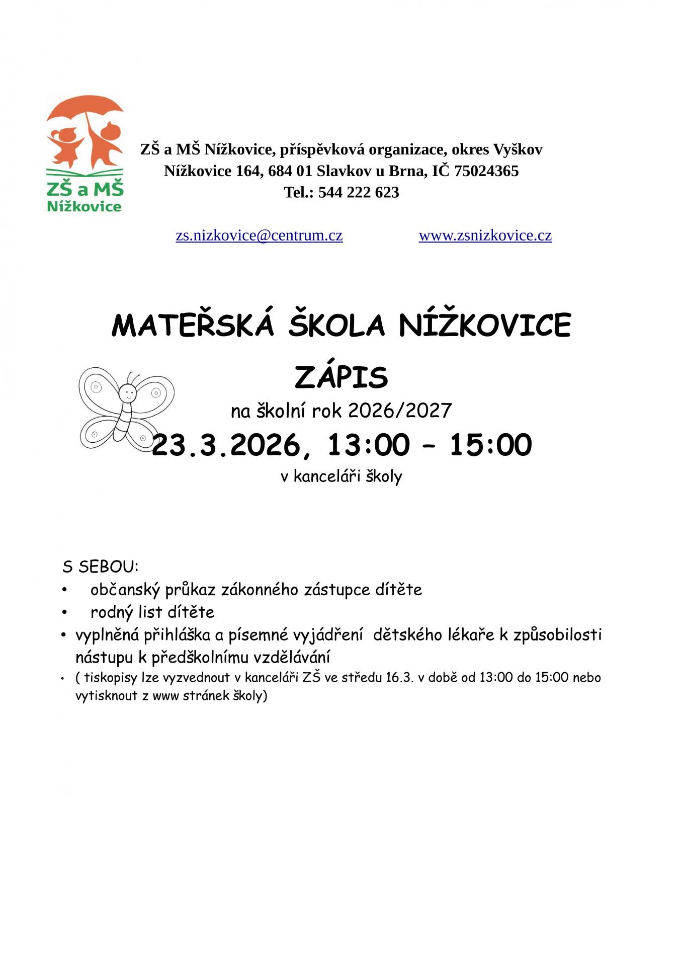 Zápis do MŠ na šk.rok 2026/2027