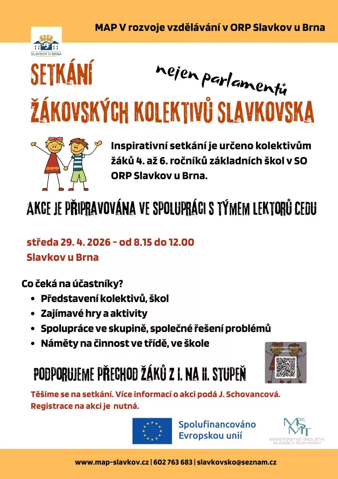 Setkání zástupců školních kolektivů (nejen školních parlamentů) žáků 4. až 6. ročníků s programem – DDM Slavkov u Brna.